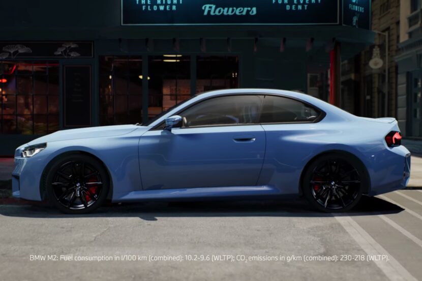 The BMW M2 unveiled in a closed-room setting was finished in Zandvoort Blue, an exclusive solid paint introduced with the second-generation M2. Some will recall a similar shade was applied back in mid-2016 for the retrolicious 2002 Hommage concept, but the G87 is the first production car to get the paint. It’s combined here with the optional carbon fiber roof and the M anniversary badges to mark 50 years of the performance division.