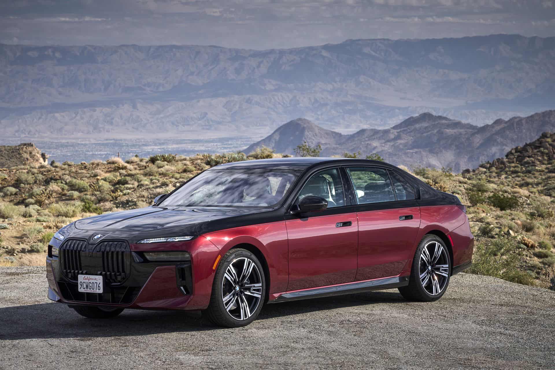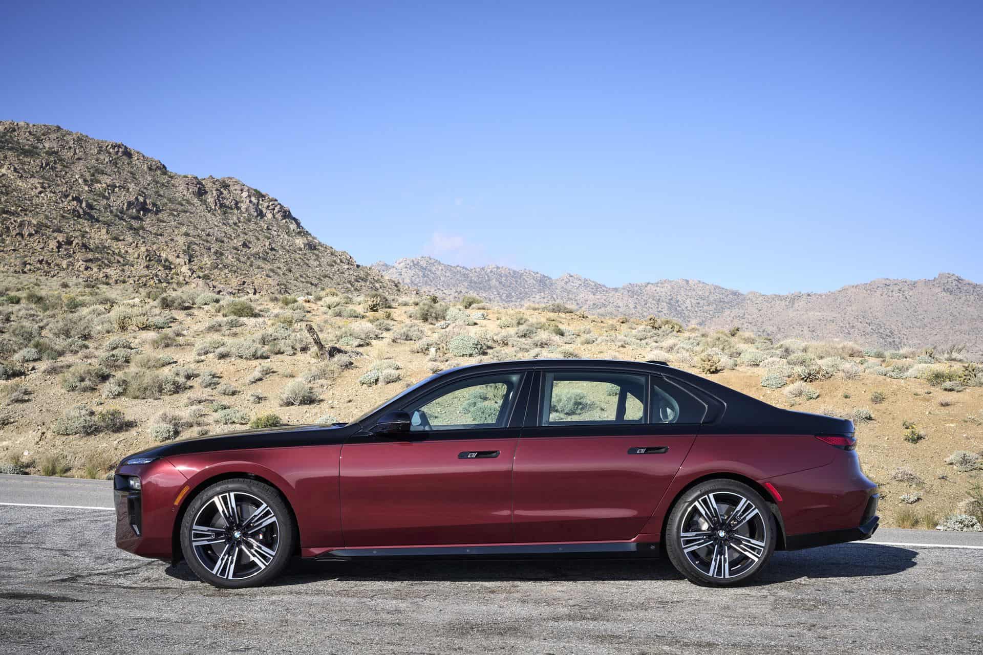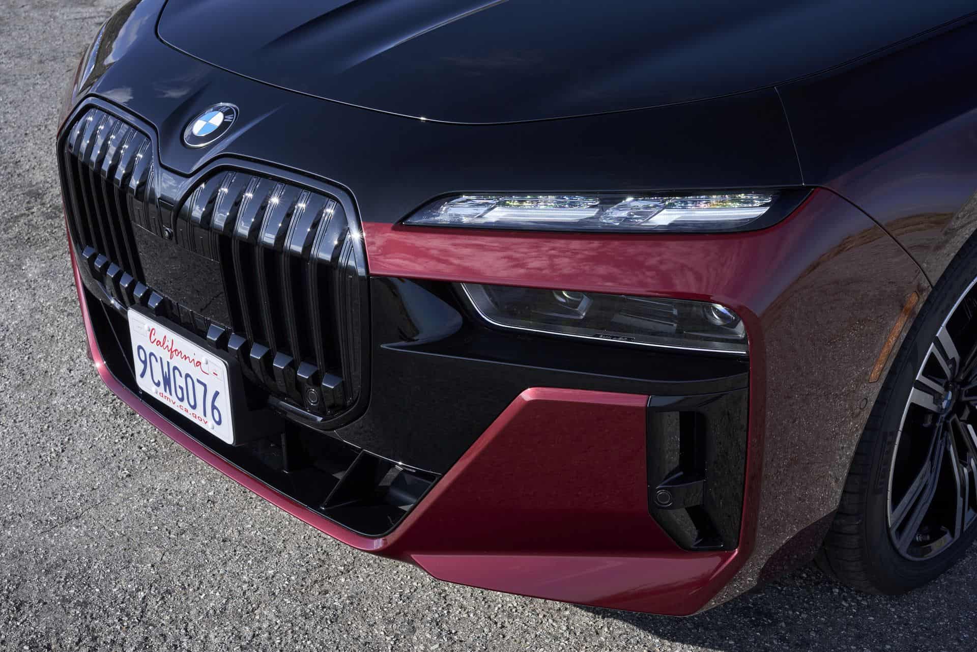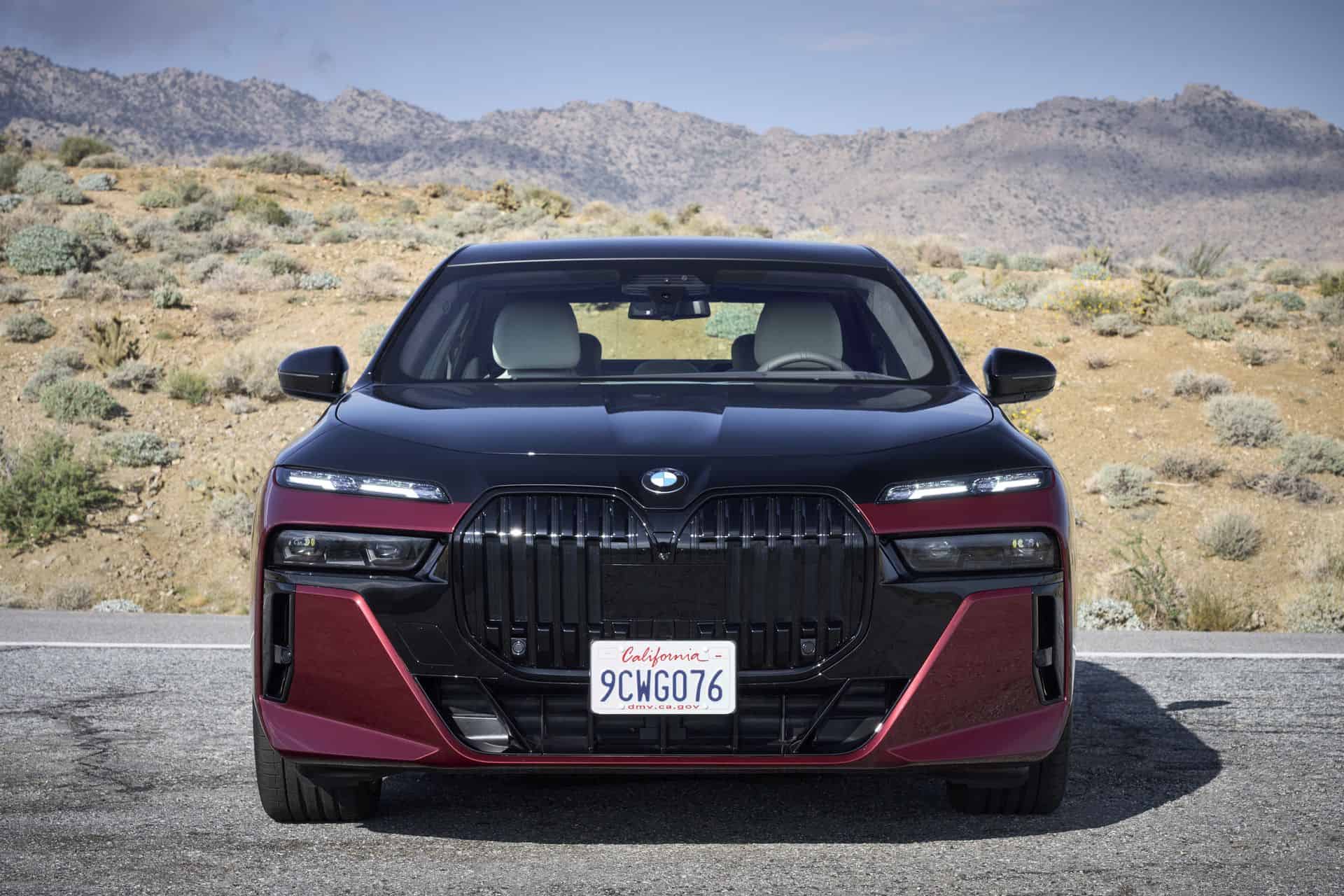 This particular BMW 760i is painted in the Cashmere Silver and Aventurine Red color and it was our tester during the international media launch in Palm Springs. As you can see in the photos below, the 760i is paired with the M Sport Package and the Extended Shadowline Package which adds plenty of black accents. Inside, the 760i features a fancy cashmere wool for the seat surfaces – an absolute premiere for a BMW.