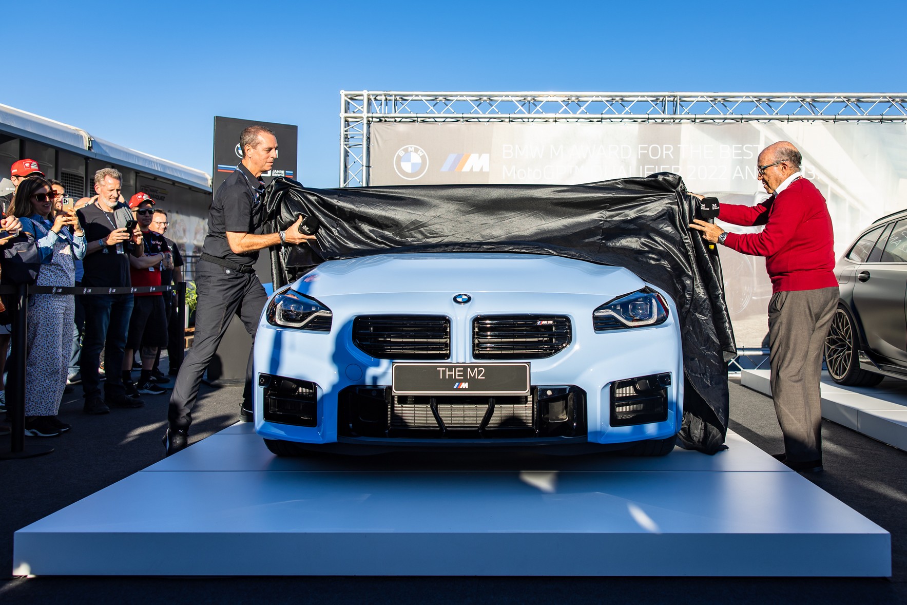 Franciscus van Meel, CEO of BMW M GmbH, and Carmelo Ezpeleta, CEO of Dorna Sports were on location to hand over the M3 G81, one of the many M products presented this year. Speaking of which, the M2 G87 was also there, presented in Zandvoort Blue. The speedy coupe celebrated its Spanish debut at the track in Valencia and BMW says it will be next year’s M Award.