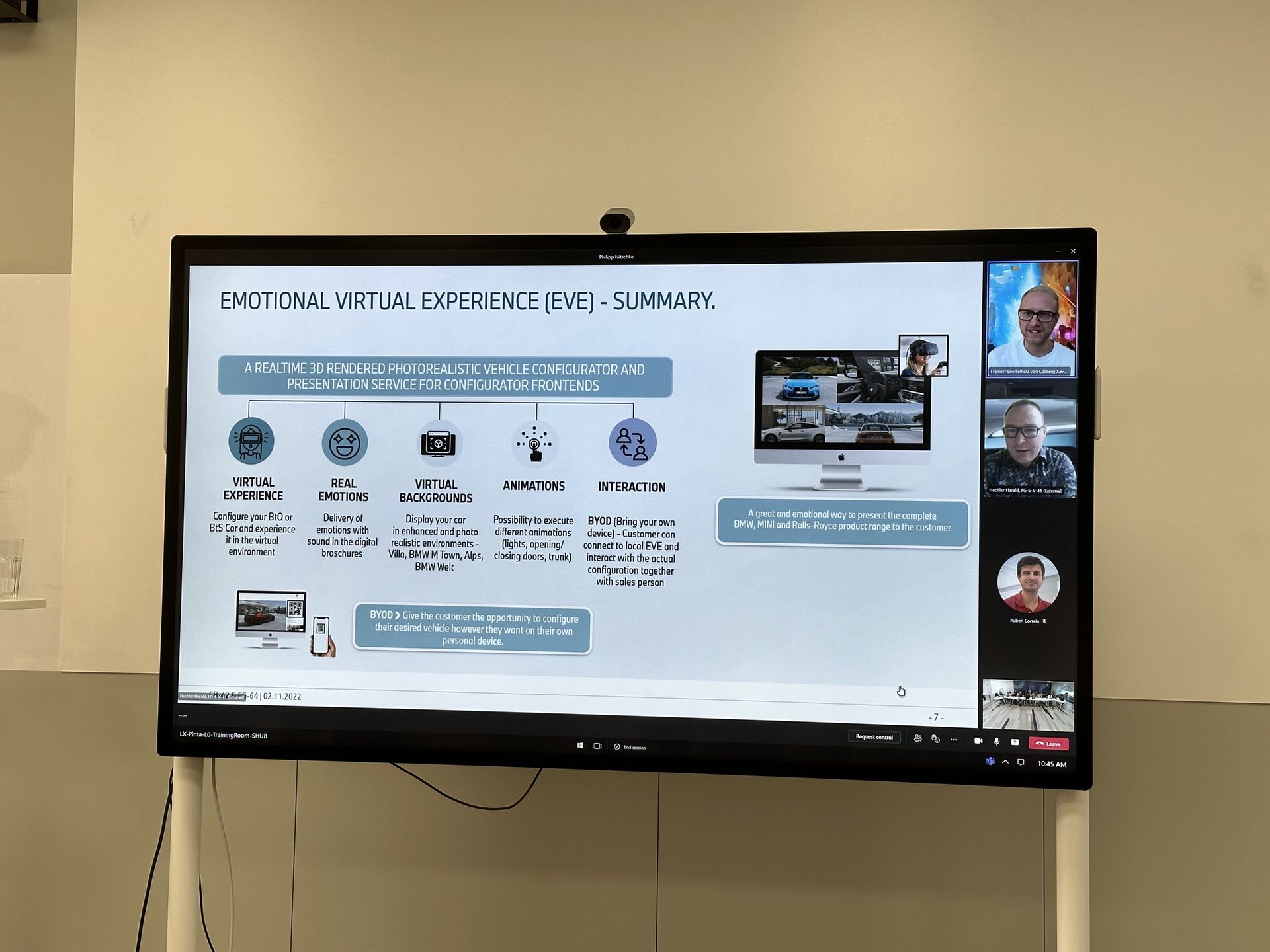 Another 3D visualization tool is EVE, available for BMW, MINI and Rolls-Royce dealers. The tool is used as part of the sales process with 8,000 cloud computing machines generating 3D virtual models. Using a virtual reality experience, customers can explore, in unique ways, their future cars. EVE can also generate a QR code which, once scanned, will display all the specs, prices and even 3D animations of the car’s features and options.