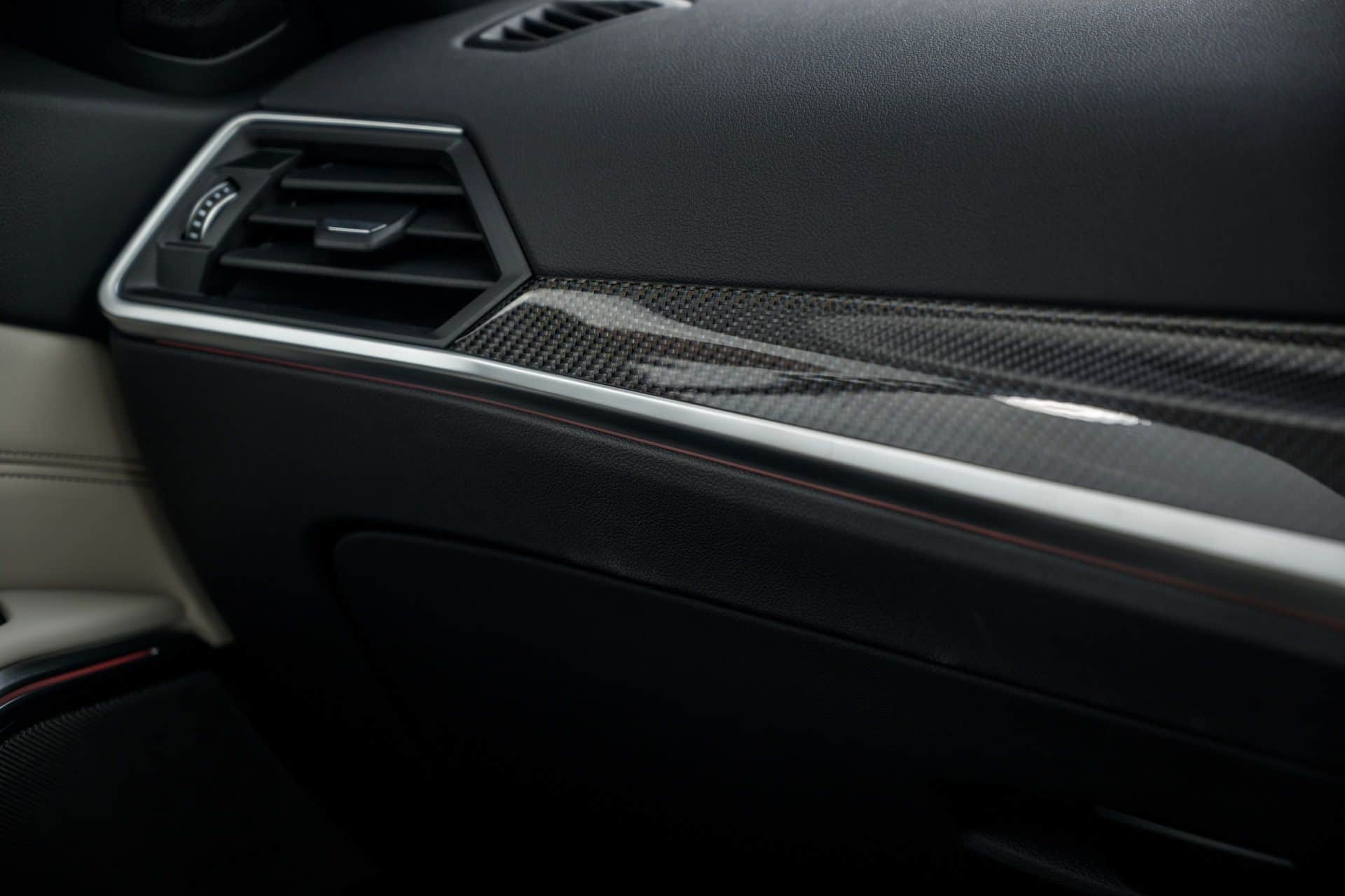 This particular BMW M340i Facelift also comes with a large central air intake that features hexagonal contours and a honeycomb pattern. Two large air vents surround the front intake, while the M High-gloss Shadowline trim that brings a Black kidney grille surround. The expensive, but useful, laser lights are gone from the 3 Series lineup, replaced by Adaptive LED Headlights with blue accents.