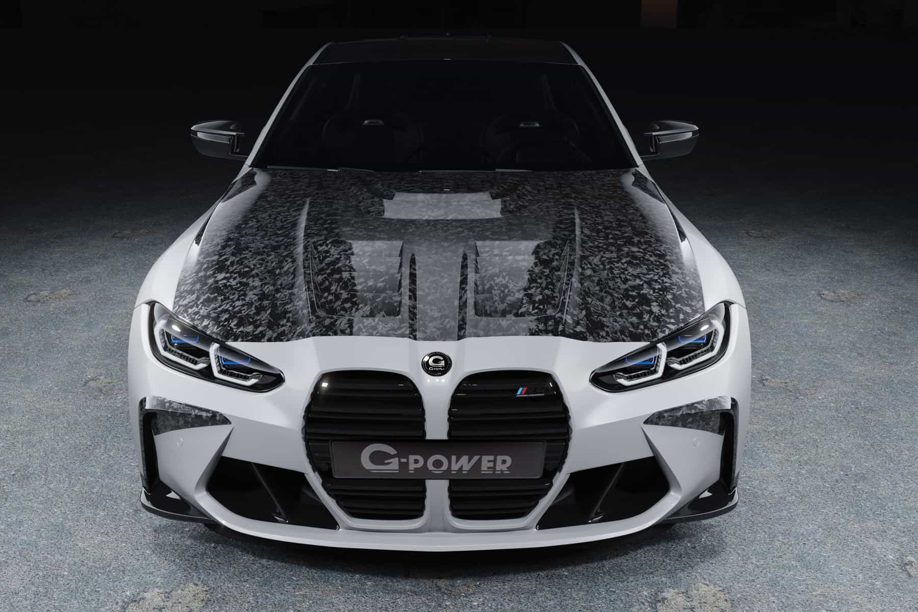 G-Power says it’s also working on a vented carbon fiber hood it will offer with an exposed look or partially painted. At the back, a large wing can be ordered for the latest M3 while the interior can be had with a carbon steering wheel (with LEDs) and new floor mats.