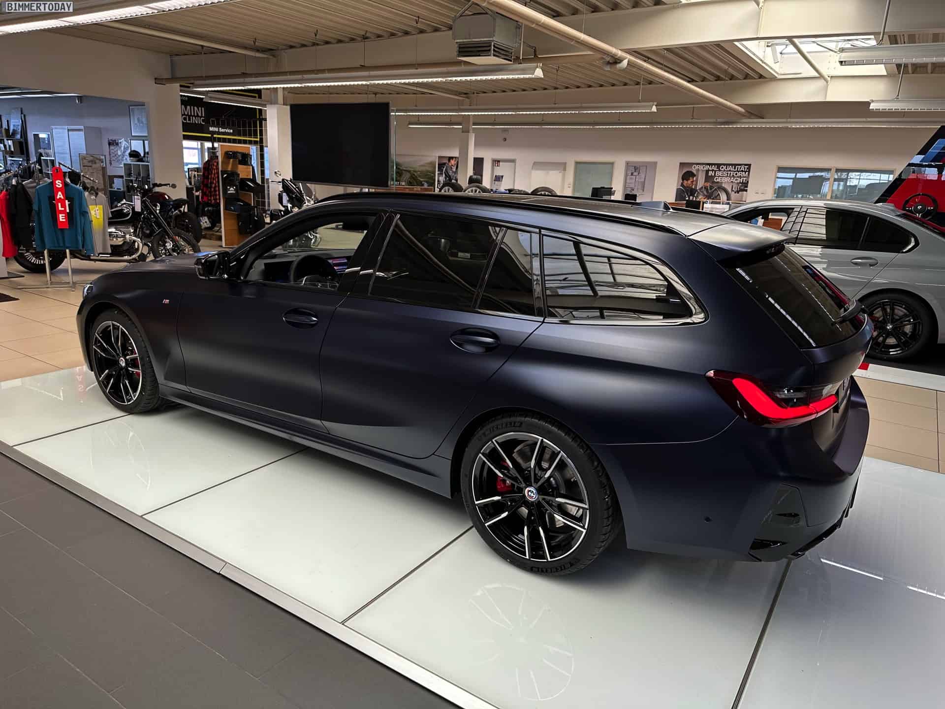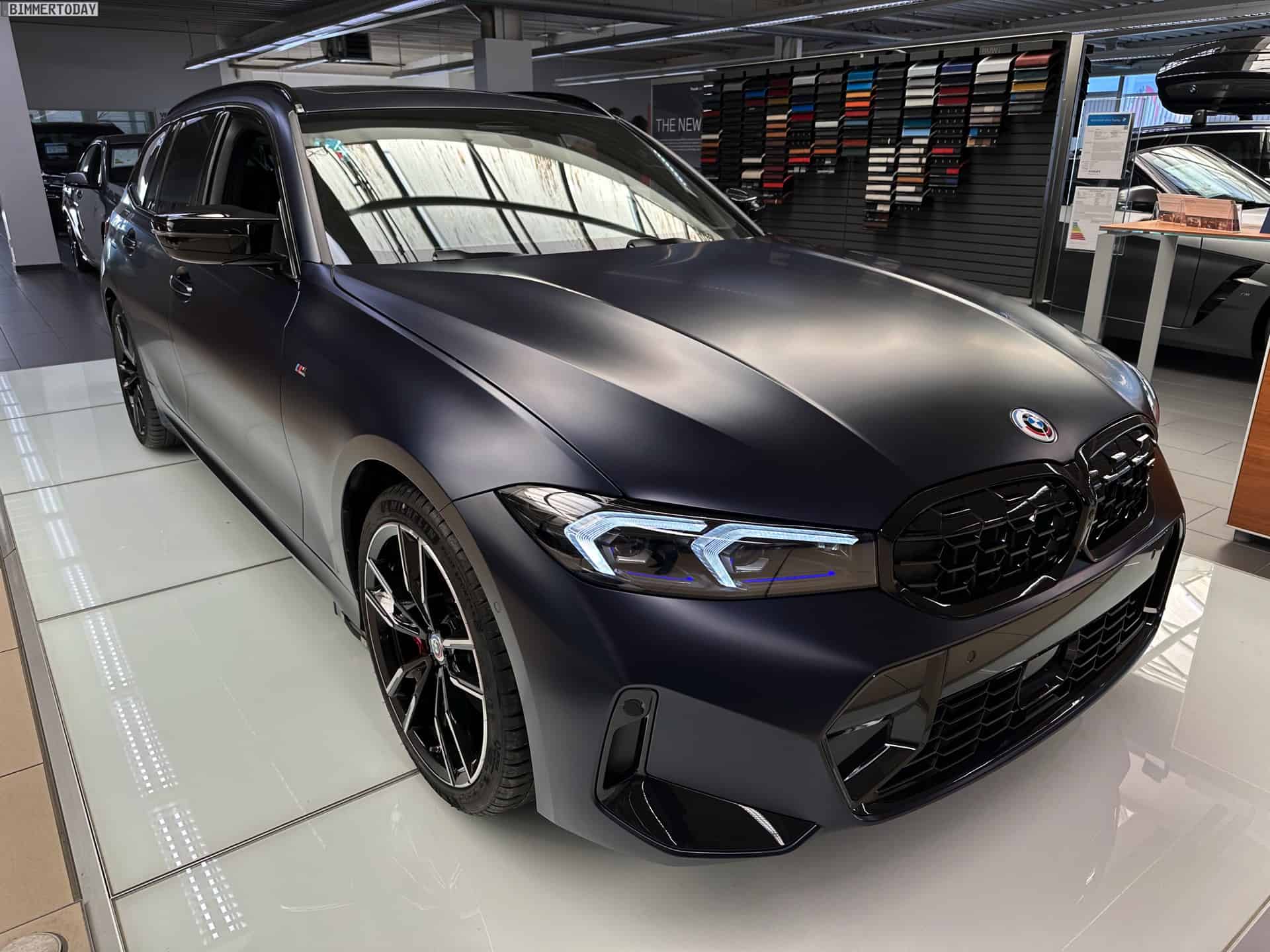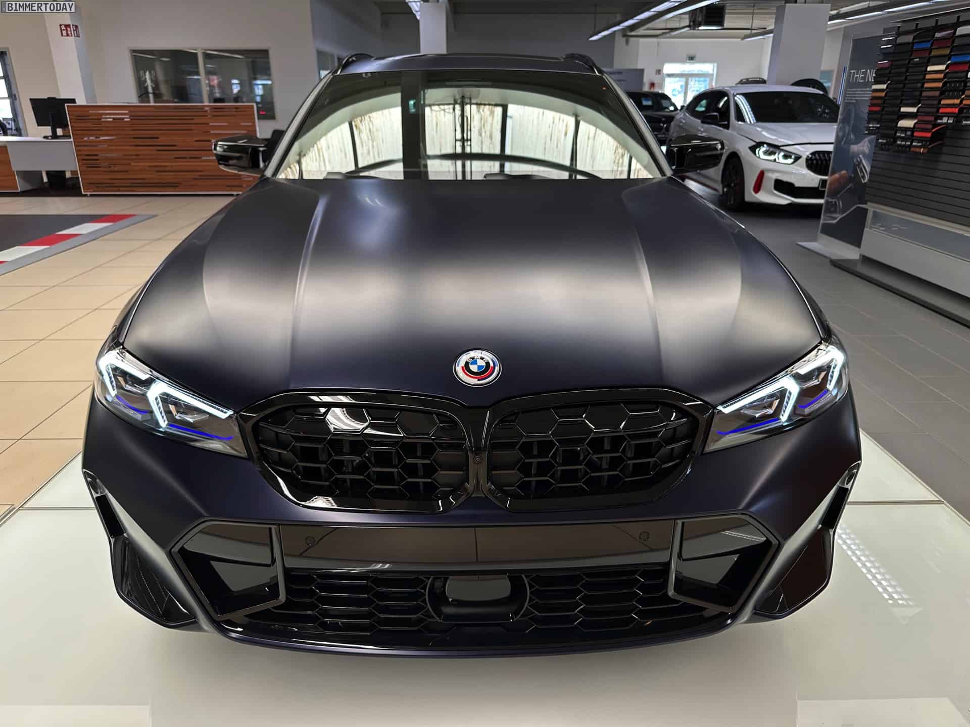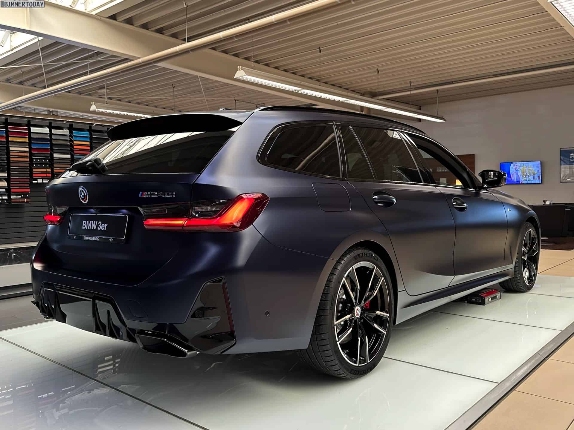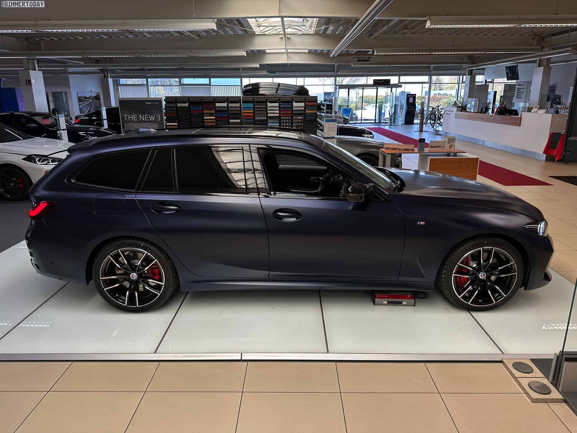 One classy spec of the M340i xDrive Touring was photographed by our colleagues at Bimmer Today at Autohaus Cloppenburg, a BMW and MINI dealer located in Erfurt. Say what you will about the automaker’s most recent design choices, but this is one handsome luxury estate painted in an Individual color. Available for an extra €3,300 in Germany, this Frozen Tanzanite Blue metallic paint lends the sporty wagon a sophisticated appearance.