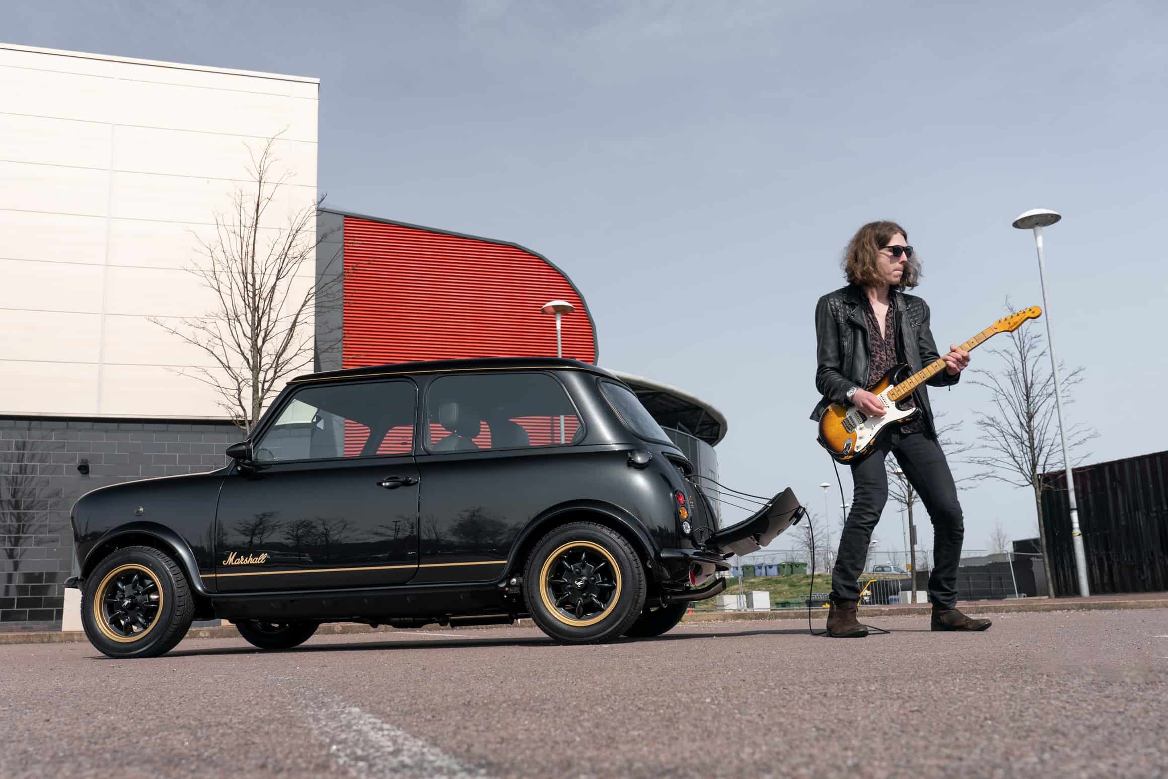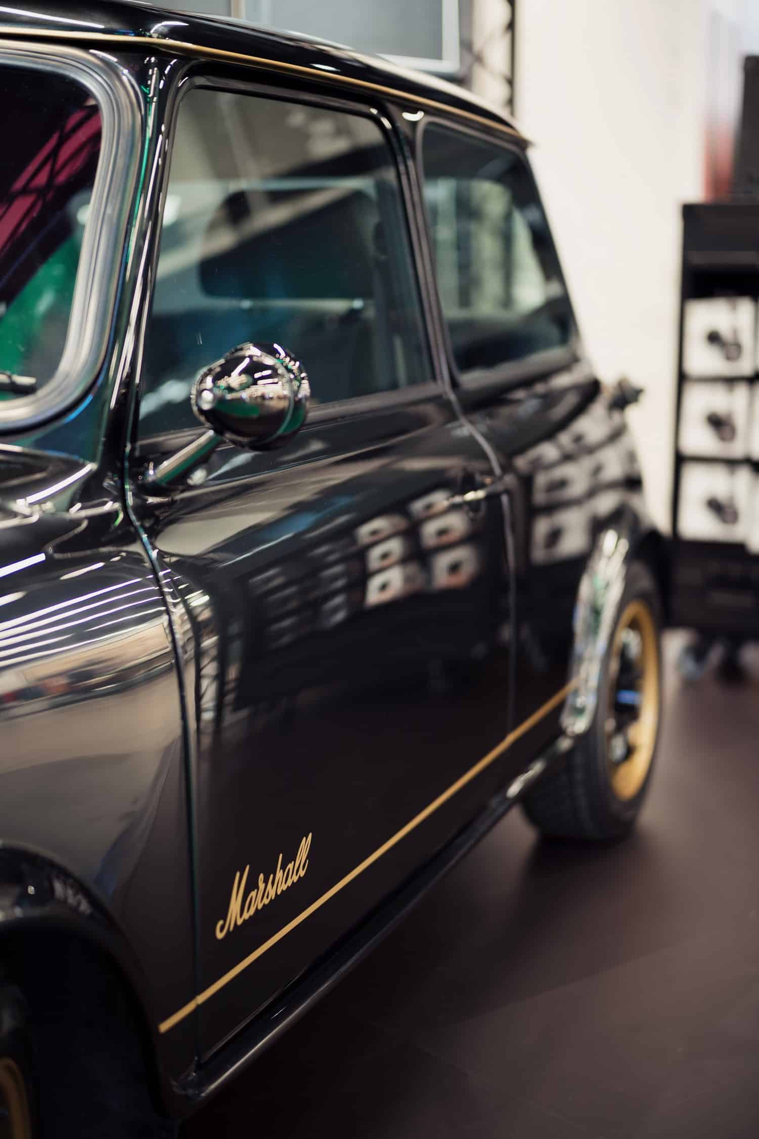 A short car with an extremely long name, the David Brown Automotive Mini Remastered Marshall Edition is celebrating its European debut. On display until December 12 in the CITADIUM complex on the famous Champs-Élysées in Paris, the modernized classic was developed to celebrate Marshall Amplification’s 60th anniversary. The plan is to make only 60 cars with a choice between left- and right-hand drive, with pricing available upon request. For each car sold, both companies will make donations to the UK charity Music Venue Trust.
