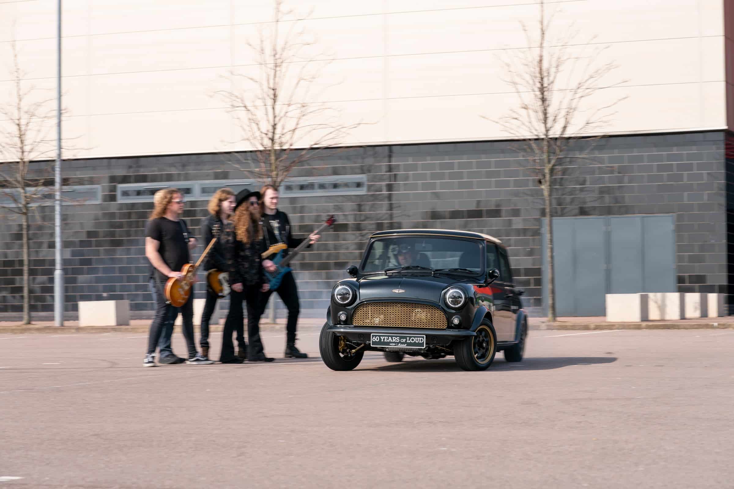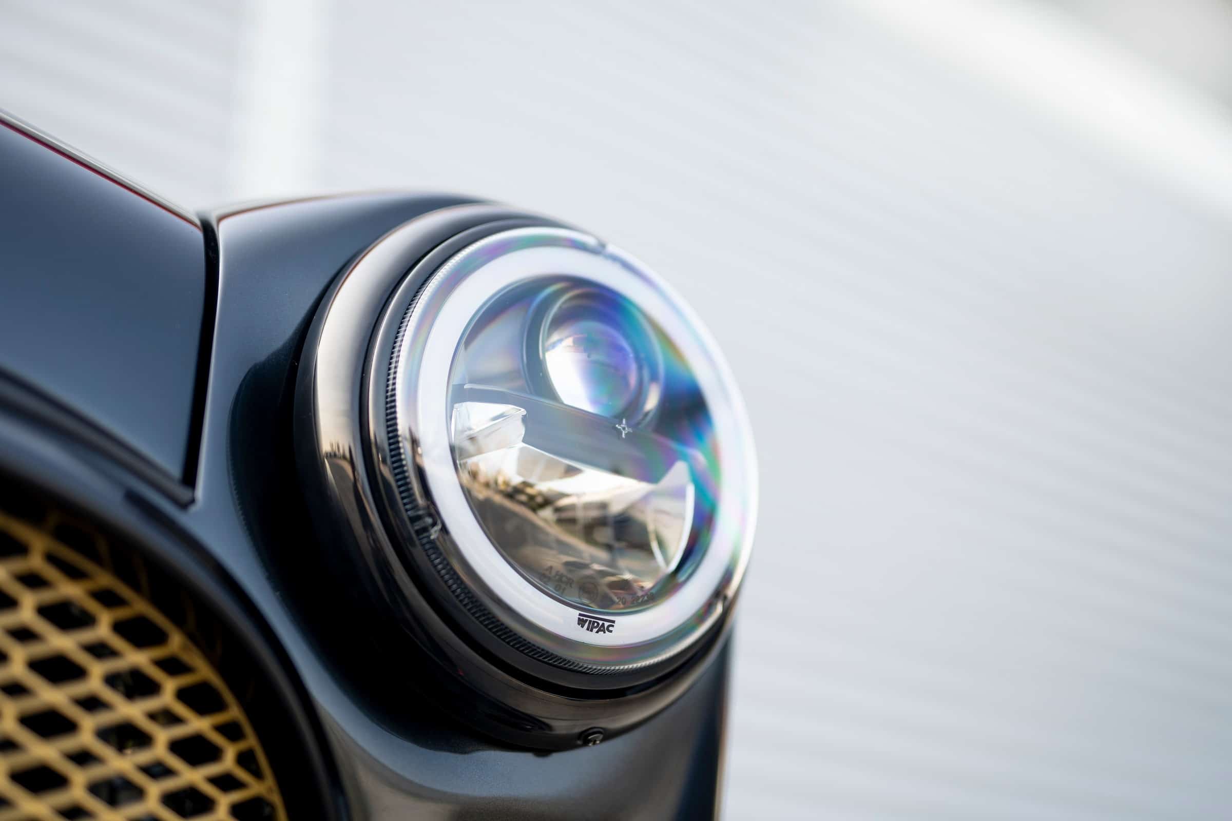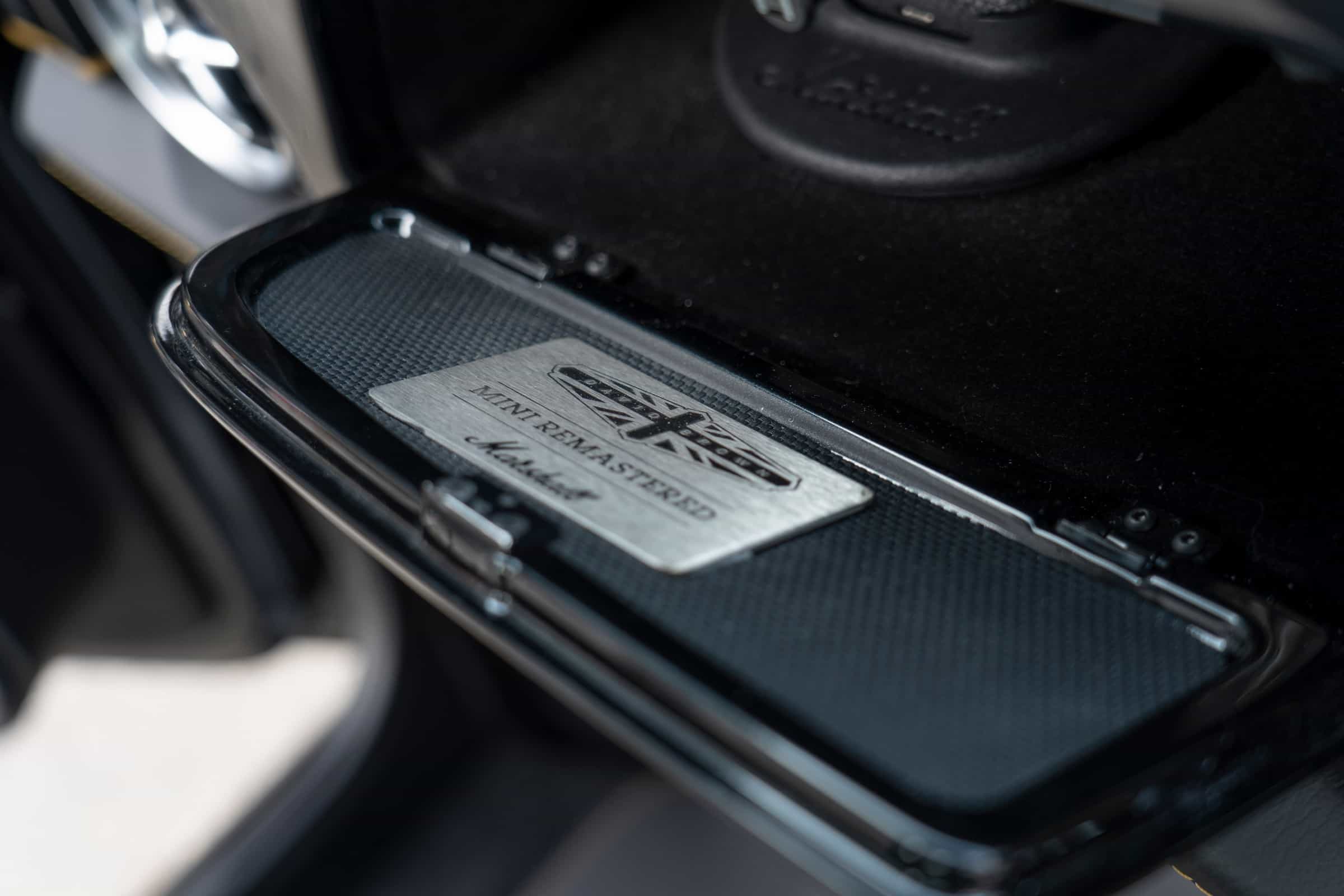 The music-themed Mini has flashy brake calipers in Marshall Gold combined with 12-inch wheels featuring M-branded center caps and gold accents. One of the most striking changes is at the front where David Brown Automotive installs a mesh grille with a design created to mirror Marshall’s audio equipment. Those swanky hand-made badges are also unique to the car and benefit from Marshall Gold enamel.