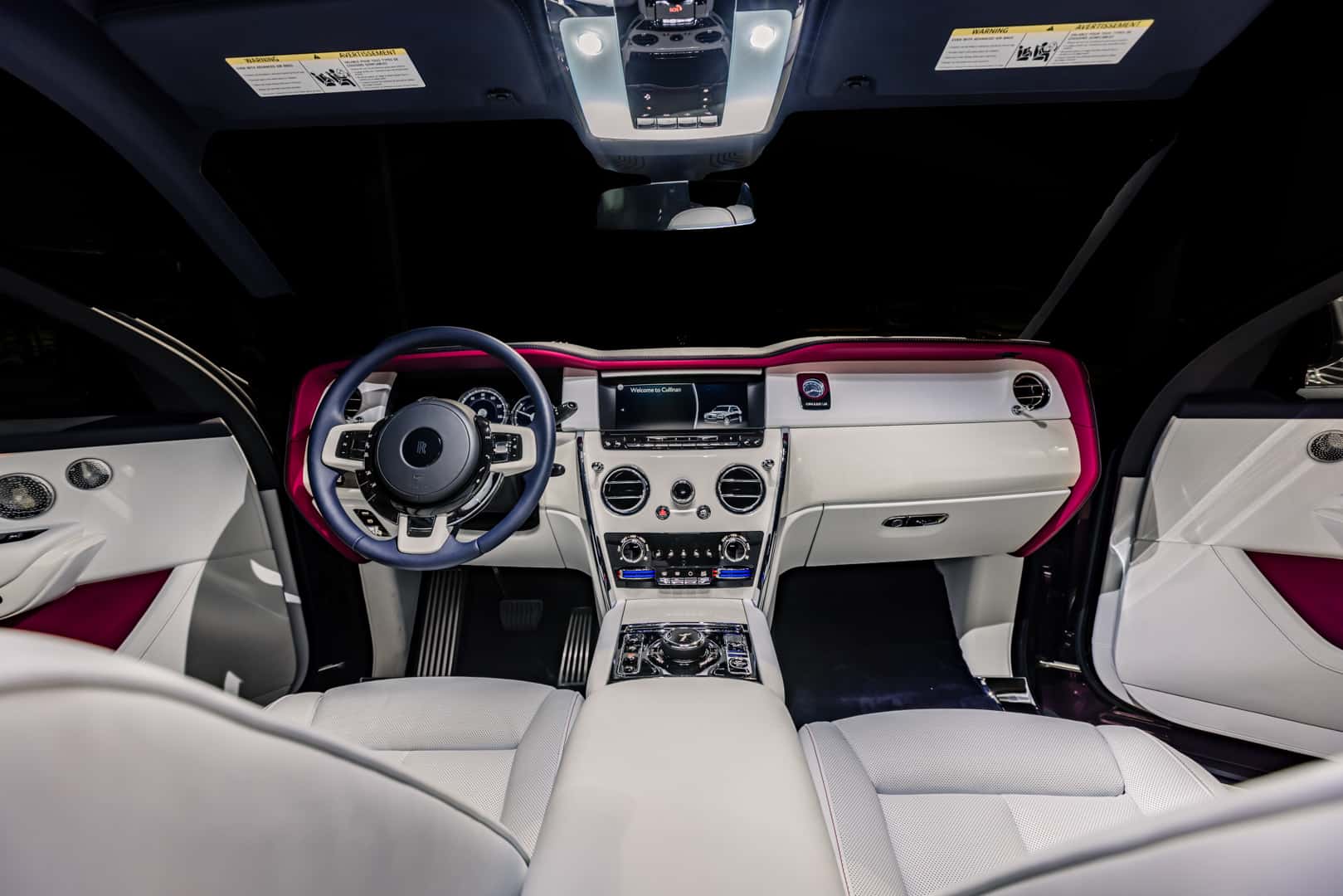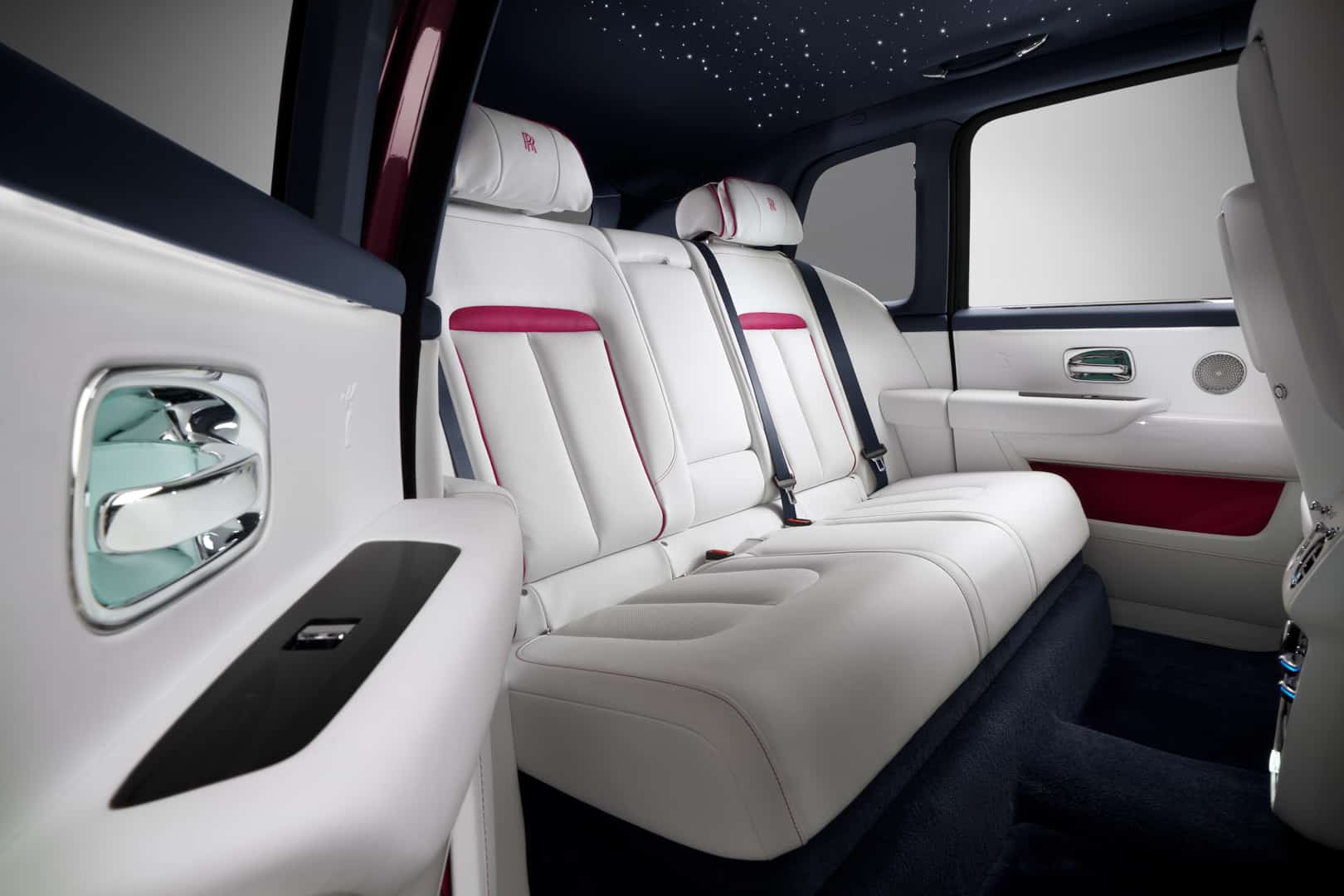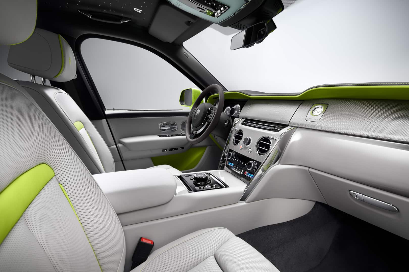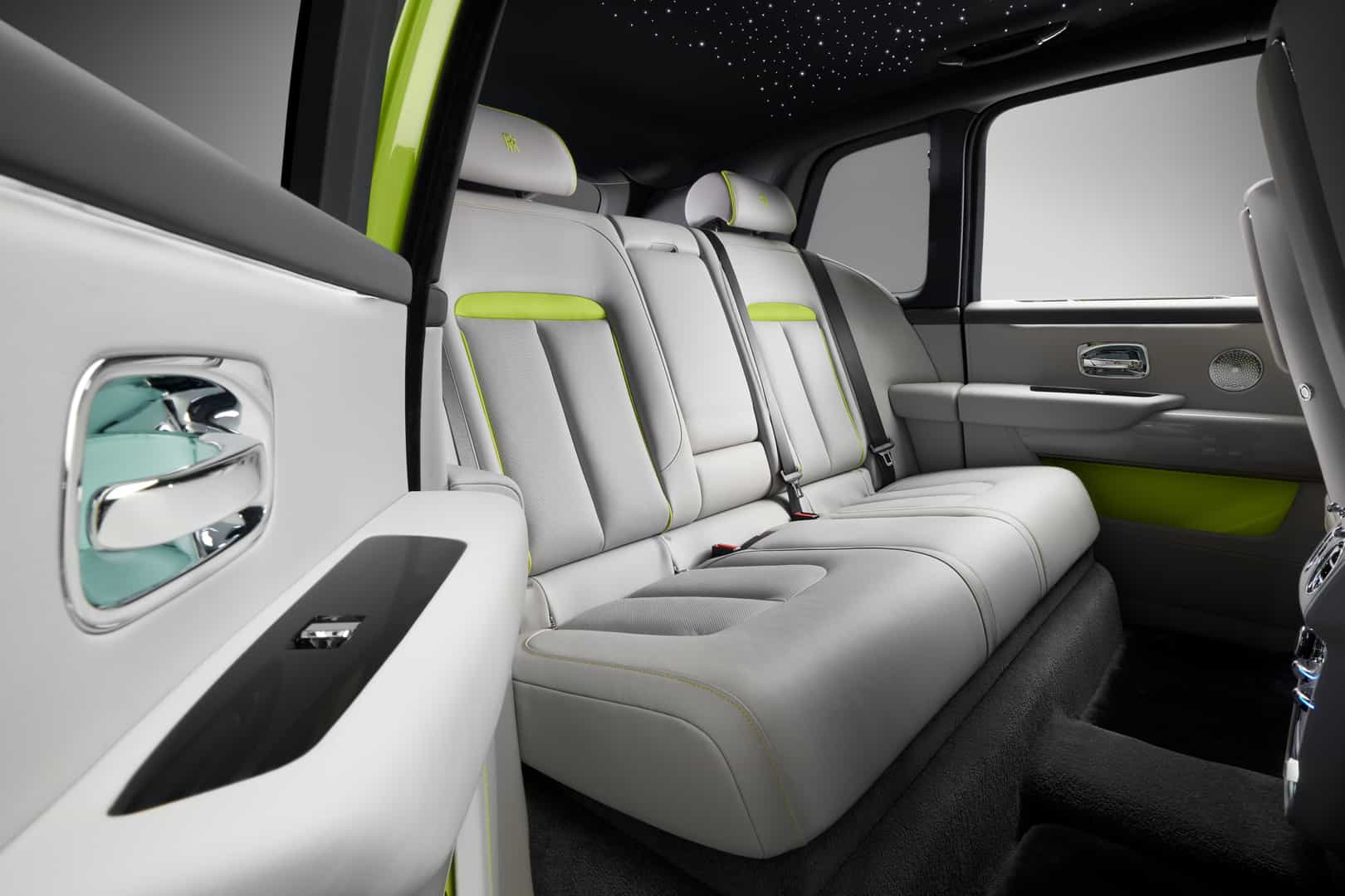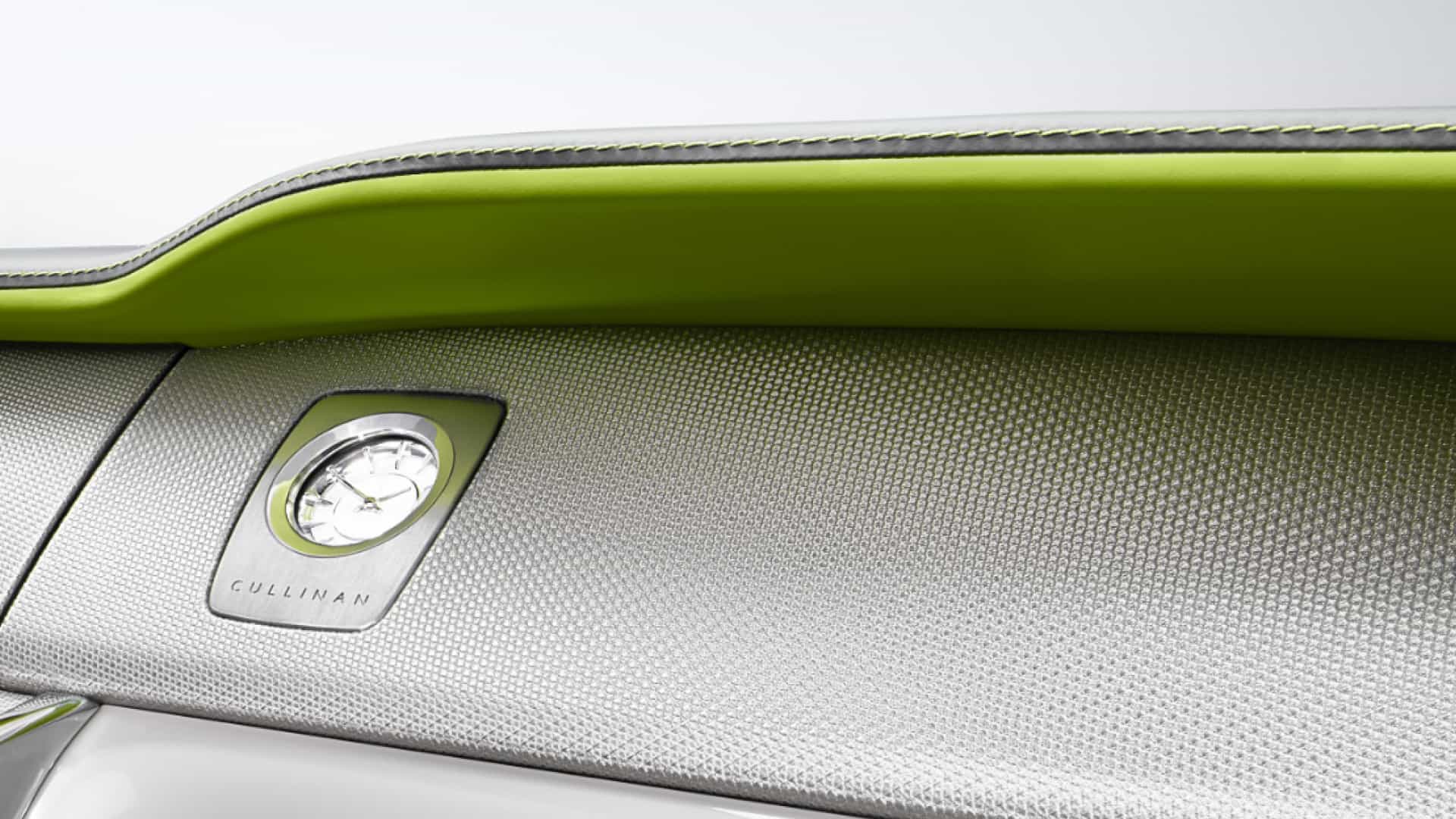 The two bespoke Rolls-Royce Cullinans are called the Re-Belle and the FuShion and each of them get two different color schemes each. For the Cullinan Re-Belle, its two exterior colors are Lime Green, Gunmetal, Wildberry, or Arctic White, while its two interior choices are Arctic White or Cashmere Grey. However, it’s the interior color that’s chosen first and the exterior colors are chosen based on the interior. The two interior colors can also get accents in either Lime Green or Peony Pink. The interior trim is made from a handwoven stainless steel fabric.