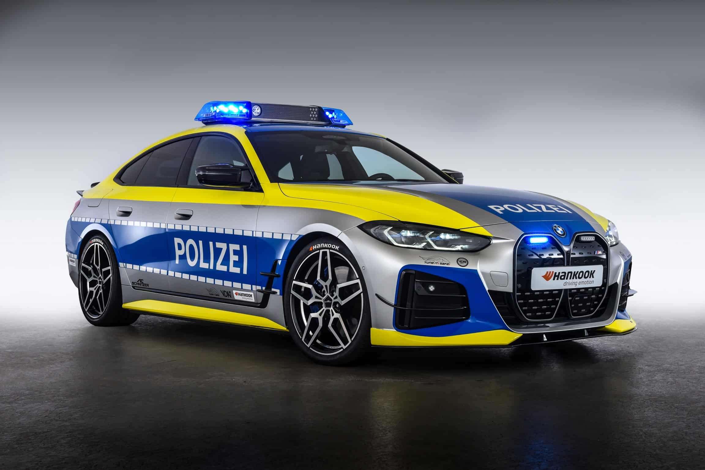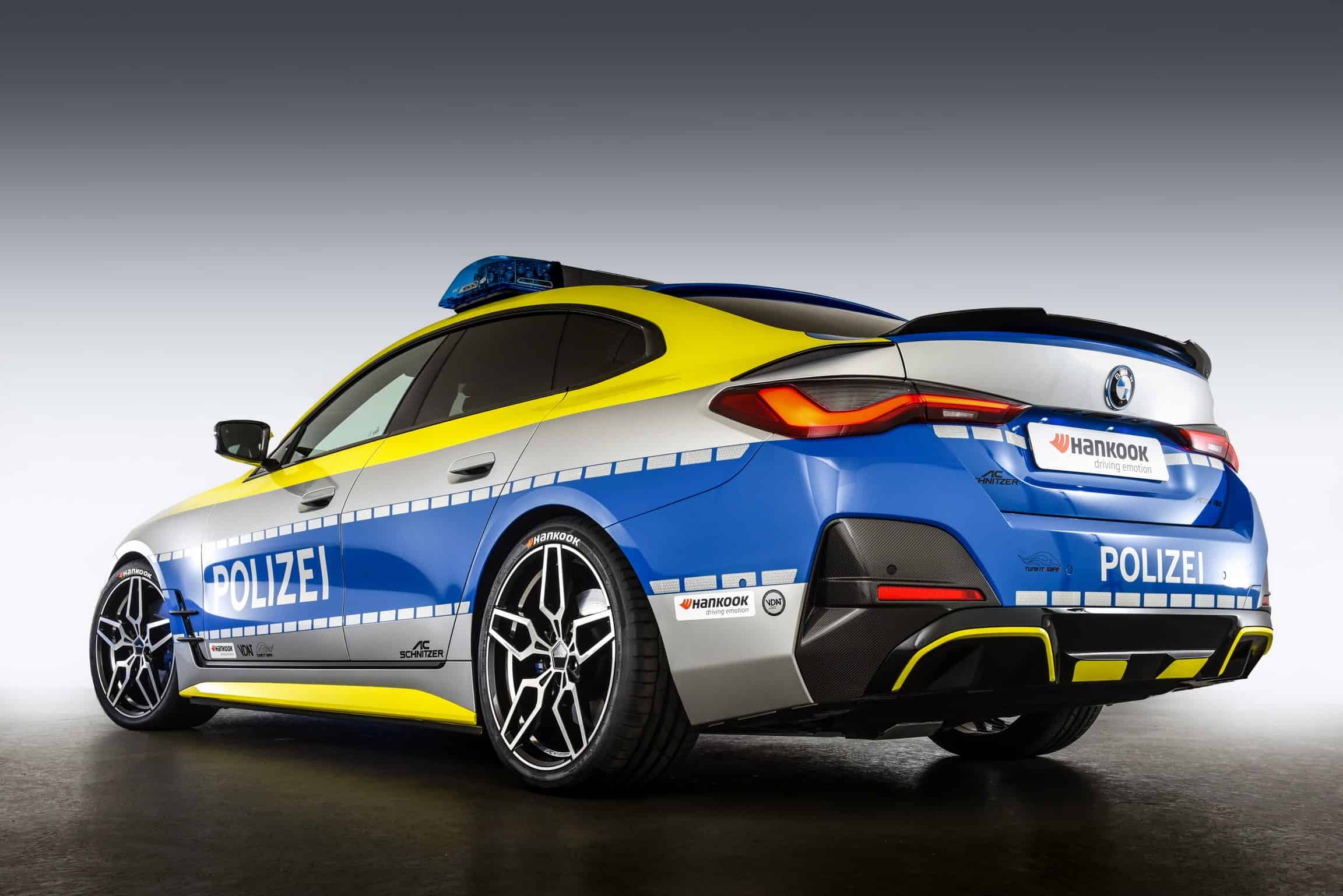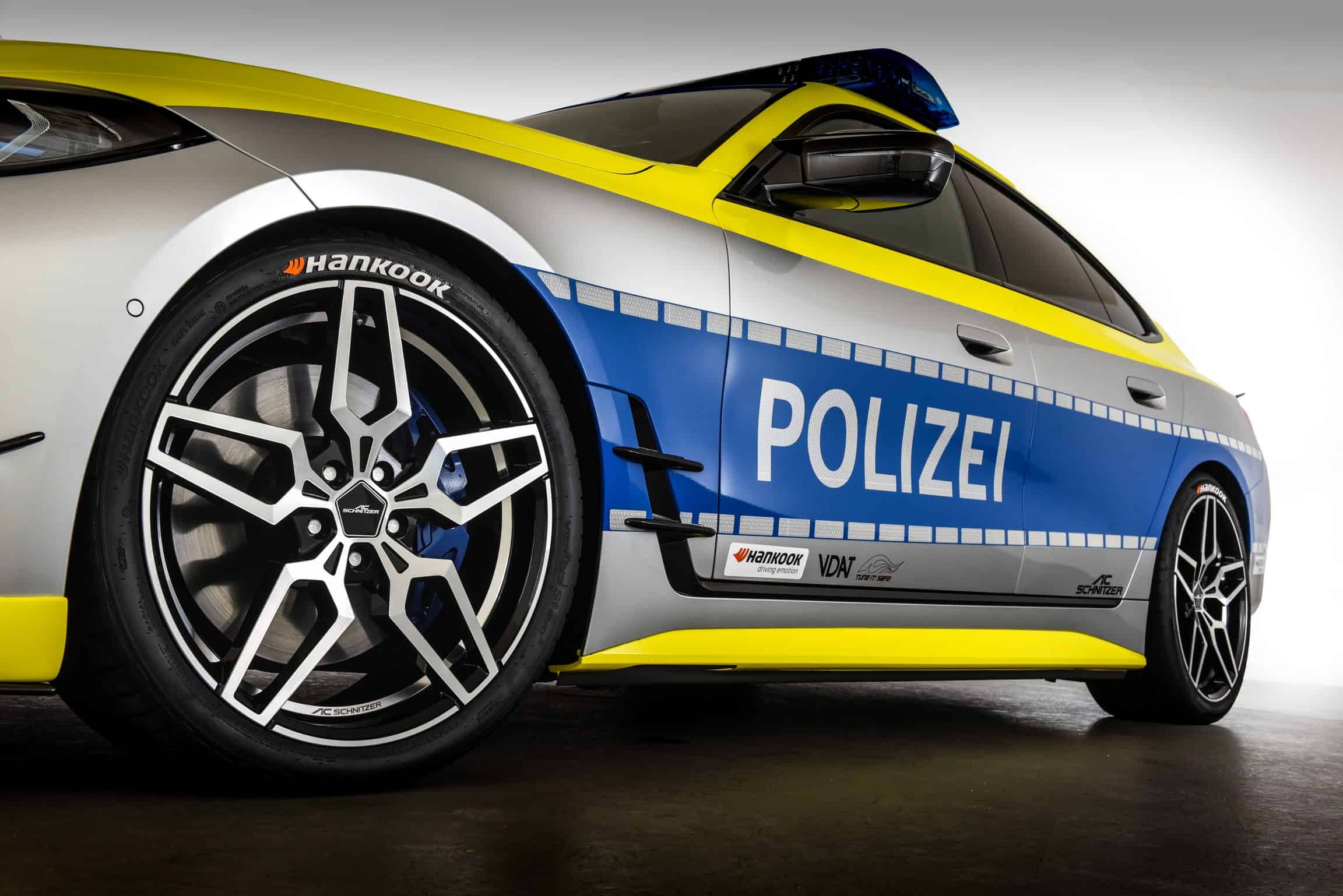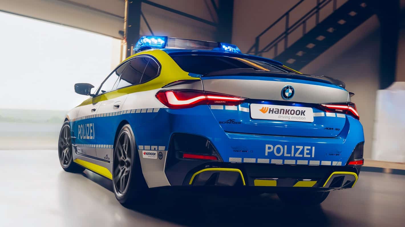 Right off the bat, we should point out this isn’t a police car in the truest sense of the meaning. Instead, the BMW i4 has been modified by AC Schnitzer for the “Tune It! Safe!” initiative. Supported by the Federal Ministry of Transport and Digital Infrastructure Germany, it’s a nationwide campaign that puts the spotlight on modifying cars in a safe way while fully respecting regulations.