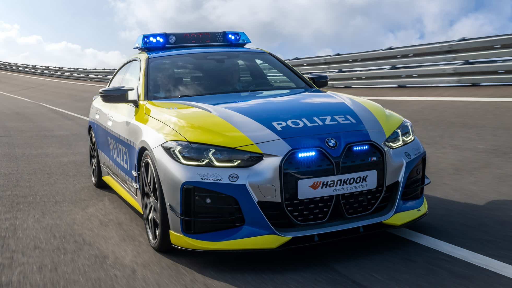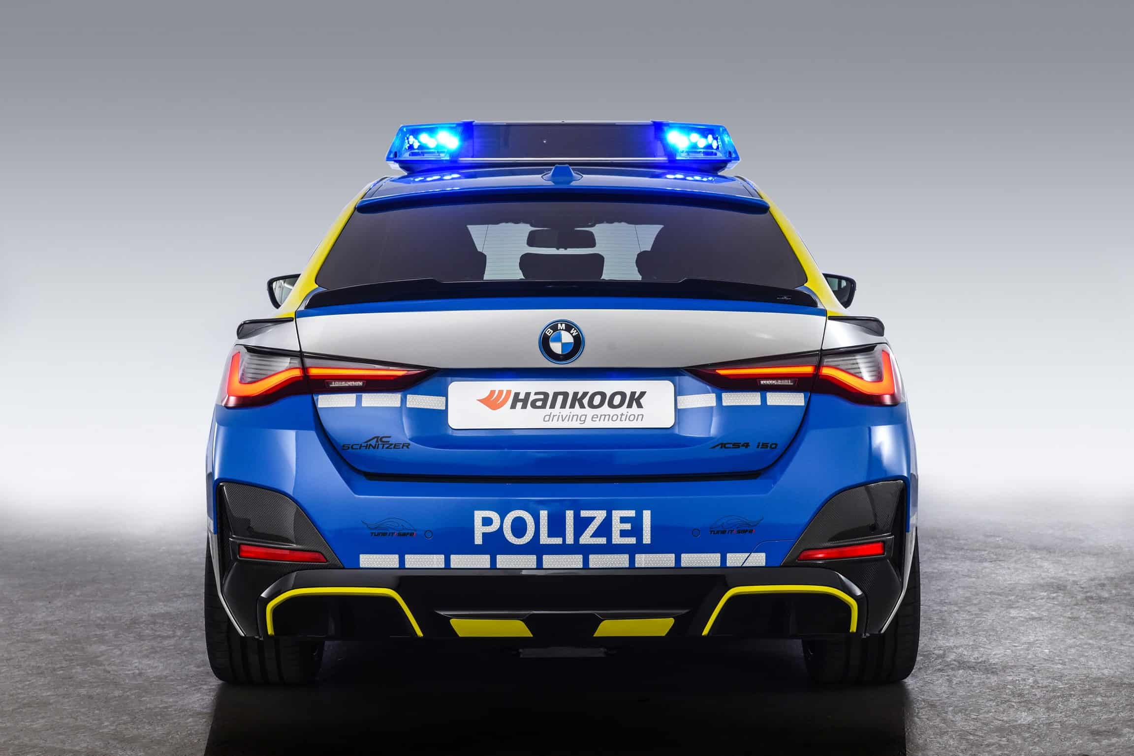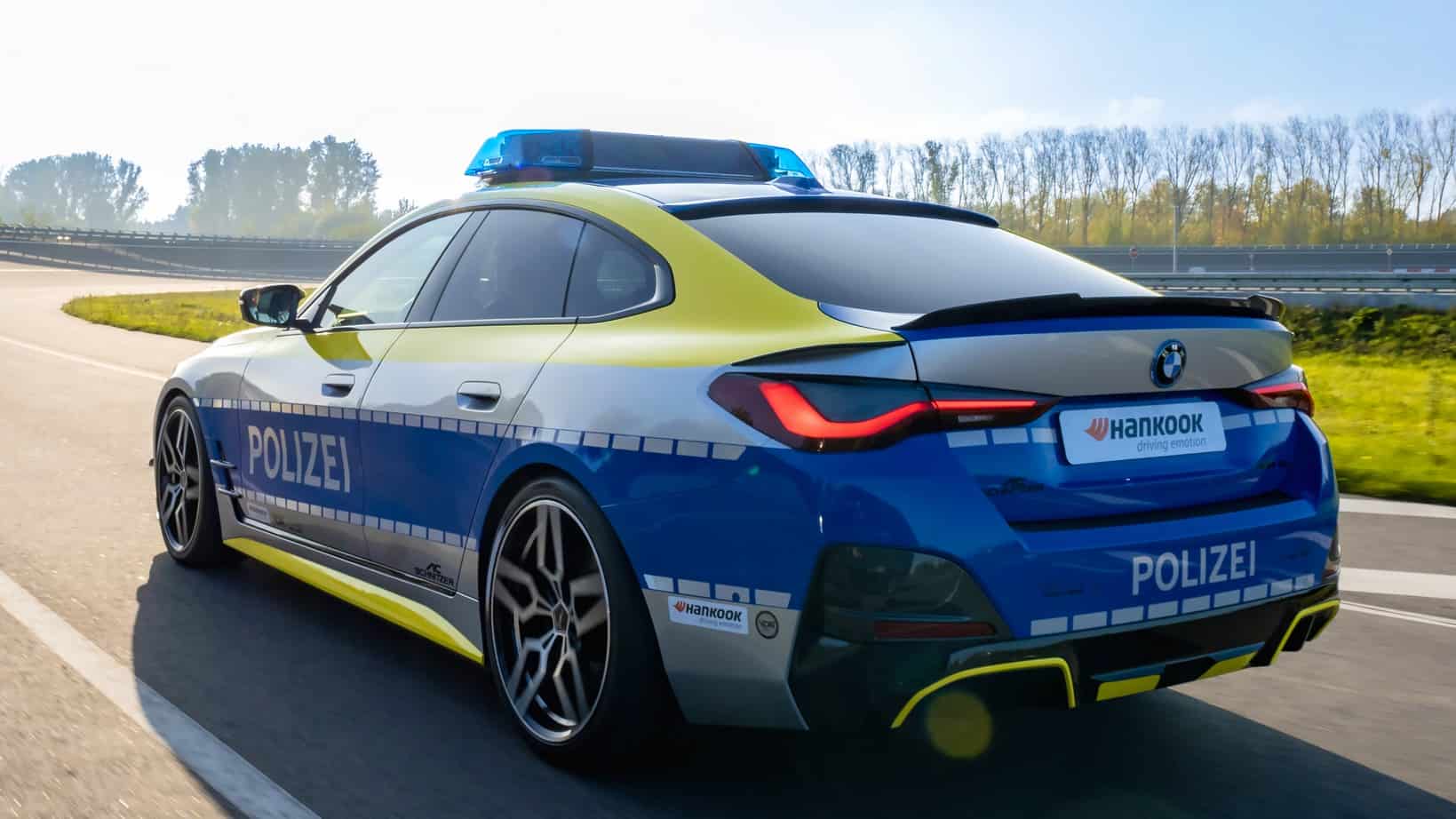 Right off the bat, we should point out this isn’t a police car in the truest sense of the meaning. Instead, the BMW i4 has been modified by AC Schnitzer for the “Tune It! Safe!” initiative. Supported by the Federal Ministry of Transport and Digital Infrastructure Germany, it’s a nationwide campaign that puts the spotlight on modifying cars in a safe way while fully respecting regulations.