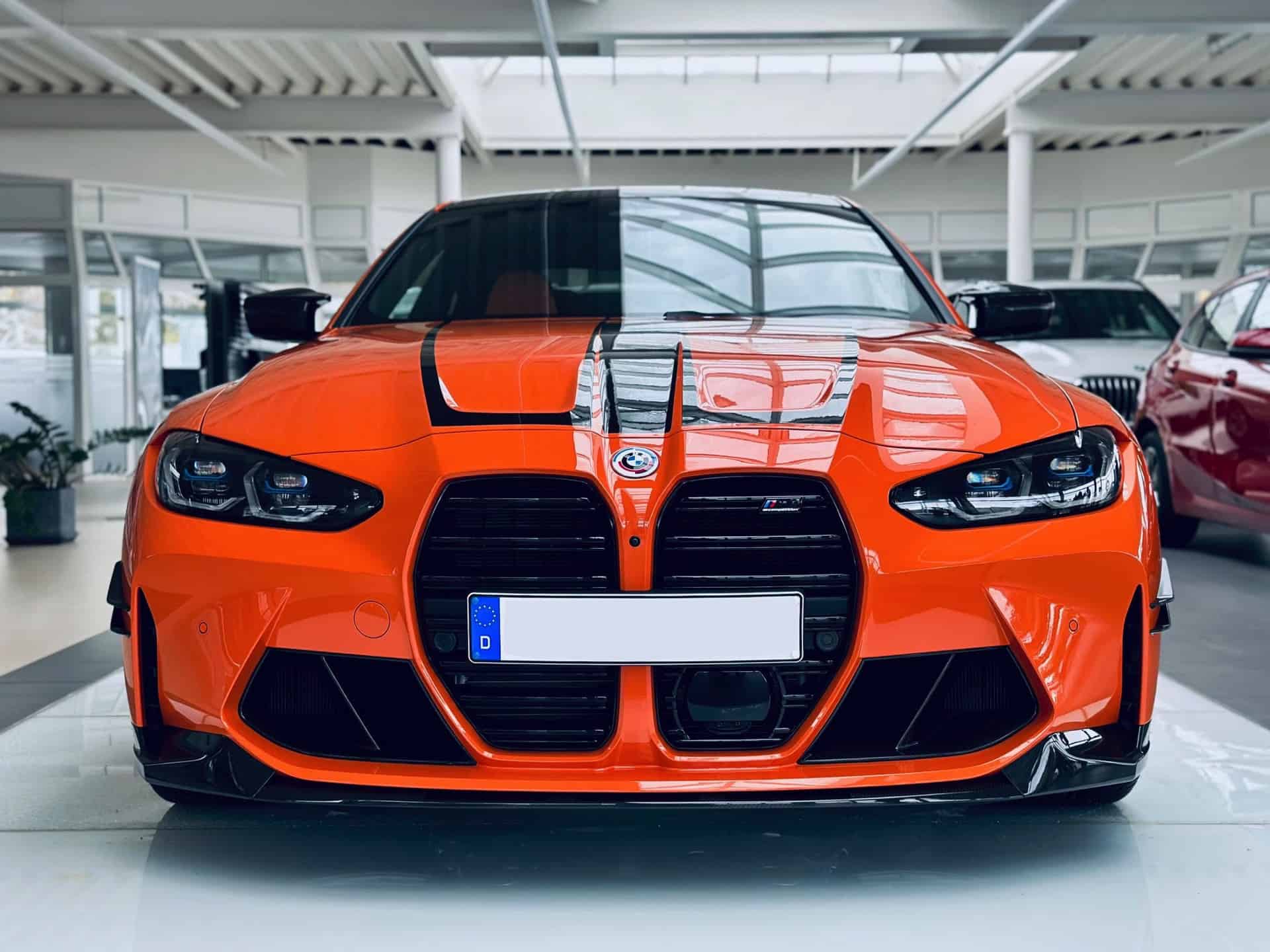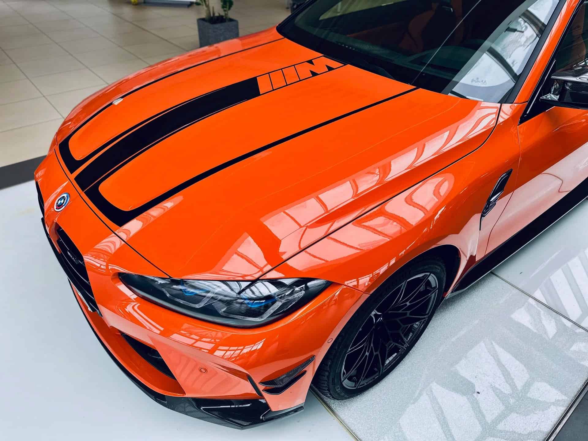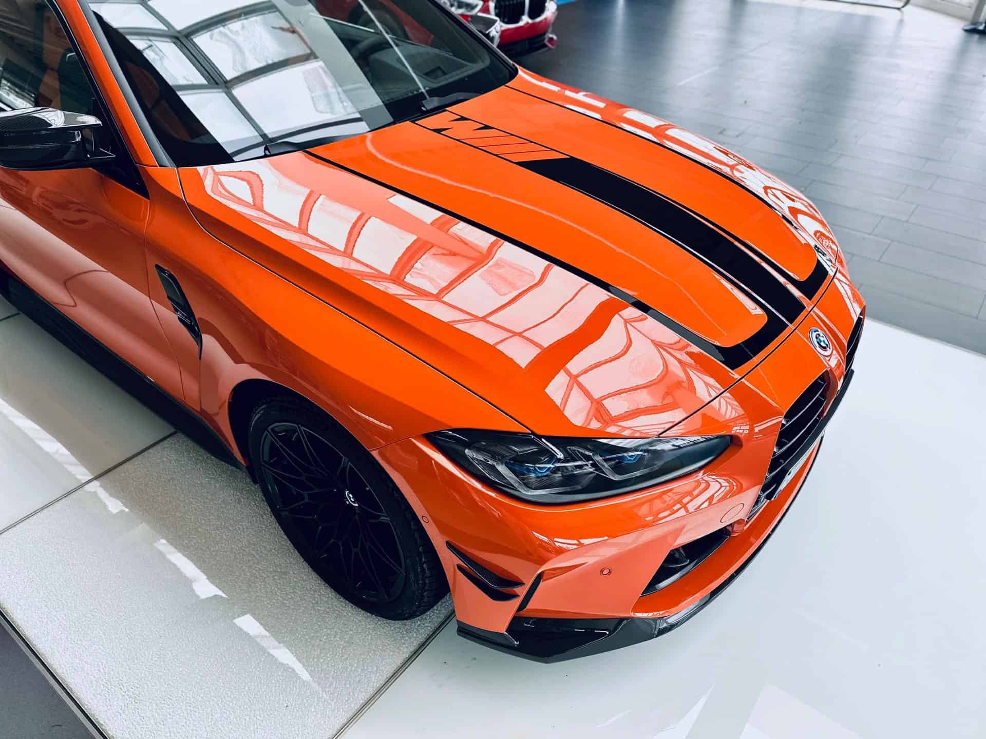 Configuring the M4 G82 can turn out to be an extremely lengthy process since BMW offers extensive customization options to spec your ideal performance coupe. Those looking for a shouty build might take inspiration from this eye-catching specification of a Competition model with rear-wheel drive. Painted in Fire Orange akin to the M3 E92 Lime Rock Park Edition, the high-spec version has the recently introduced black M decals on the hood and trunk lid.