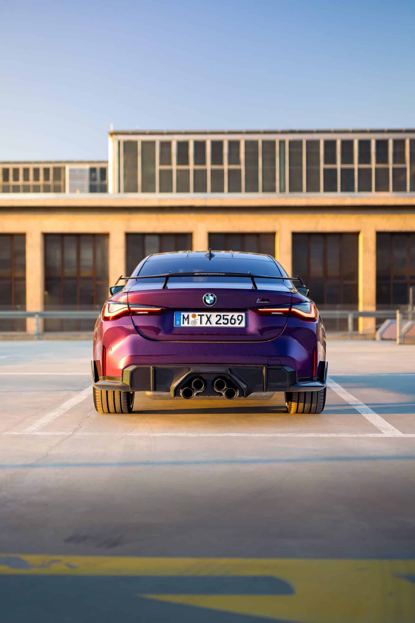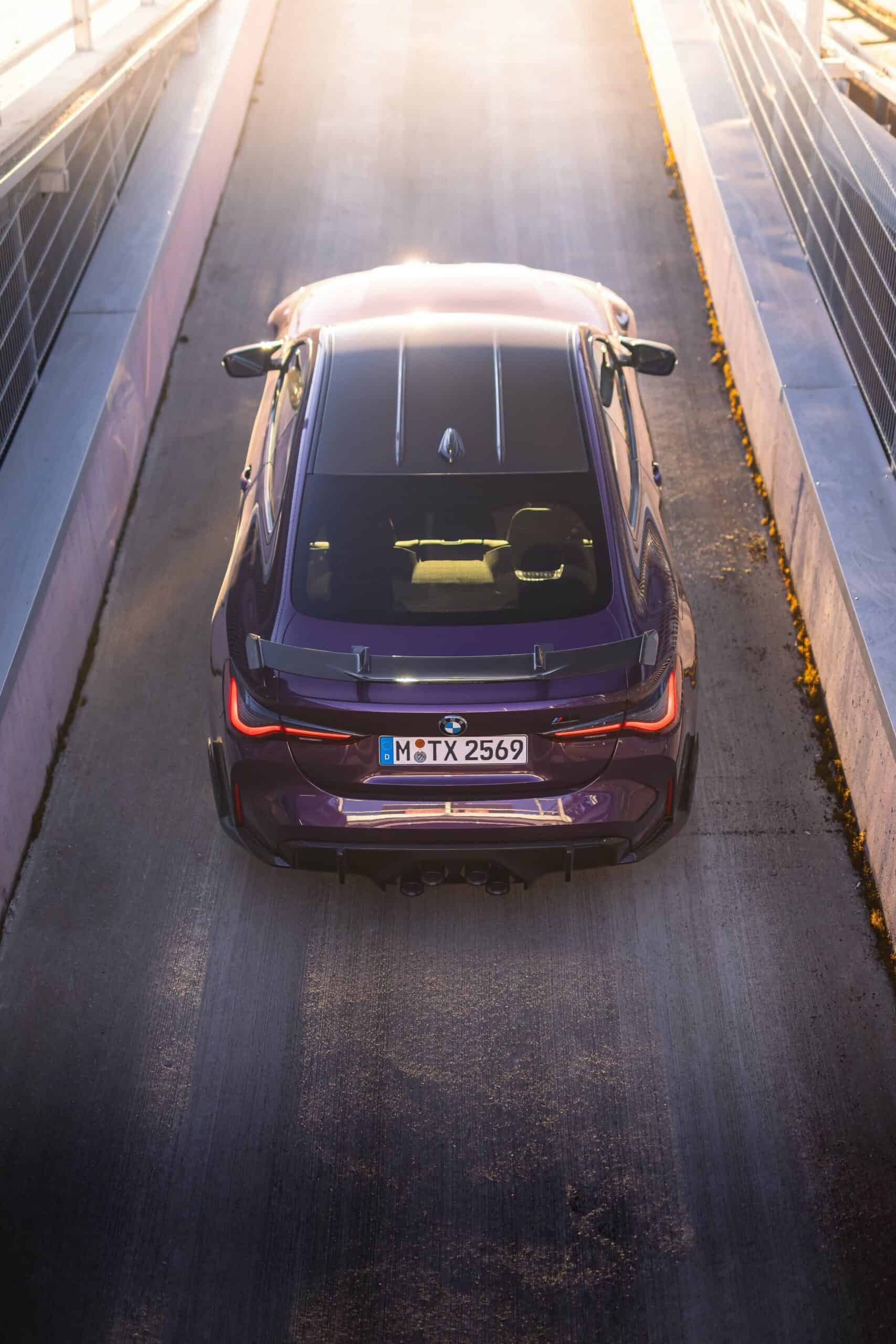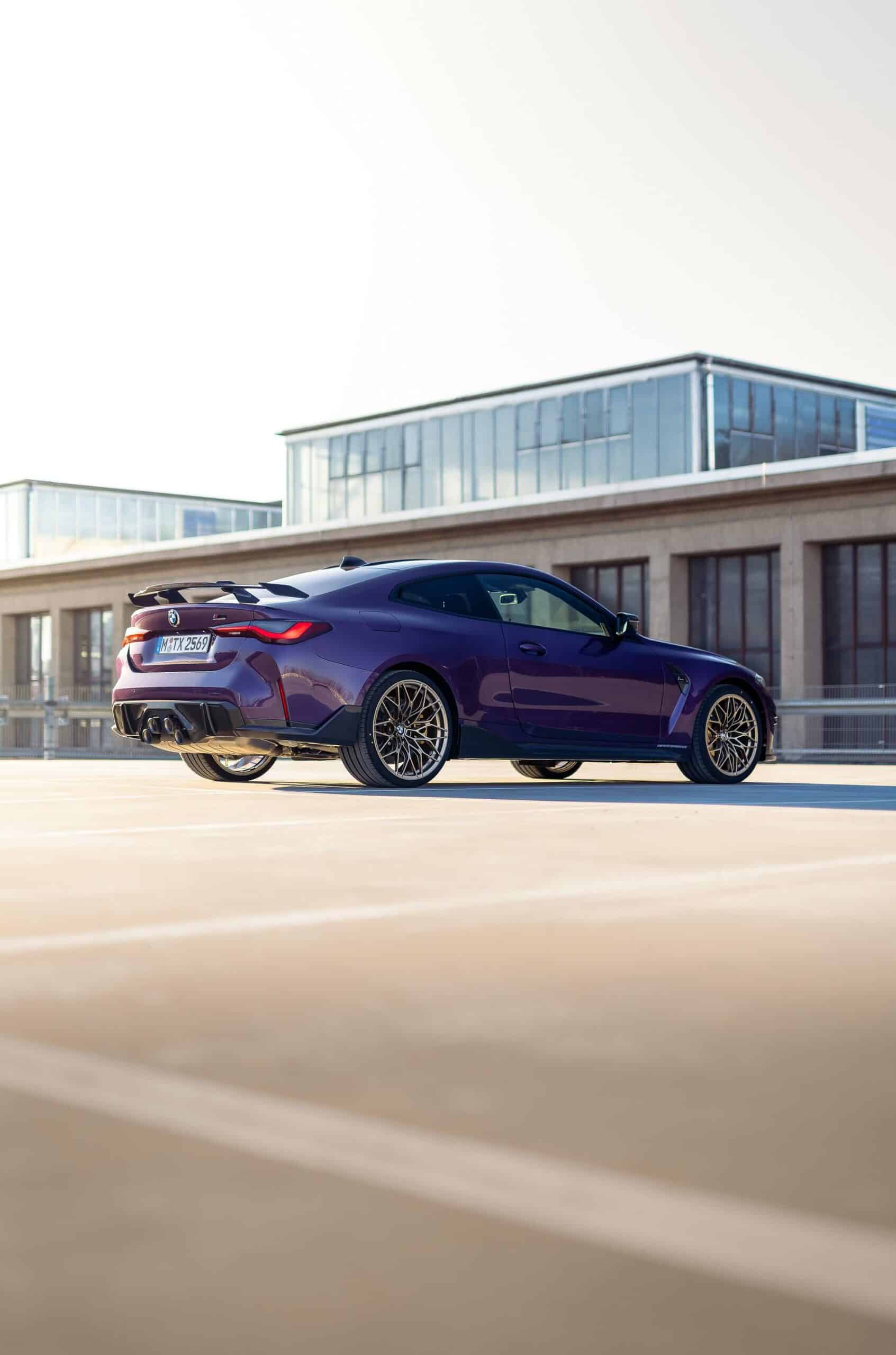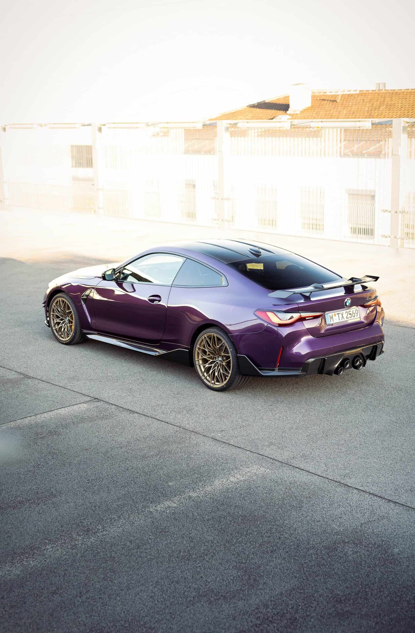 It’s based on the M4 Competition without xDrive and stands out courtesy of its Individual paint. BMW decided to go with Purple Silk and combine it with a carbon fiber roof complemented by several M Performance Parts. Notable upgrades include the optional 1000 M wheels with ceramic brakes featuring gold calipers, front canards, and a carbon fiber rear wing.