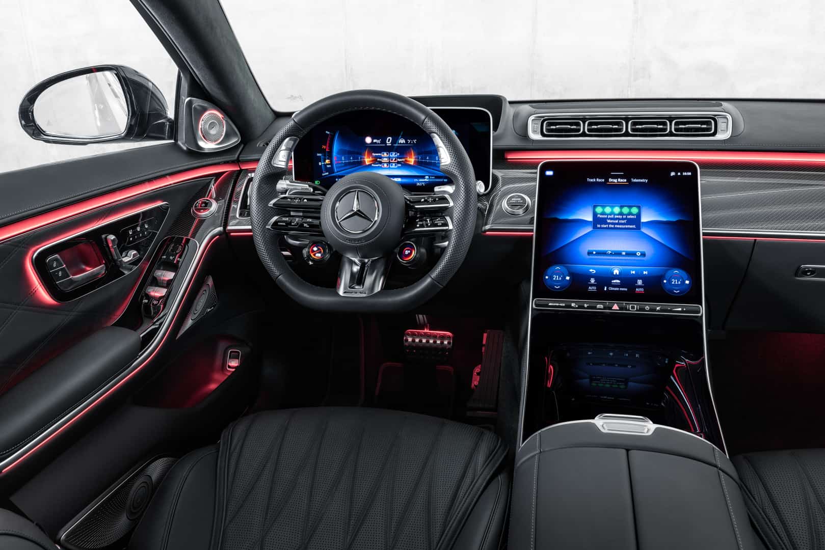 It isn’t just a straight-line bruiser, either. Mercedes-AMG has thrown as much tech as it possibly could to make the heavyweight sedan handle well, too. It has air suspension, four-wheel steer (which steers its rear wheels up to 2.5 degrees), active anti-roll bars, and a fancy steering system that features variable ratios that change based on speed. Most of the time, those sorts of systems feel wonky, as you can never quite judge a car’s steering consistently if it changes regularly.