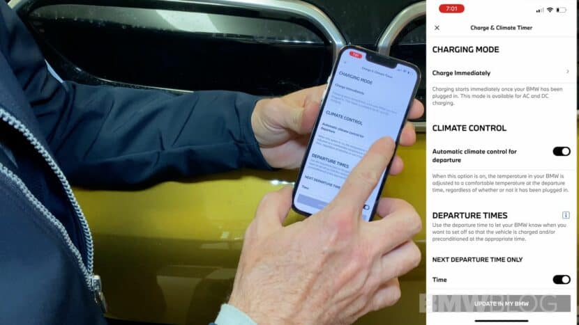 You have to program a departure time. The BMW will take approximately an hour to warm up a cold battery pack, so it needs to know when you want to leave. Programing a departure time is the only way your BMW knows this. You can program your departure time via the setting in the iDrive or on your My BMW app. I find the app to be much easier to use than the iDrive menus. However, it is nice that BMW gives you the option to program it in the car as well.