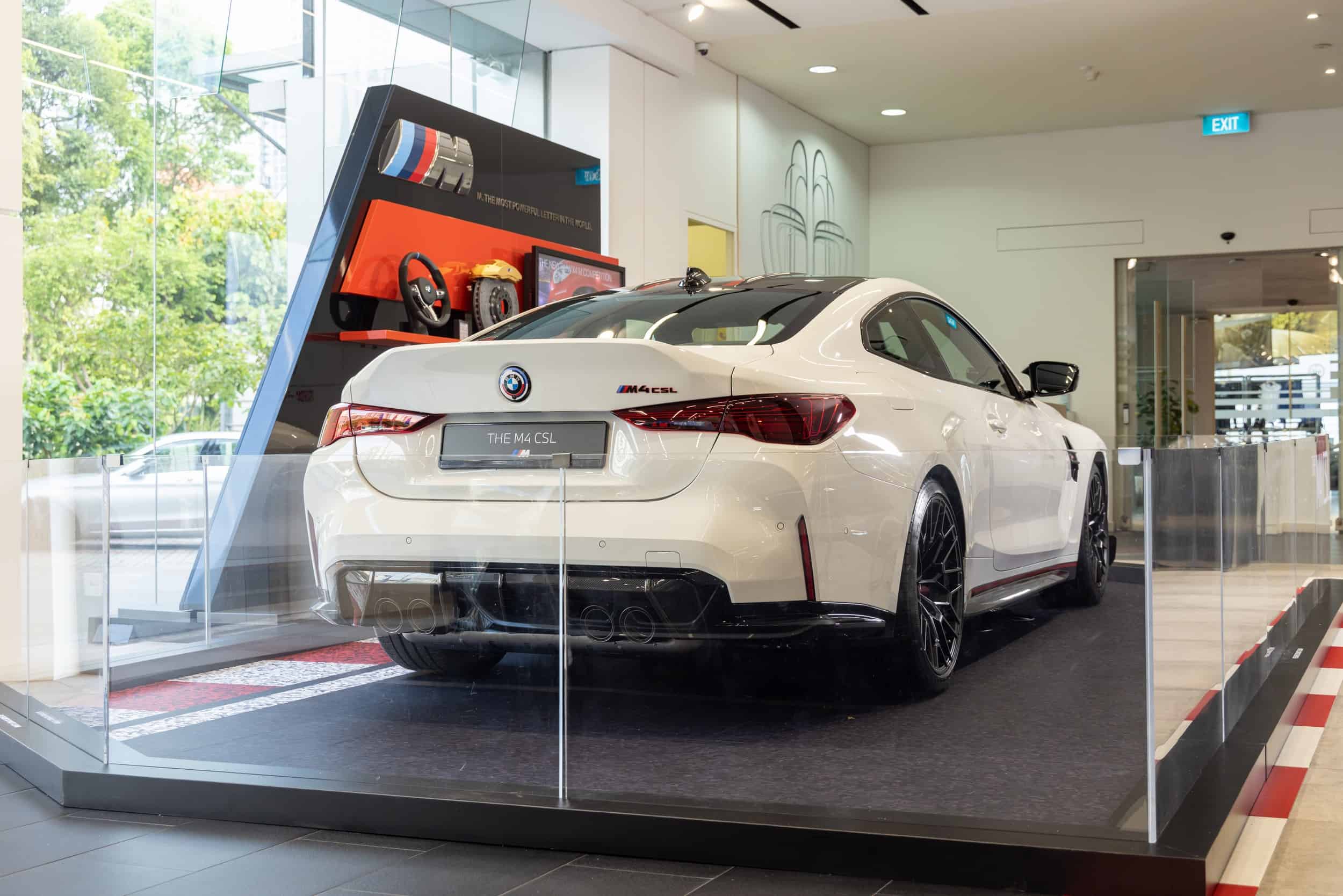 Only 1,000 units are being made for the whole world and one of them is currently on display in Singapore. Painted in Alpine White, the M4 CSL is showcased until December 14 at the Performance Munich Autos on 315 Alexandra Road. It’s exhibited alongside the M4 Competition 50 Jahre introduced earlier today for the local market where only three cars are planned.