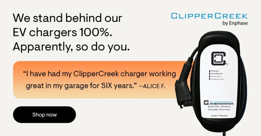 And because it’s just plugged in to the wall, it can easily be moved and isn’t permanent. Although, the cord can only be 12-inches long, by regulation, so the charger needs to be mounted close to the outlet. And since there’s no standardized 240-volt outlet, Clipper Creek sells every plug type available.