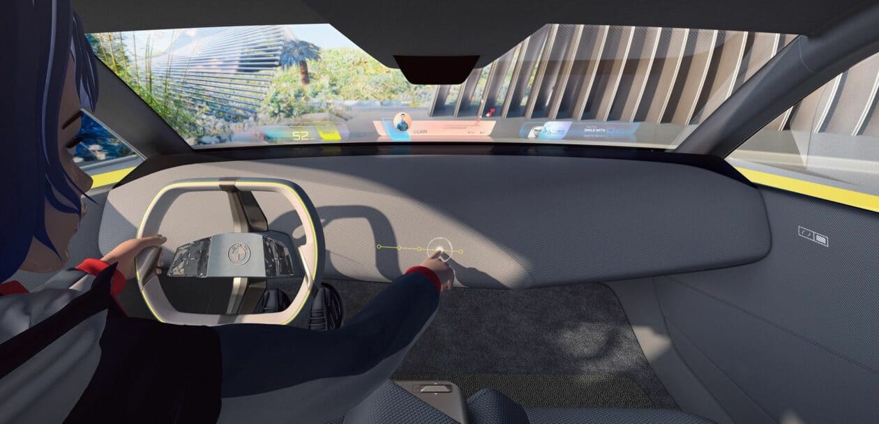 As car people, lets’ talk about the hardware first. With the BMW i Vision DEE, the concept car with which BMW is launching these new ideas, there’s a massive head-up display that spans the entire windshield. Along with that is a slider, that adjusts the levels of information displayed on the head-up display. There are five different levels of info, with the most basic being analog, which only displays typical gauges.