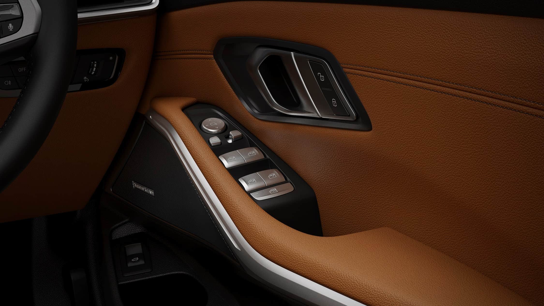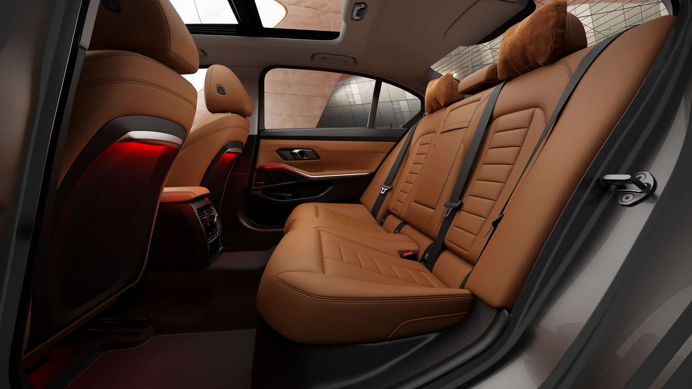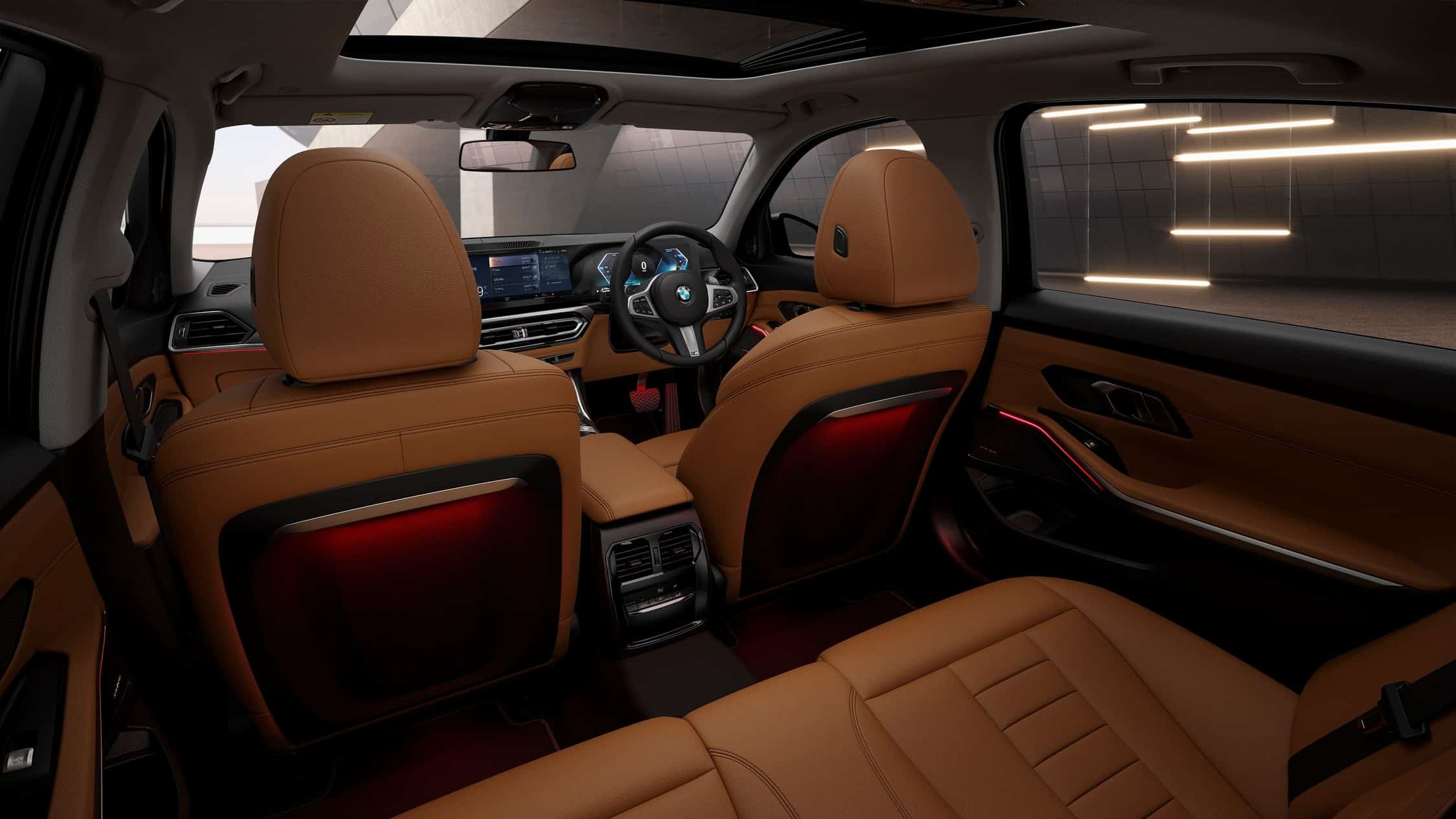 Aside from more ample rear legroom, the 3 Series Gran Limousine has a large panoramic sunroof and ambient lighting with an LED strip on the back of the front seats. In addition, BMW installs illuminated door sill plates, three-zone automatic climate control, galvanic controls, Sensatec door cards, and Contour Seats wrapped in Vernasca cognac leather. Alternatively, the upholstery can be a combination of Black and Mocha or just Black.