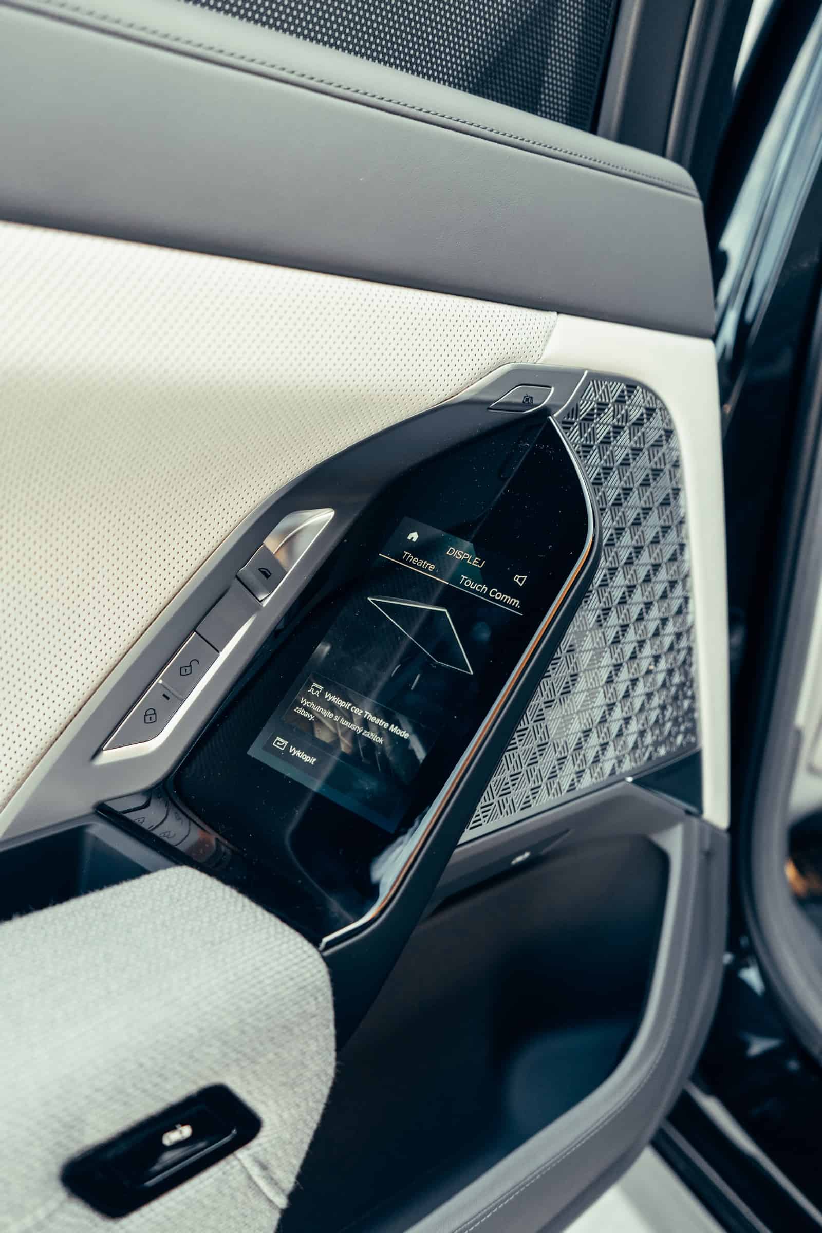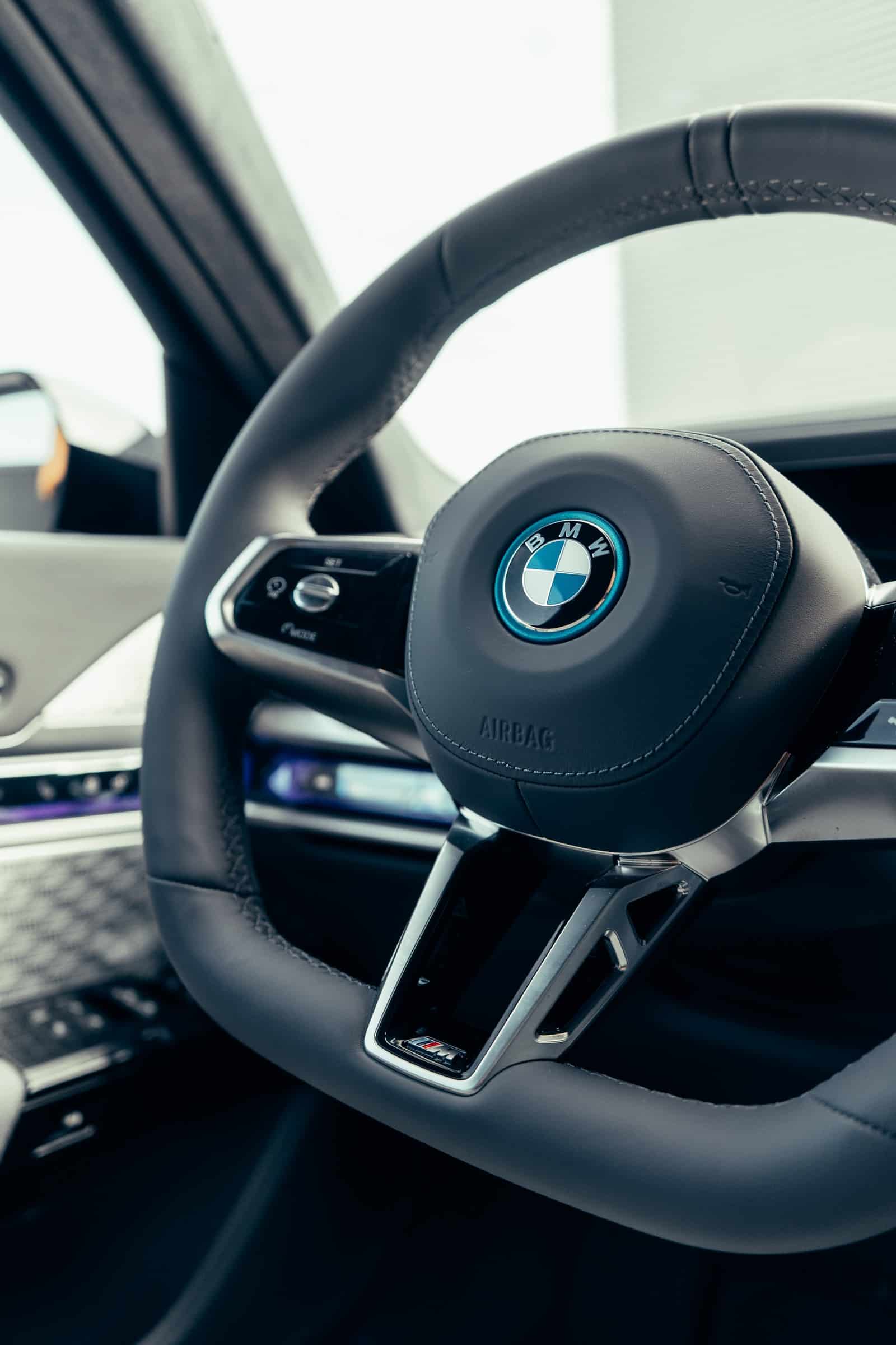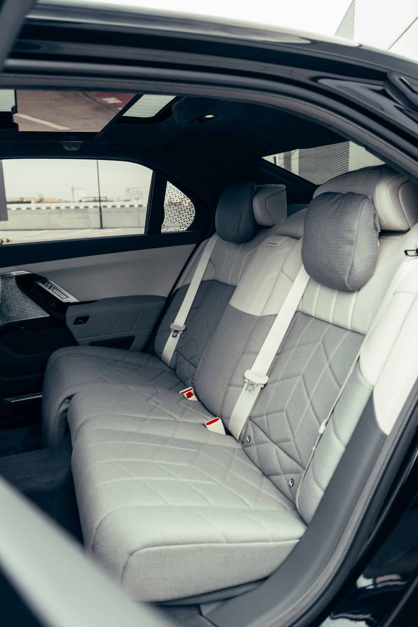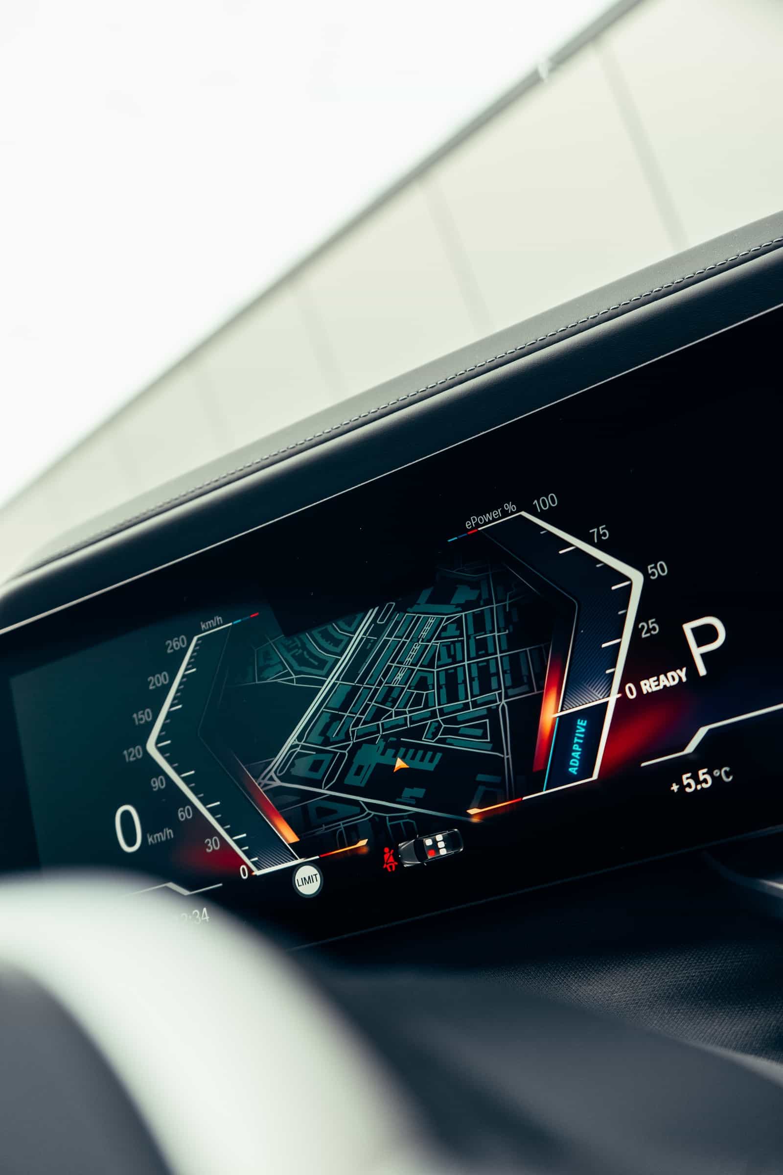 The all-black exterior with its dark 21-inch wheels is contrasted by the light-colored leather in the upper section of the seats while the lower sections have a darker cashmere cloth. Yes, a €200,000 car has cloth on the inside as BMW believes the Smoke White/Atlas Grey upholstery with wool/textile surfaces provides a “new haptic quality to the interior and combines sustainability with luxury.”