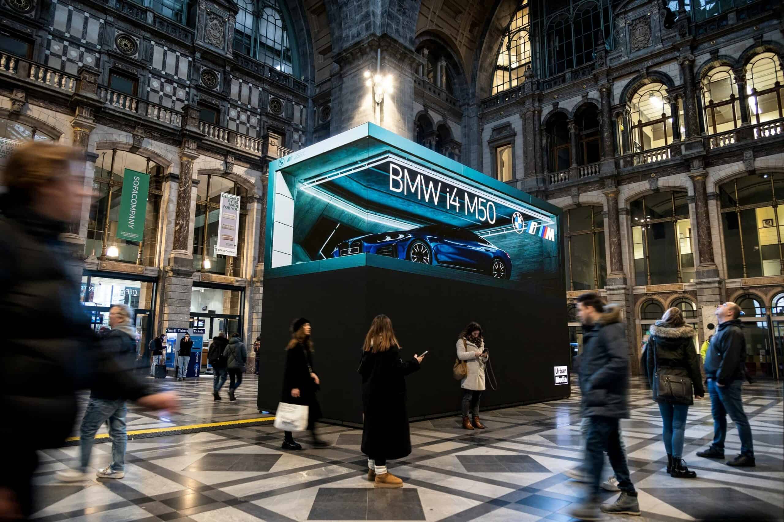 It would seem BMW is taking full advantage of fancy 3D screens for immersive ads in highly populated areas. After purchasing advertising space in Times Square to promote the 2023 XM and how electric vehicles have evolved over the years, the i4 M50 is currently showcased in Belgium. Specifically, a double-sided LED screen measuring 100 square meters has been installed at the Antwerp Central Station.