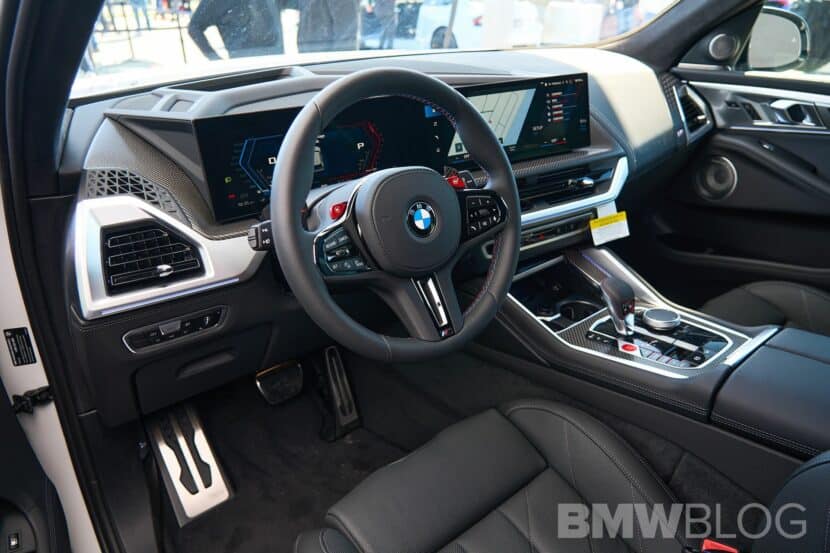 This Mineral White BMW XM was paired inside with all-black leather upholstery for a more subdued look. The black interior comes standard on the 2023 BMW XM and is free of charge. Sakhir Orange and Black is a $1,500 upcharge. Spend $2,500 and get wild two-tone Silverstone with Vintage Coffee or Deep Lagoon with Vintage Coffee. But shockingly, overall there aren’t a whole ton of options for the vehicle. Only one trim option is currently available, and it’s carbon fiber. Therefore, with less than a 10% increase over the base price, a fully loaded BMW XM lists for $167,400.Â