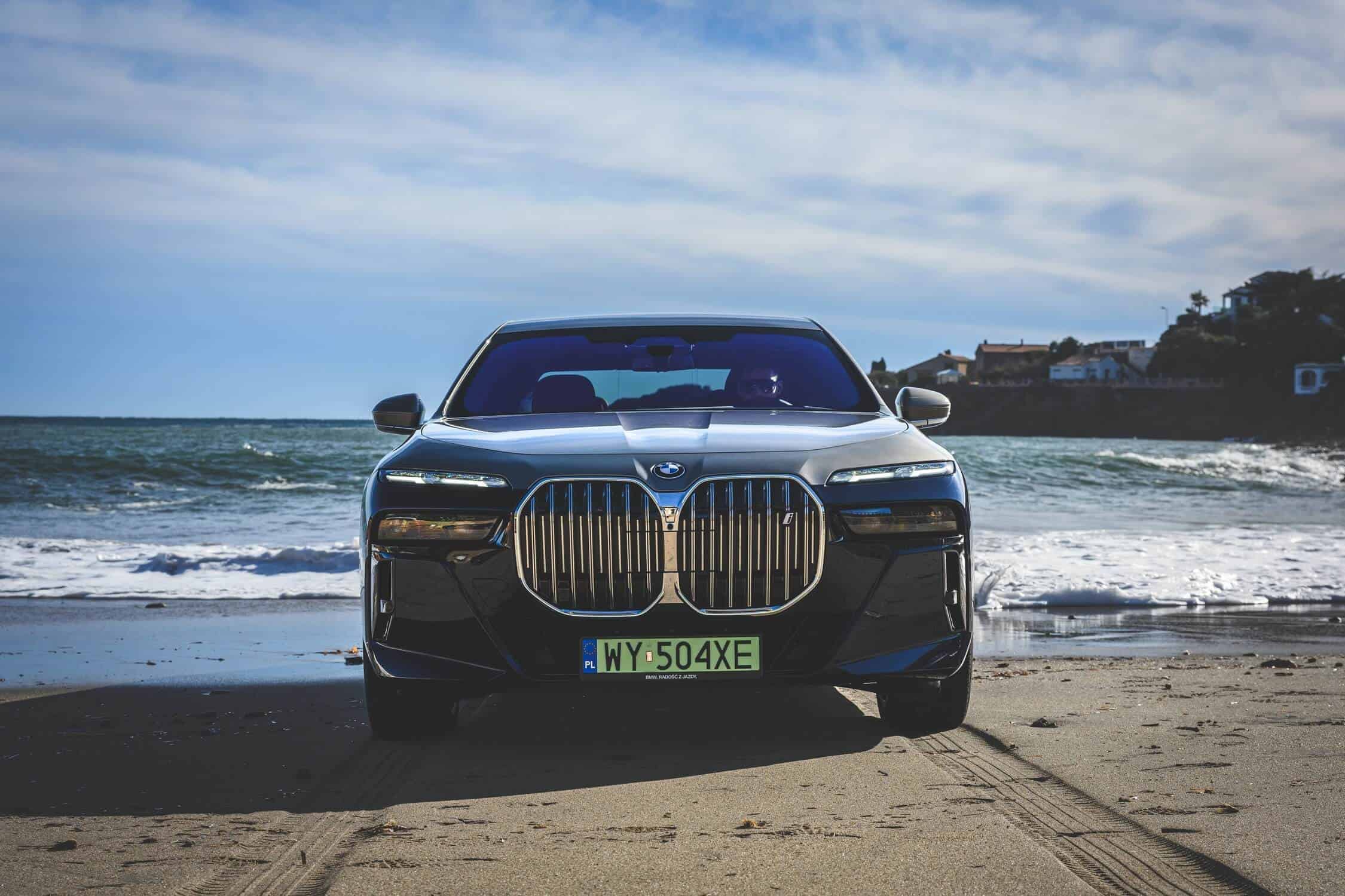 The car in question is a fully electric i7 xDrive60 that combines Tanzanite Blue metallic from the Individual catalog with Oxide Gray used for the upper part of the body. It also happens to have the M Sport Package but keeps the chrome accents and shiny kidney grille as the blacked-out look is reserved for the M Sport Pro version. Those 21-inch wheels are the largest available for BMW’s flagship and come with a glossy finish.