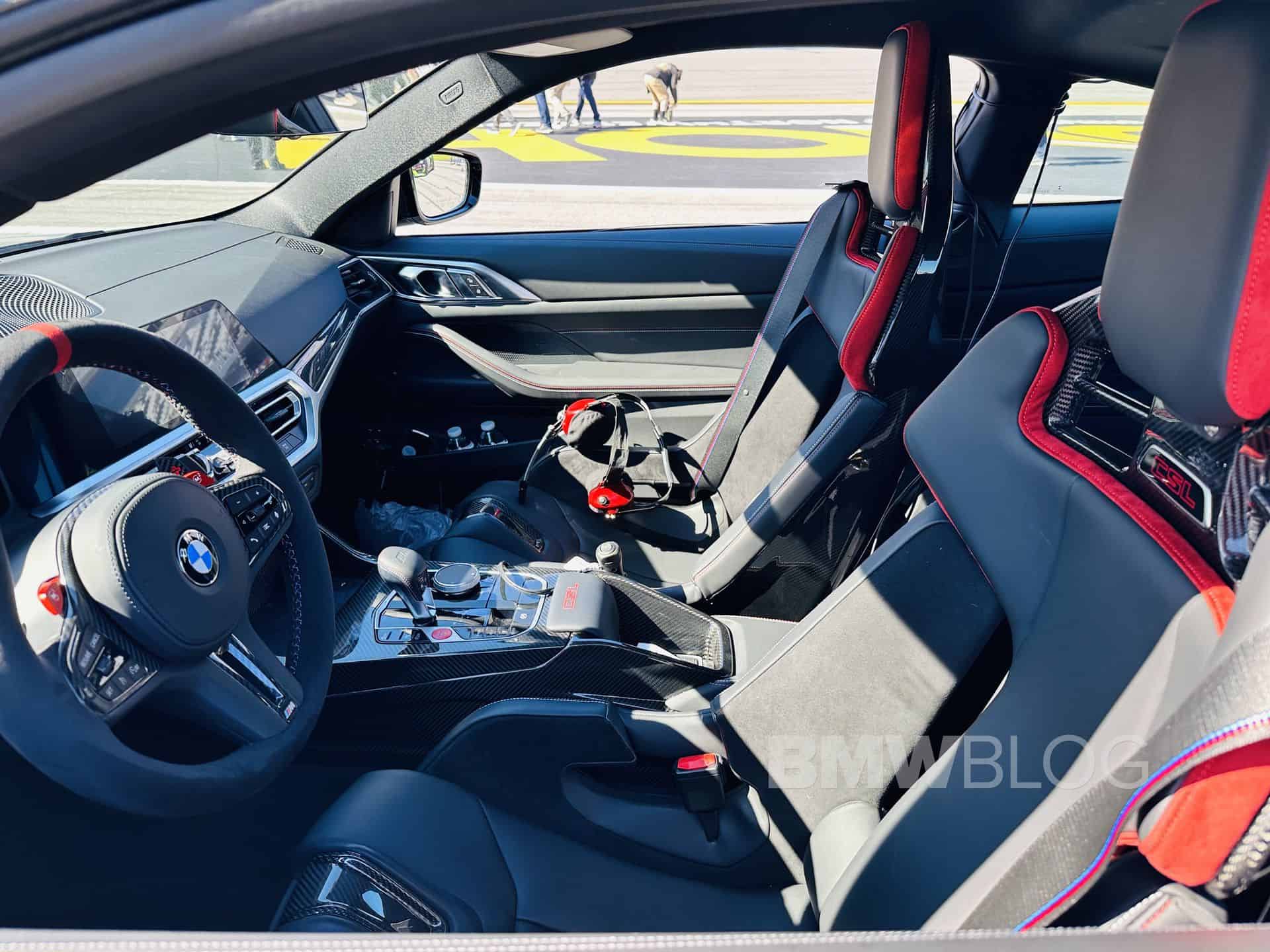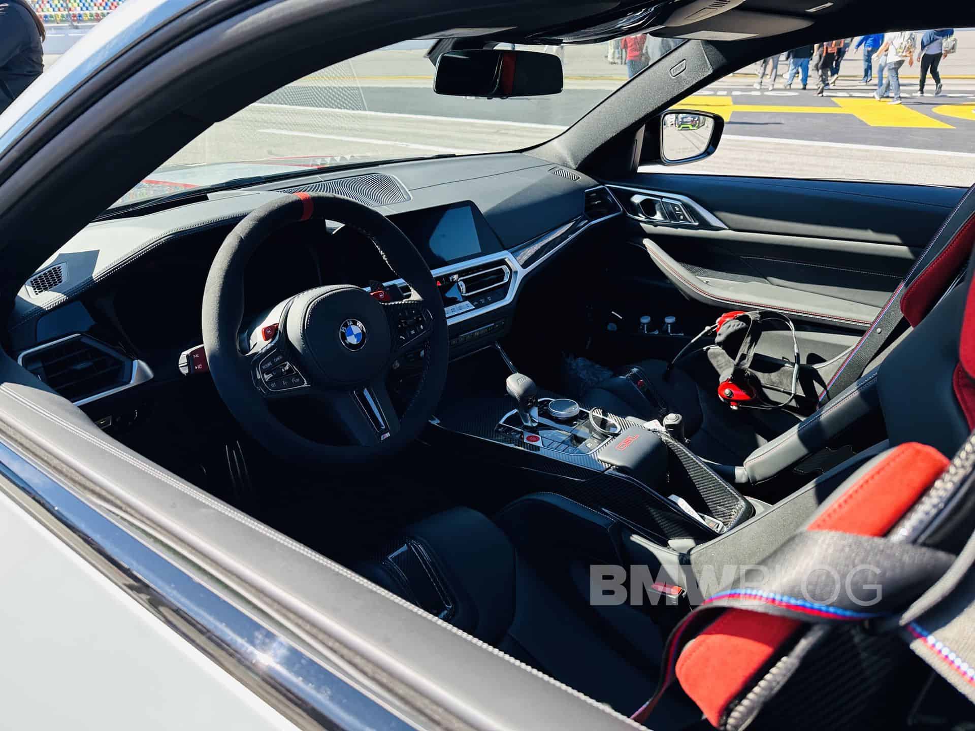 It goes without saying this isn’t one of the 1,000 cars BMW is making for customers, so it’s either a prototype or an M4 CSL built specifically to serve as a Safety Car. Either way, we’re noticing it has the previous-generation infotainment. It wasn’t until earlier this week when the company announced it will install iDrive 8 in all 4 Series models with cars manufactured from spring, so the CSL uses the old setup.