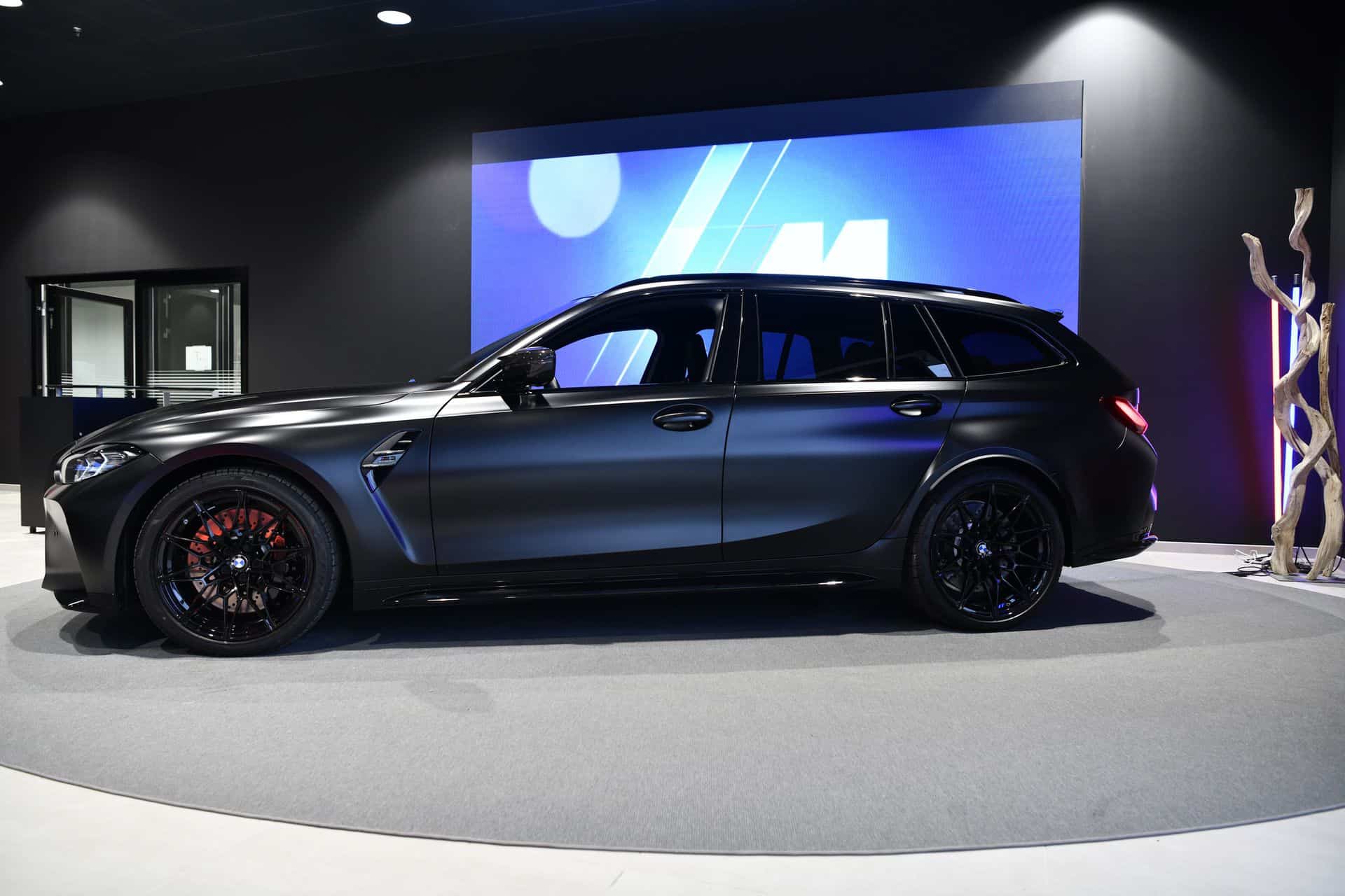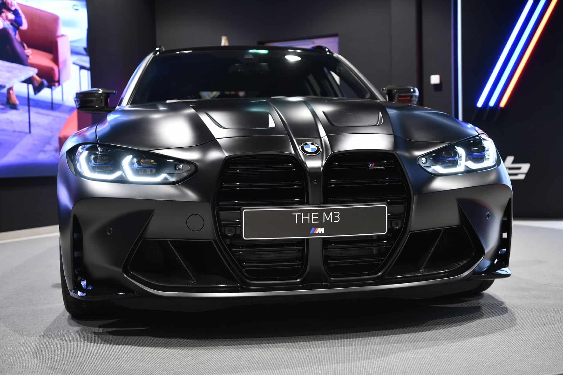 BMW offers the M3 Touring with many splashy colors and yet we’d likely be tempted to keep our configuration simple and just go with black. Granted, this isn’t a regular paint job as we’re looking at Individual Frozen Black with a matte finish. The super wagon has been photographed up close and personal at a dealership in Luxembourg, flaunting a sinister look with everything dark.
