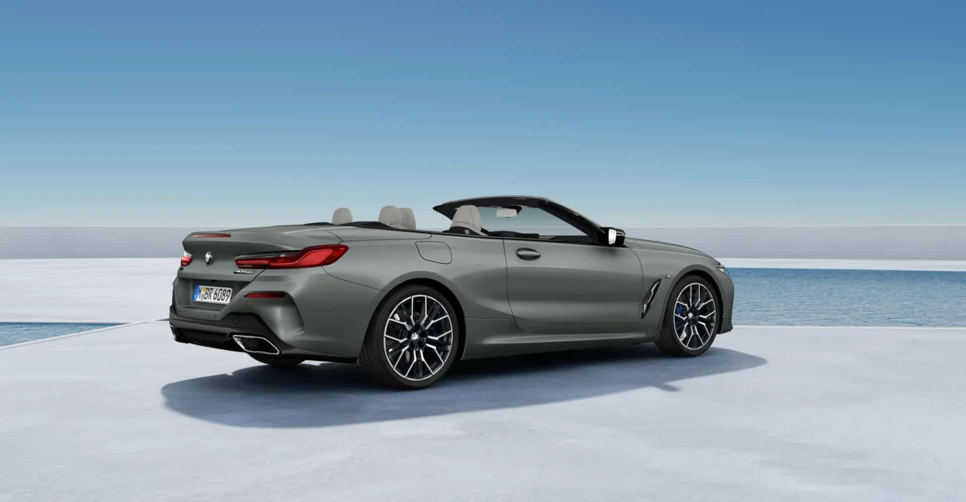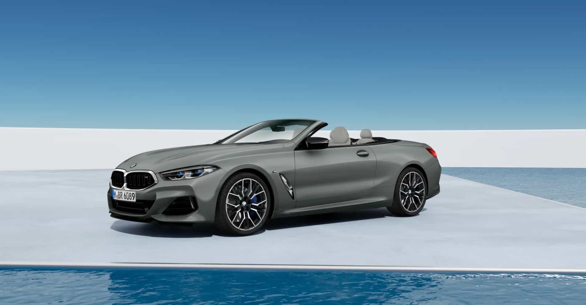 The switch is unlikely to happen before the middle of the decade, so there’s still plenty of time to get the stylish grand tourer with only two doors and pick from inline-six or V8 engines. One expensive build is highlighted at the BMW Welt in Munich where an M850i xDrive Convertible is flaunting an Individual matte paint. Finished in Frozen Pure Grey, the posh cabrio has a light blue fabric roof and 20-inch wheels with a two-tone look.