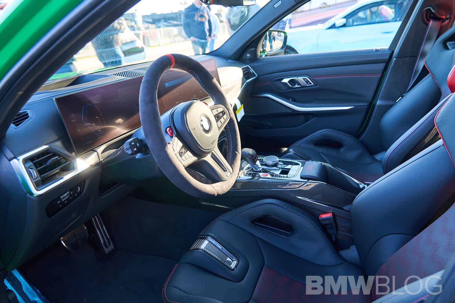 The interior of the 2024 BMW M3 CS is just as impressive as its exterior. You will find carbon bucket seats in a two-tone color combination, along with a carbon fiber center console. As a fun fact, there are no cup holders, just like the M4 CSL. iDrive 8 and the large curved display are the biggest change compared to the CSL model.