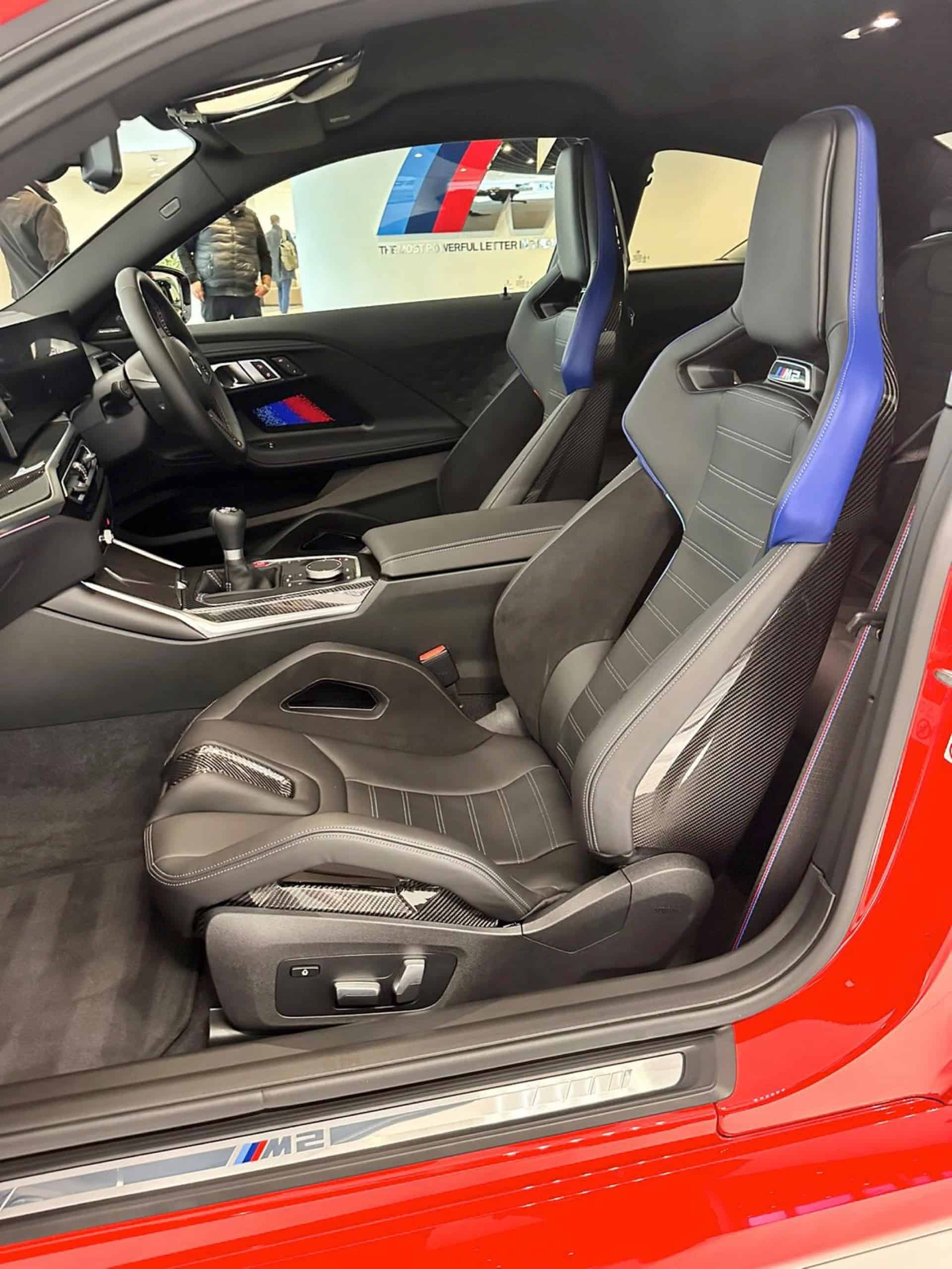 It rides on 19-inch front and 20-inch rear wheels finished in black with the 930 M design and red brake calipers to match the body. More extra goodies are found on the inside where the carbon front bucket seats are an option. Oddly enough, that six-speed manual gearbox comes at a premium in some markets. For example, it’s an additional €500 in Germany where the new M2 gets the eight-speed automatic transmission as standard. In the United States, you can go with either without having to pay more.