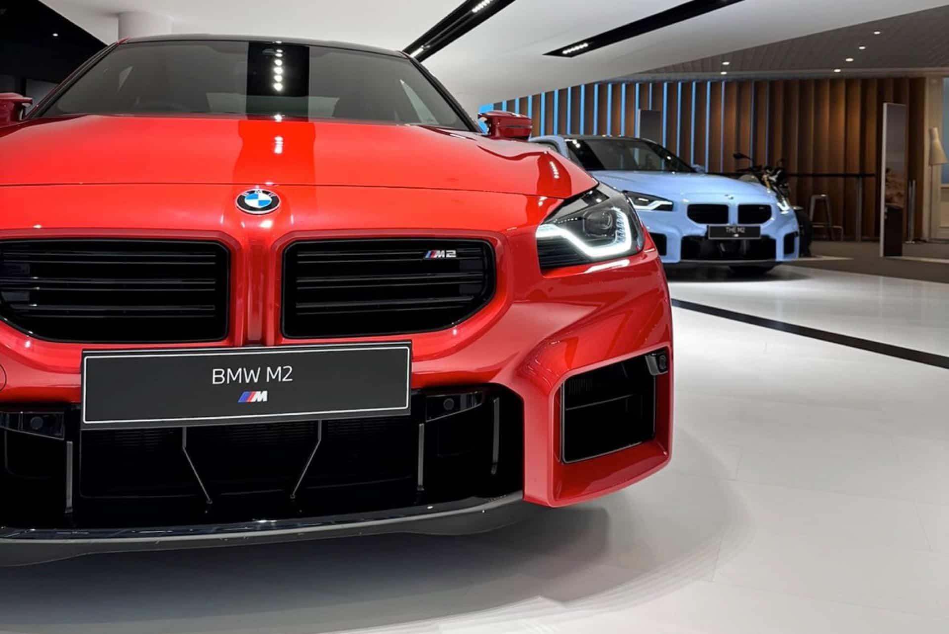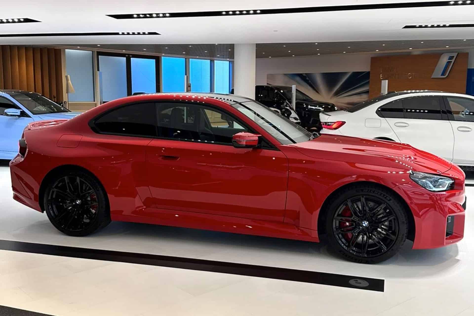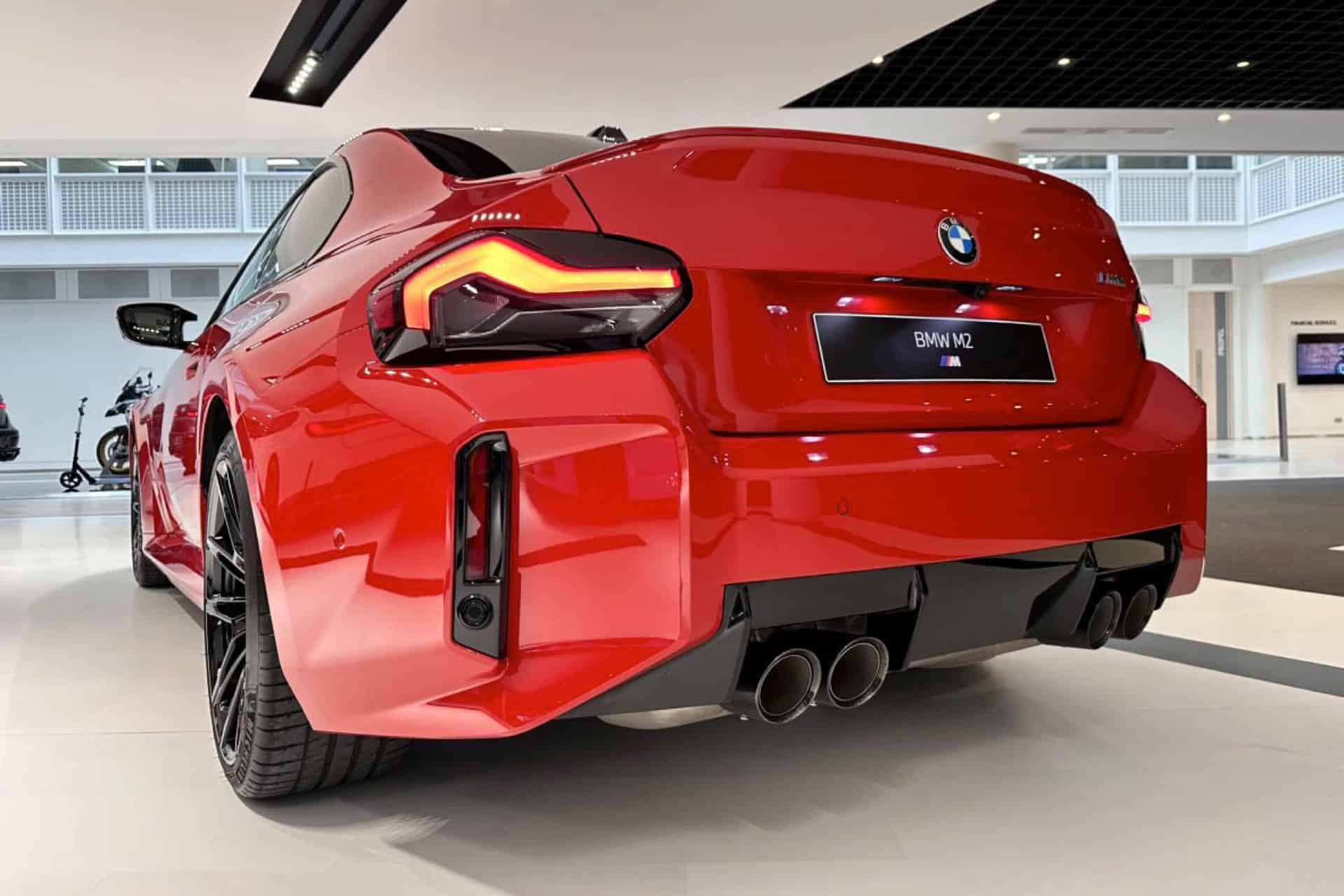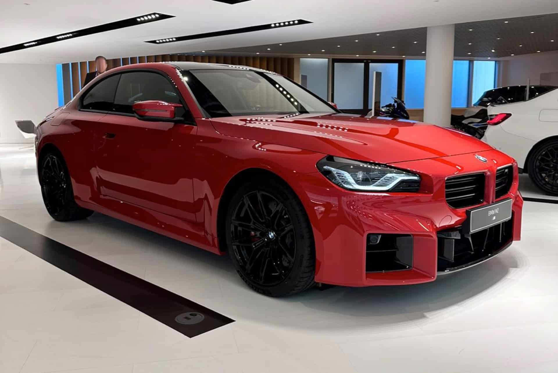 The new BMW M2 is available at launch in only five colors, including the exclusive Zandvoort Blue seen in the background of some of these images. Should you want something a bit more eye-catching, this M Toronto Red metallic is probably the right shade for your ideal G87 build. New images from Andrew Barker at Dick Lovett BMW in the United Kingdom put the spotlight on the sports coupe fitted with the optional carbon fiber roof.