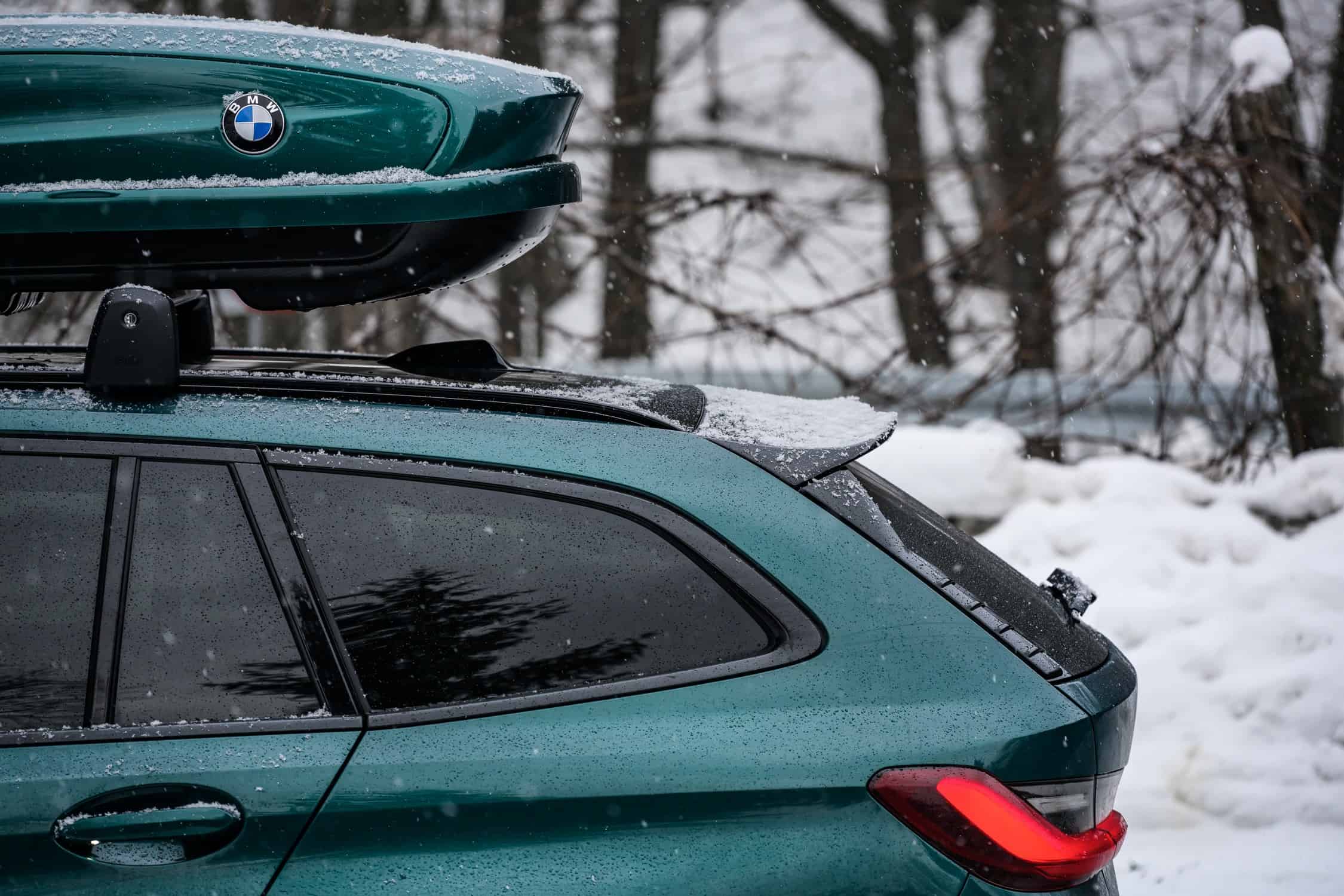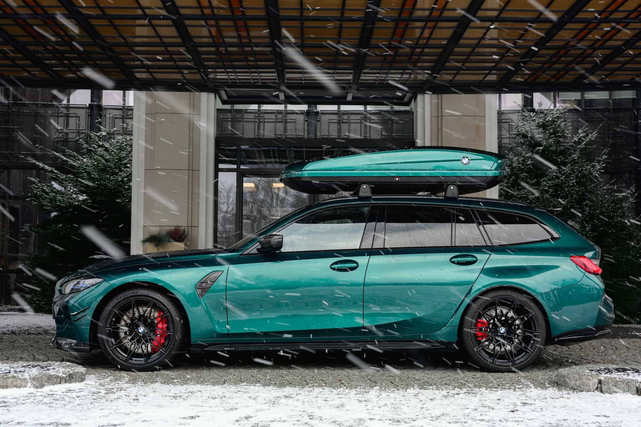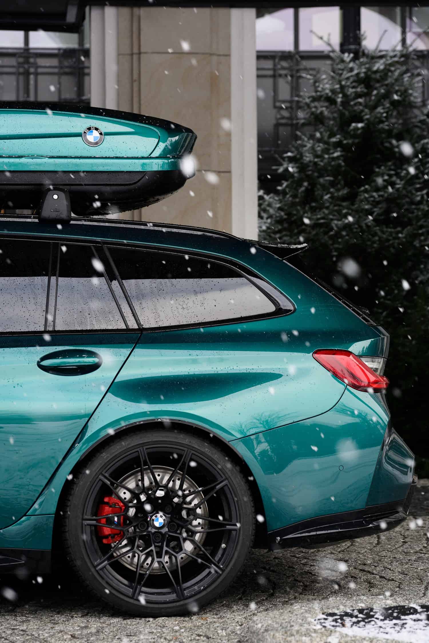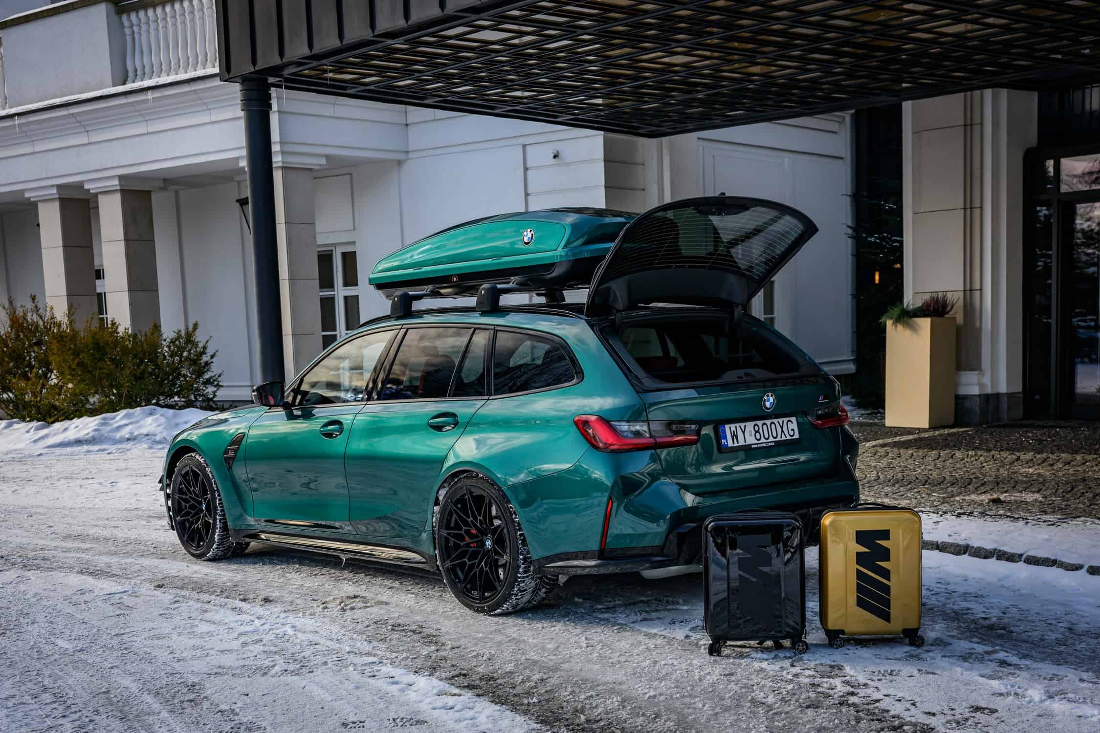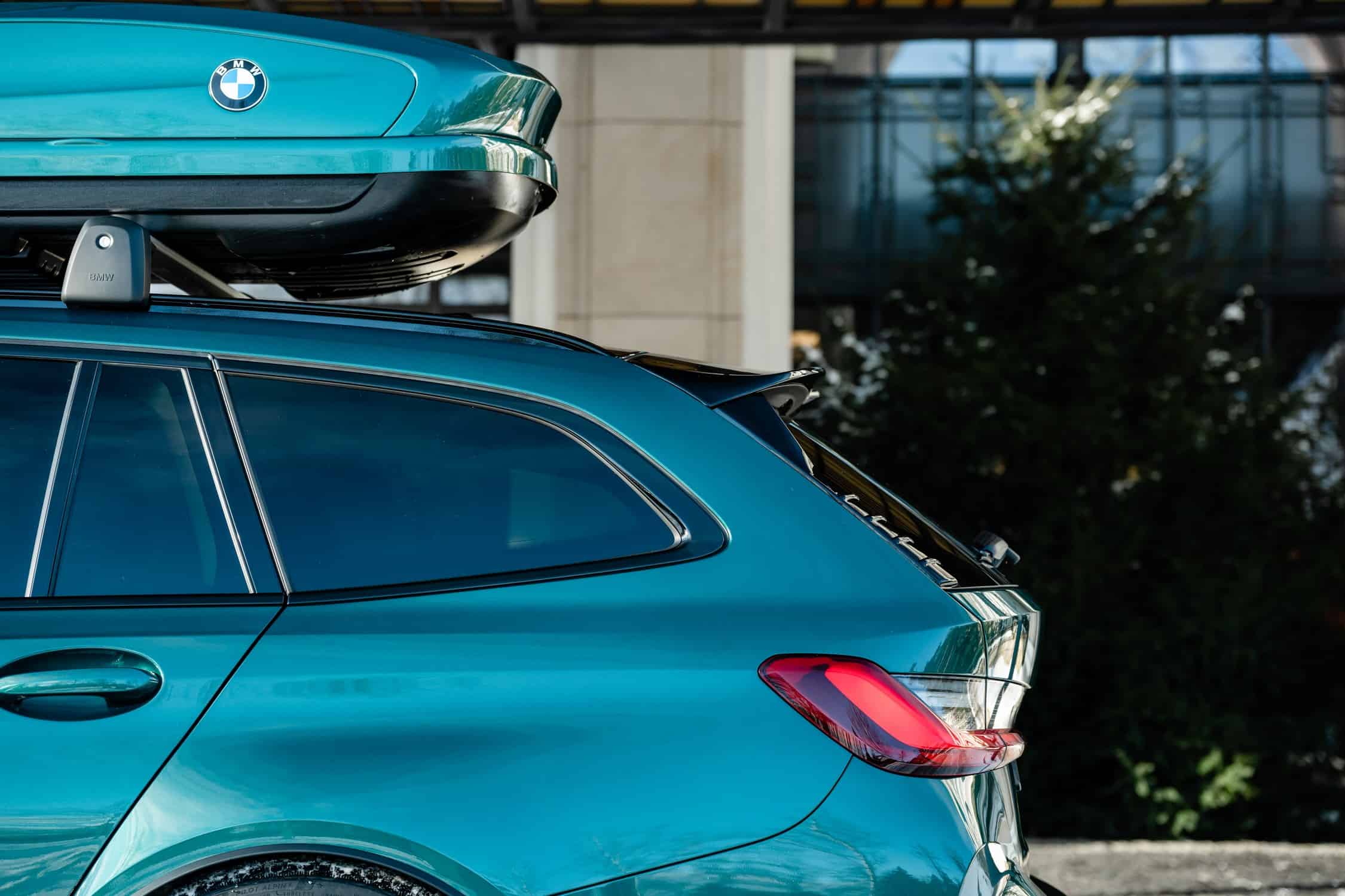 While there’s no info to go along with these stunning images, it appears the fast wagon is wearing an Individual paint, namely Lagoon Green. The M3 Touring comes with a color-matching roof box for those who need extra cargo capacity beyond the 500 liters (17.6 cubic feet) offered by the practical estate. Fold the rear seats and the volume expands to 1,510 liters (53.3 cubic feet), which is more than enough for those two M-branded suitcases.