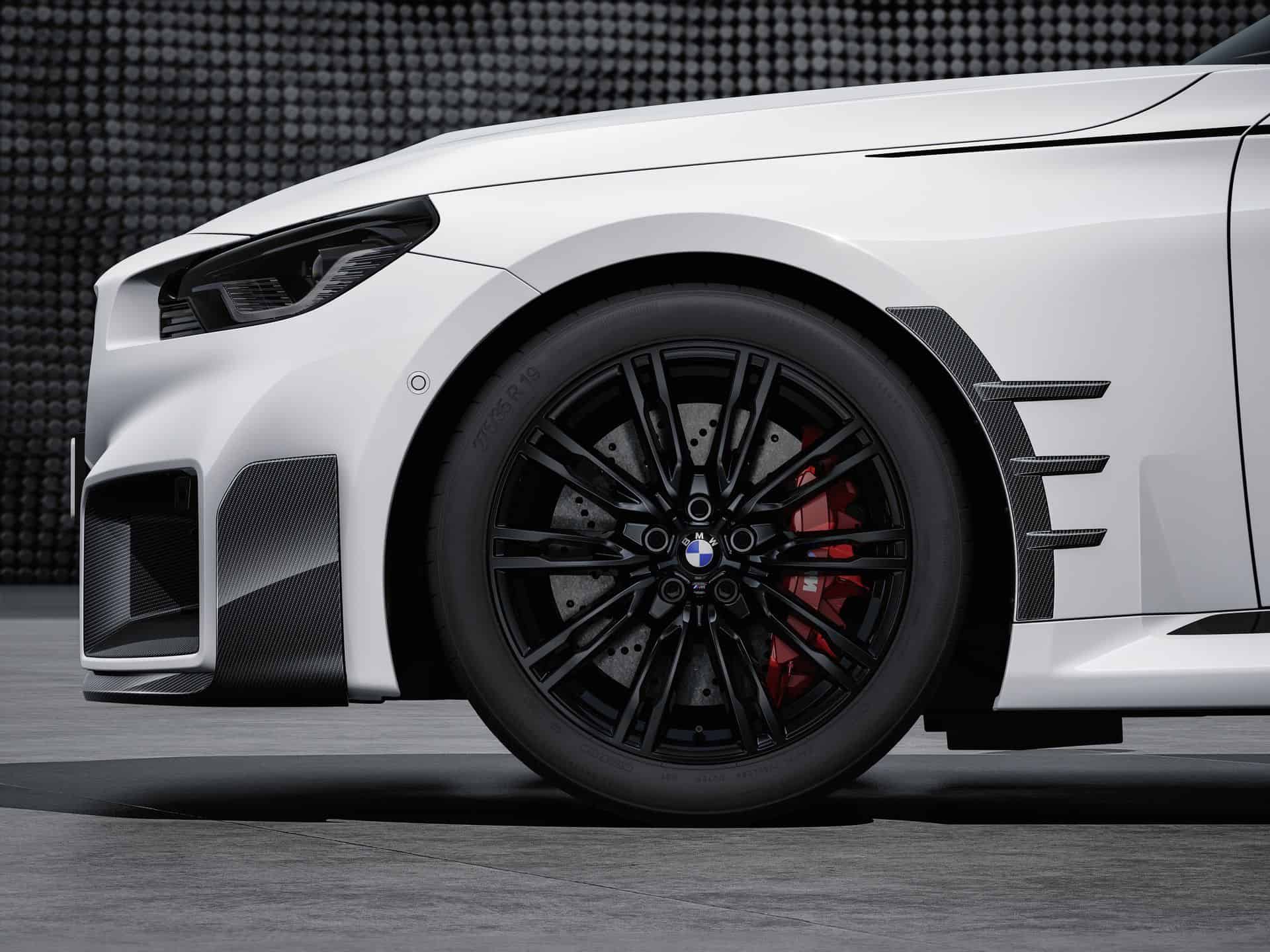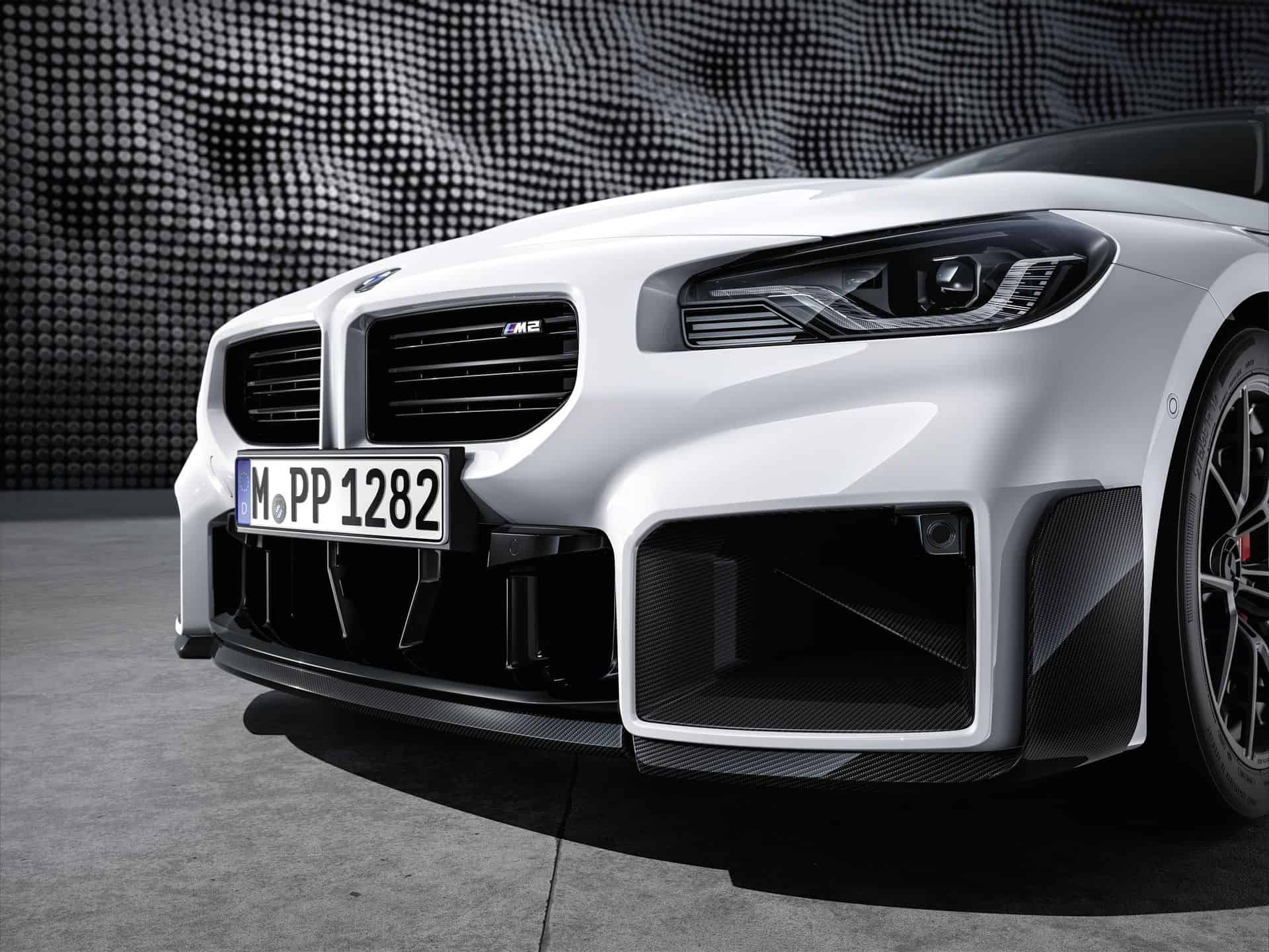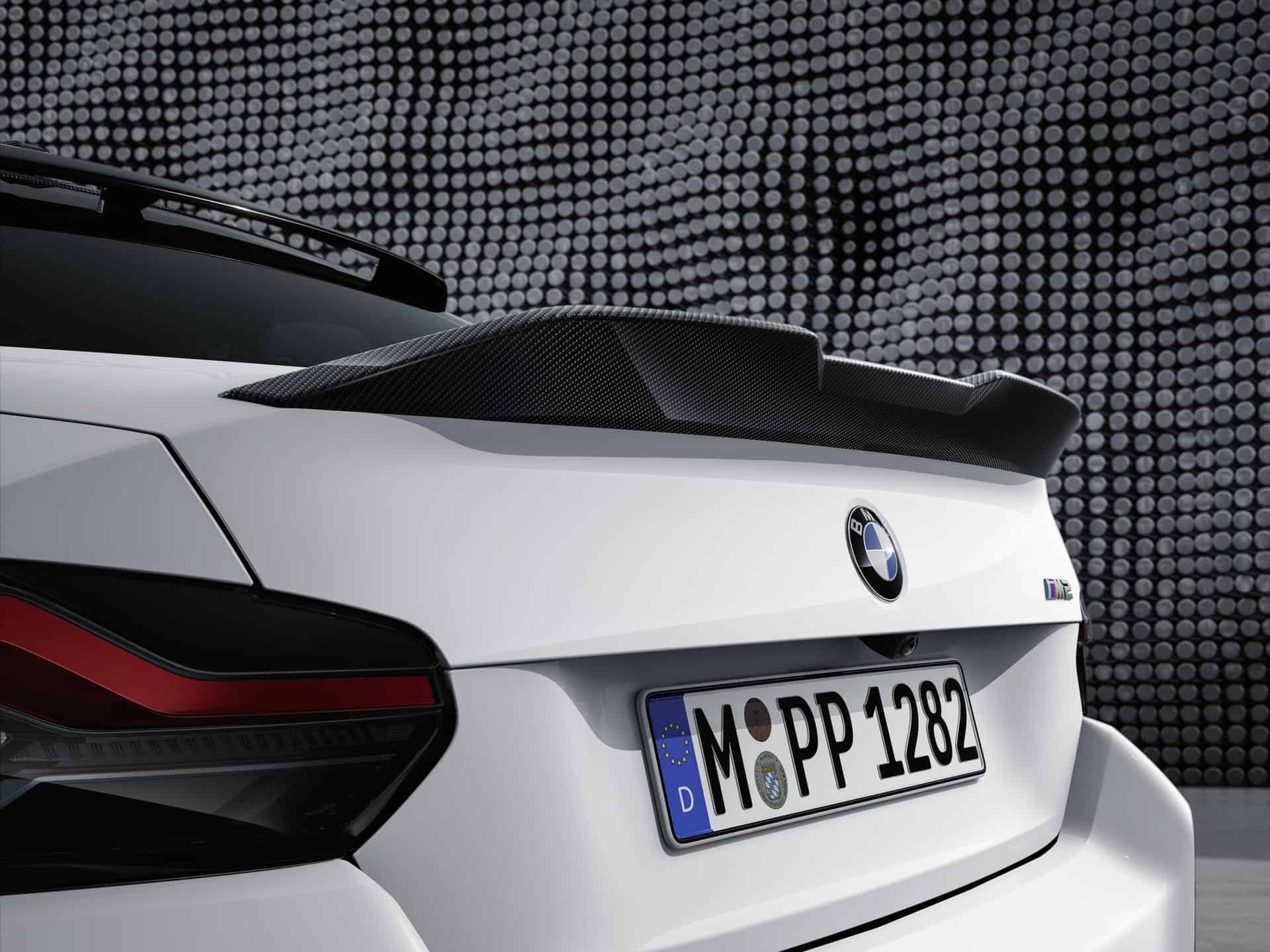 The complete catalog of MPP for the new M2 includes everything from a roof-edge spoiler and a titanium silencer to the carbon fiber steering wheel and even M-branded door locking pins.