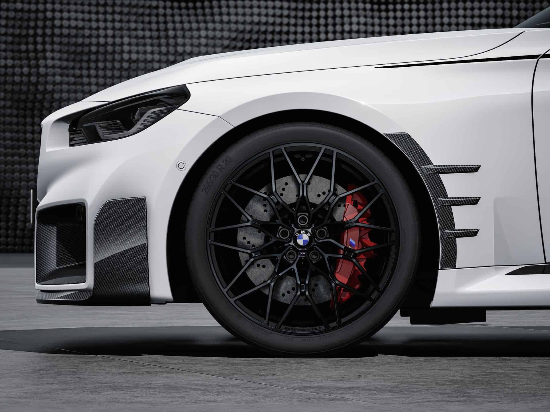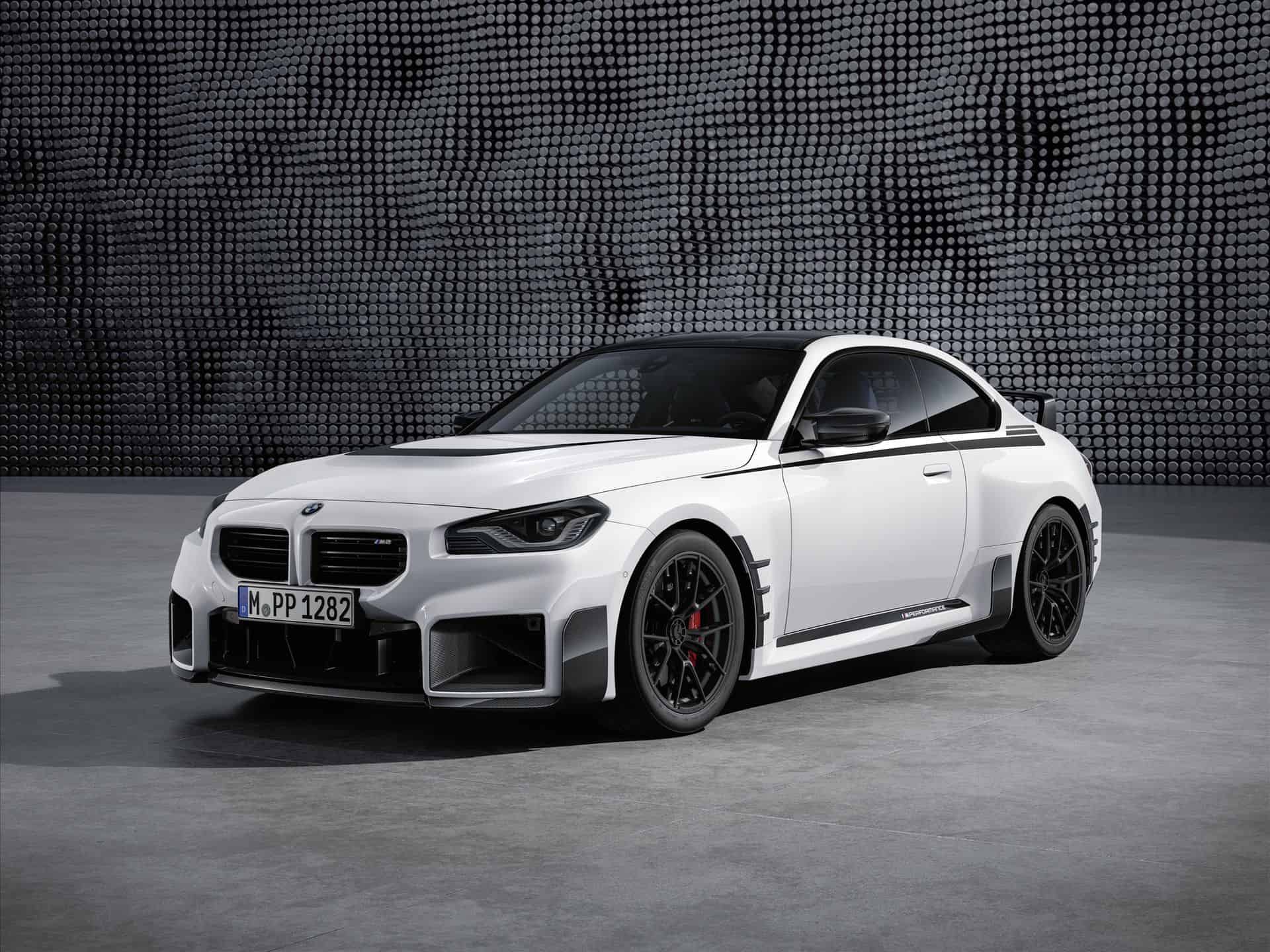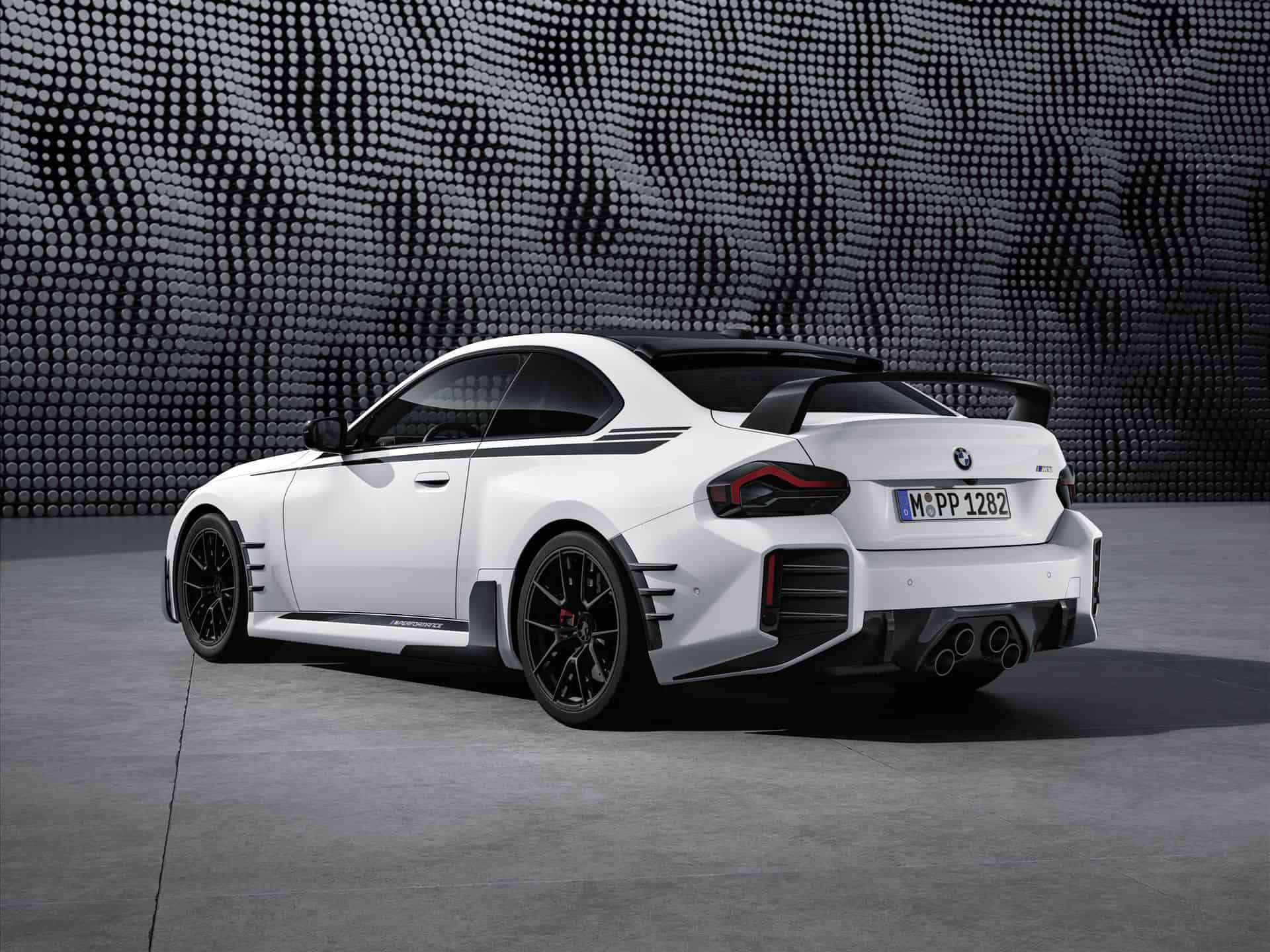 The complete catalog of MPP for the new M2 includes everything from a roof-edge spoiler and a titanium silencer to the carbon fiber steering wheel and even M-branded door locking pins.