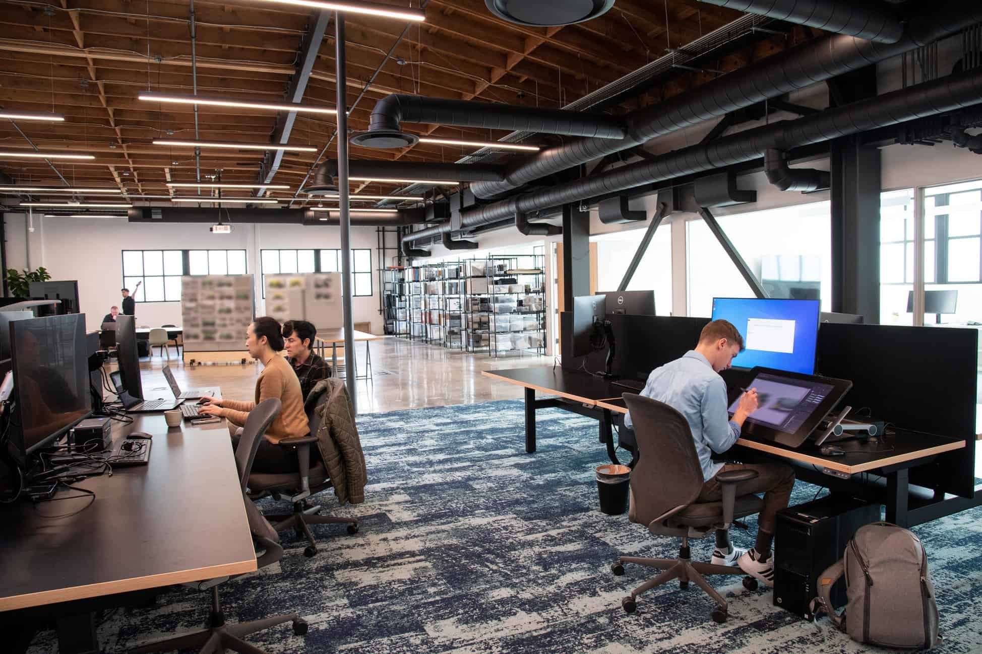 Due to the pandemic, the studio has fewer desks than designers, as some work from home, and others come in to collaborate with their colleagues on certain days. The new studio also features a “holodeck,” a large, black conference room with walls made of a massive display and several 4K video cameras. The holodeck enables virtual meetings and collaborations on designs with Munich and Shanghai Design Studios. Designers can even wear virtual goggles to see and interact with car designs in 3D.