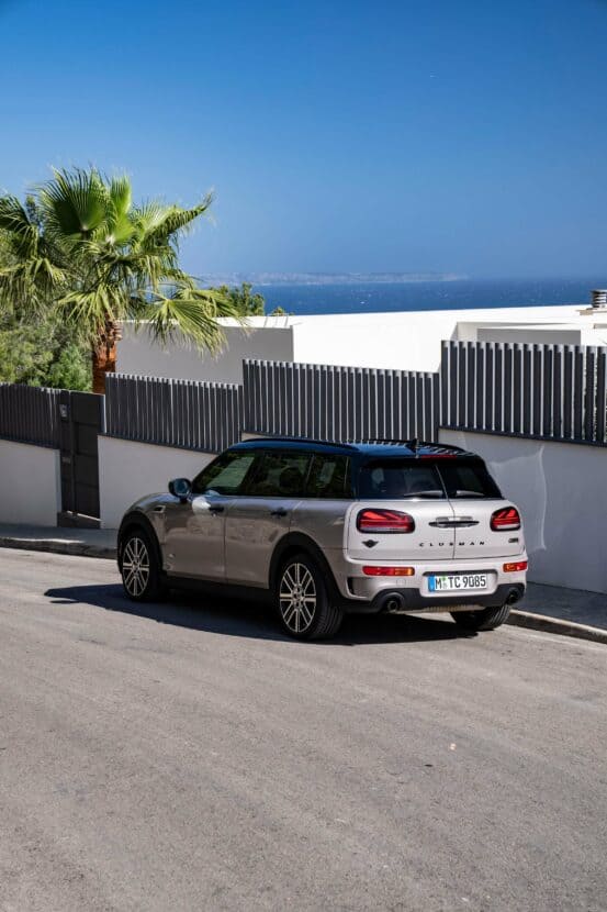 The MINI Cooper S Clubman ALL4 name remains as complicated as before, and at 4,275 millimeters (168.3 inches) long, it’s hardly a mini. The all-wheel drive wagon/hatchback mashup made the trip to Spain, flaunting its unusual six-door body style in a photo shoot in Mallorca. It remains a niche model in a sea of crossovers of all shapes and sizes, facing internal competition from the Countryman and the 2023 BMW X1 to a lesser extent.