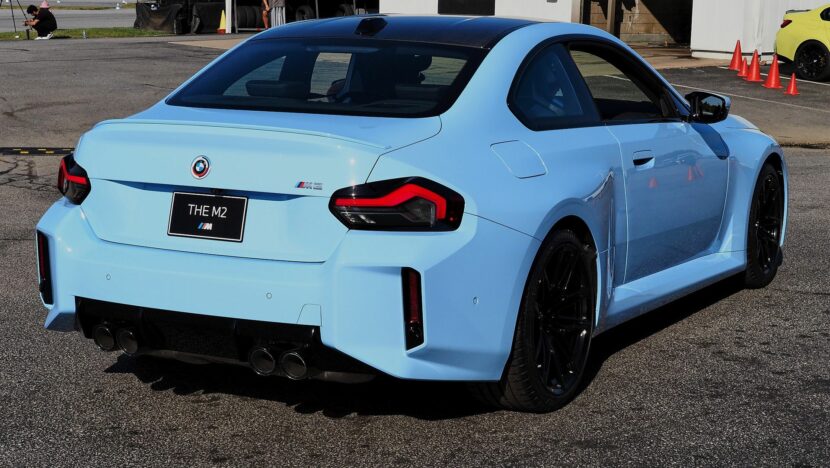 The three-time Emmy nominee is seen signing his name on the tarmac by burning rubber from the 285/30 ZR20 rear tires of the 2023 BMW M2. At the front, the smallest M car has 275/35 ZR19 tires. All four wheels are stopped by M Compound brakes with 15-inch discs at the front axle and 14.6-inch discs at the back. For the time being, carbon-ceramic brakes are not available, but they might be added with a future M2 CS / CSL or something to that effect.