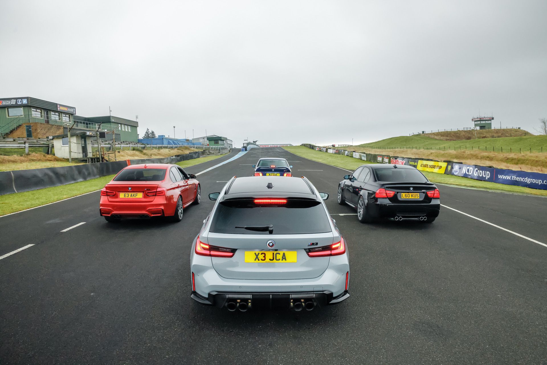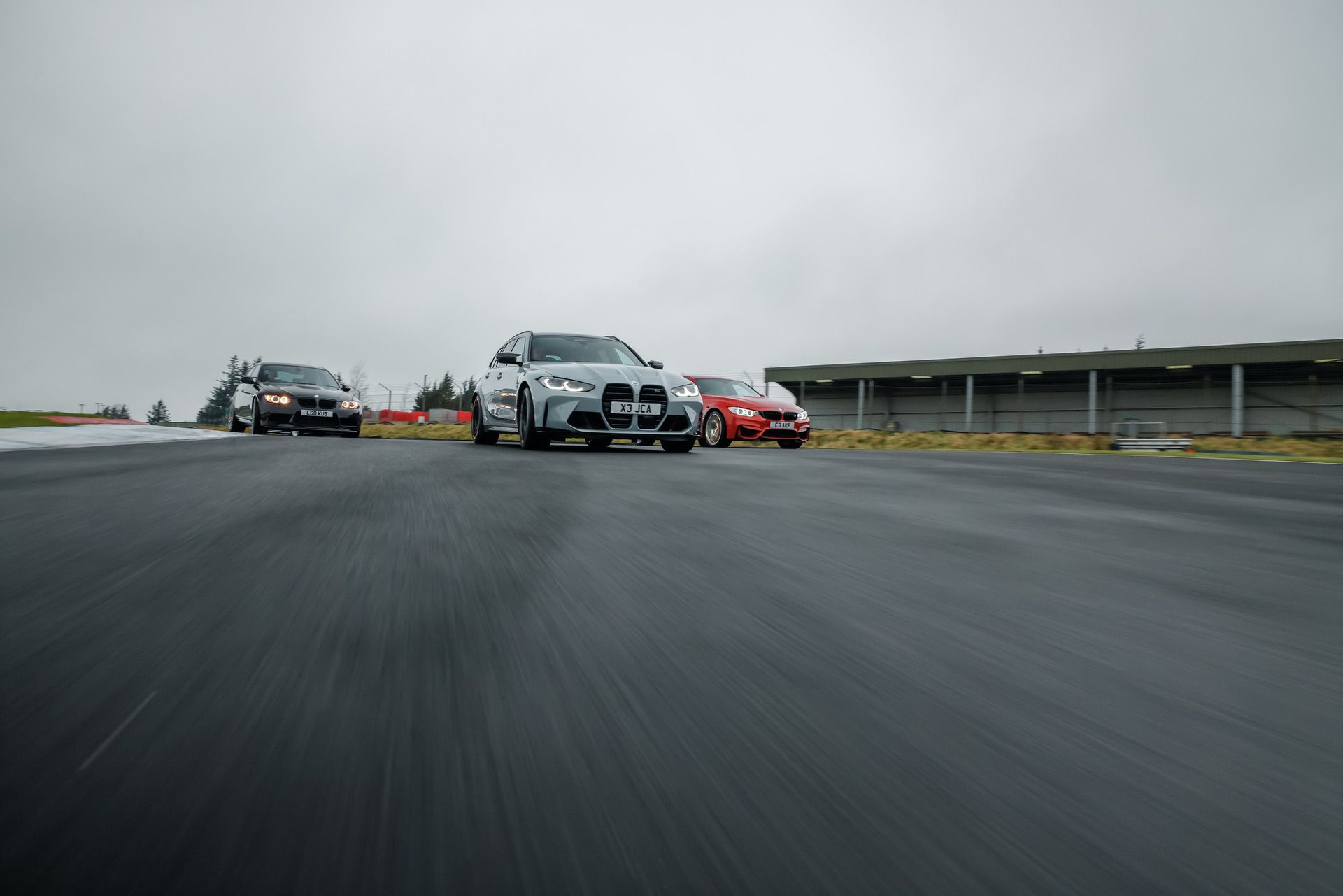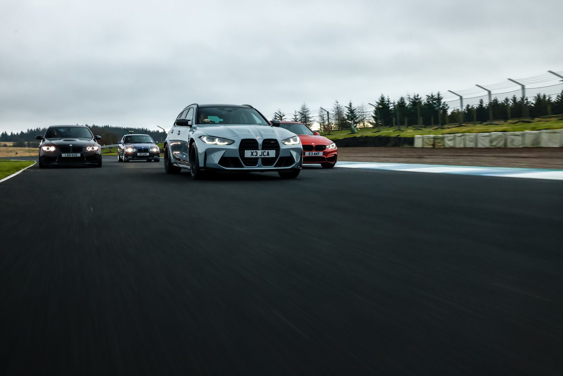 The BMW M3 Touring is the first of its kind. After decades of fans asking for an M3 wagon, the Bavarians finally delivered. However, it isn’t the first M3 to be usable as a daily driver. Over the course of the M3’s six generations, there have been four sedans, three of which were gathered at the Knockhill Race Circuit in Scotland, alongside the new M3 Touring, to show the lineage of such semi-practical sports cars.