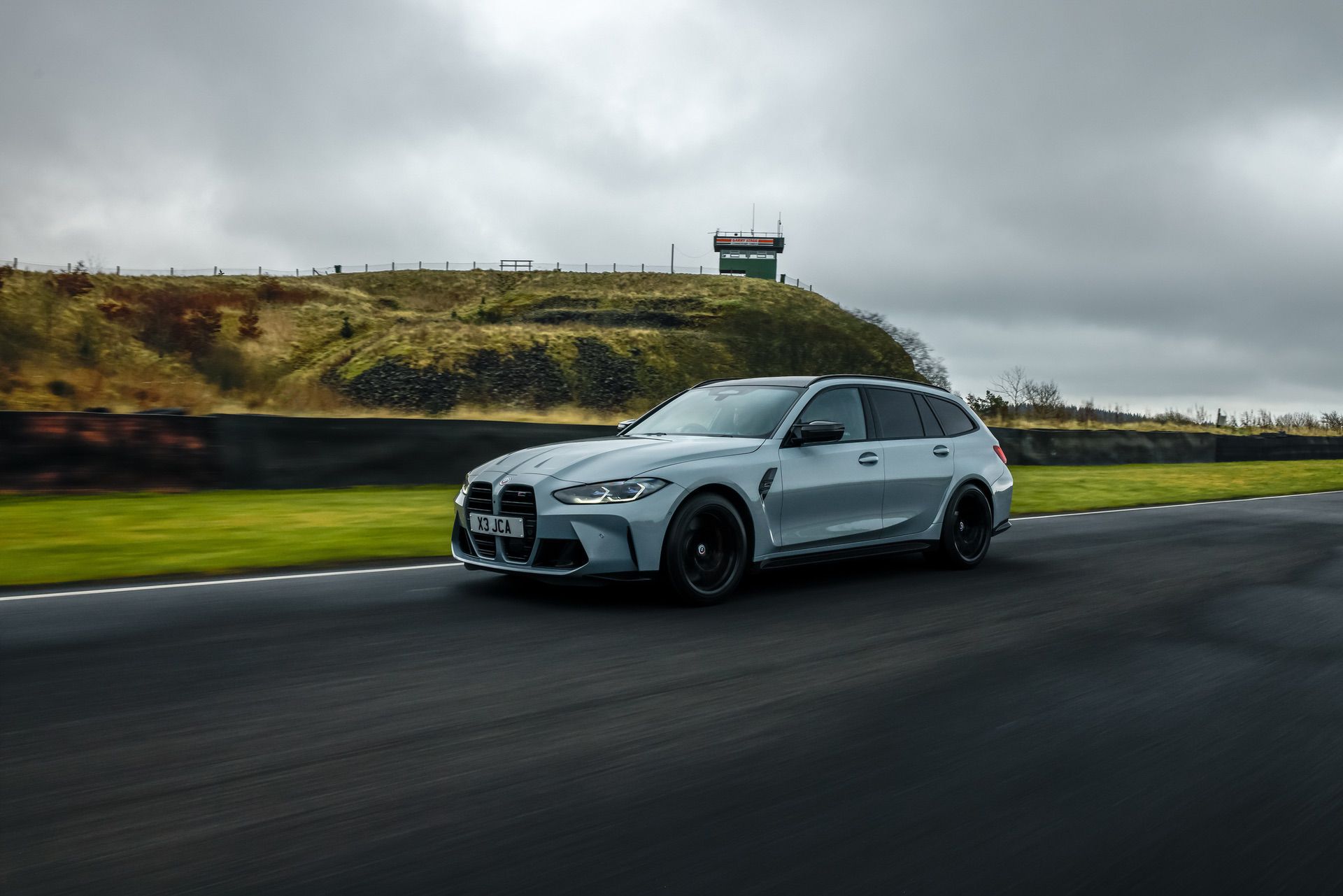 Finally, we’re onto the M3 Touring. The new G81-gen BMW M3 Touring is the fist M3 wagon and also one of the best driving M3s of all time. Its styling is a bit controversial but its driving dynamics are anything but. All of the aforementioned BMW M3 models were gathered at Knockhill for a bit of a family reunion and photo shoot. The colors of each car are as follows: Brooklyn Grey (G80) BMW M3 Touring, Sakhir Orange (F80), Jerez Black (E90), and Estoril Blue (E36).