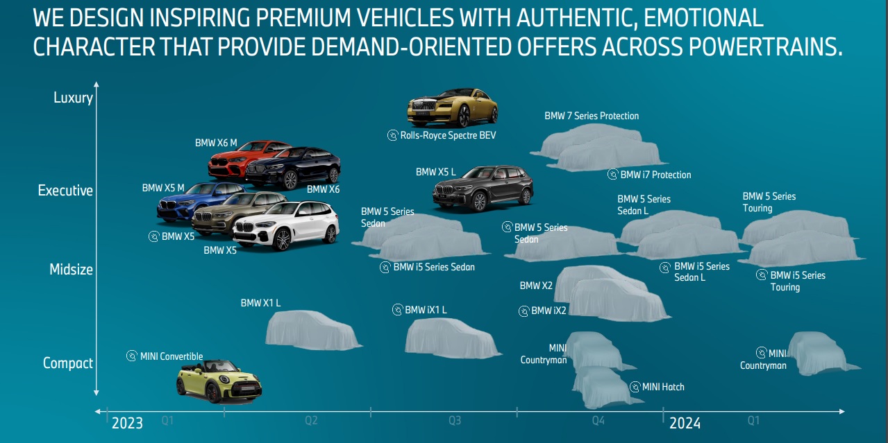 In the following quarter, we’ll get to see the eighth-generation 5 Series Sedan with its i5 electric sibling, plus the iX1 L serving as a stretched version of BMW’s smallest EV. Q4 2023 will be particularly busy since the 7 Series Protection and i7 Protection will debut as the company’s armored sedans with ICE and EV power. Another duo earmarked for the final quarter of the year is the second-generation X2 joined by an iX2.