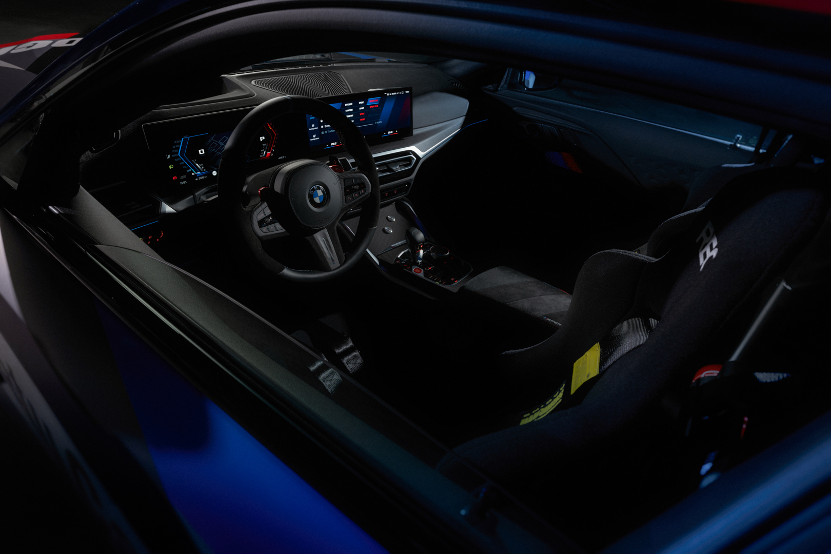 To keep it, well, safe on track, it has a roll bar, Recaro racing bucket seats with six-point racing harnesses, a fire extinguisher, the cool roof-mounted light bar, and some lights up front, too. It also has some M Performance gear, such as the upgraded exhaust, carbon fiber exterior accents, a rear wing, a carbon diffuser, and a cool safety car livery.