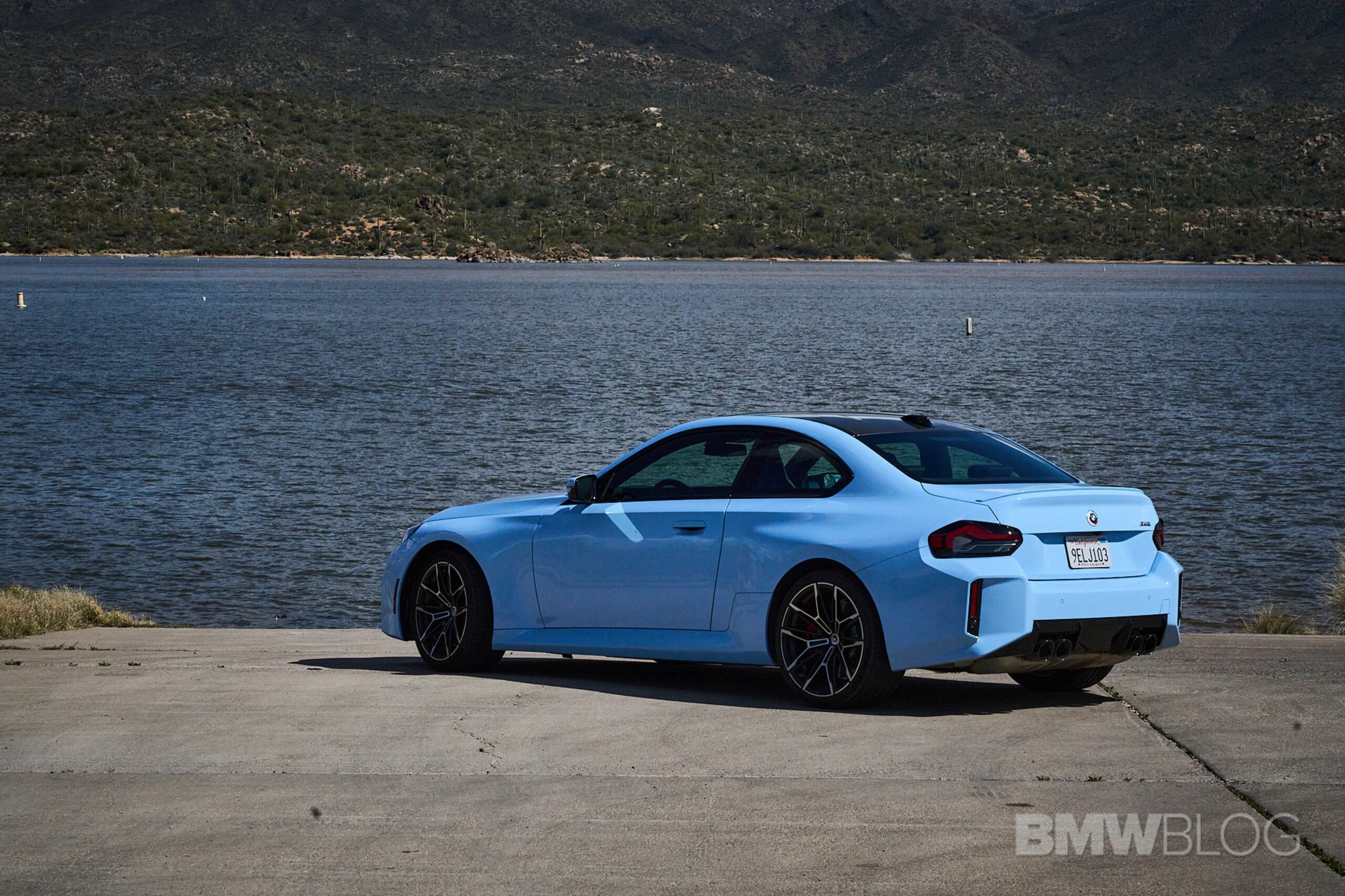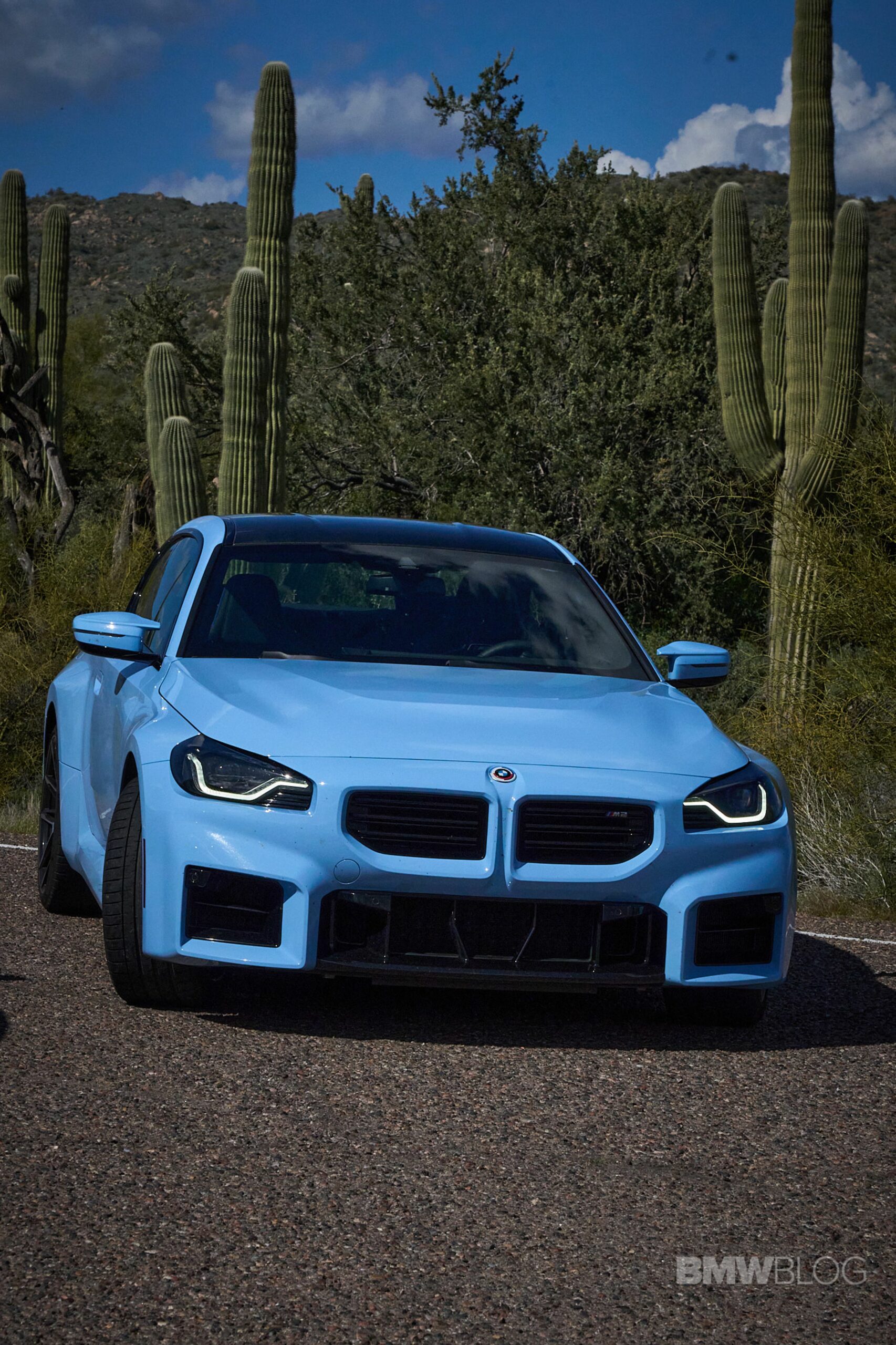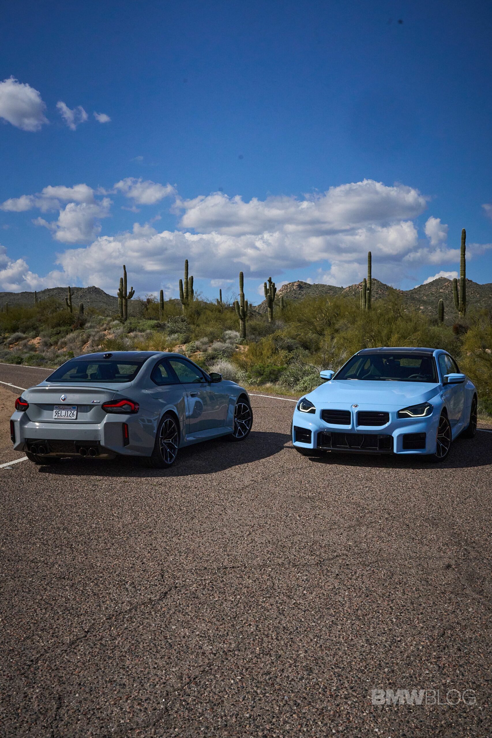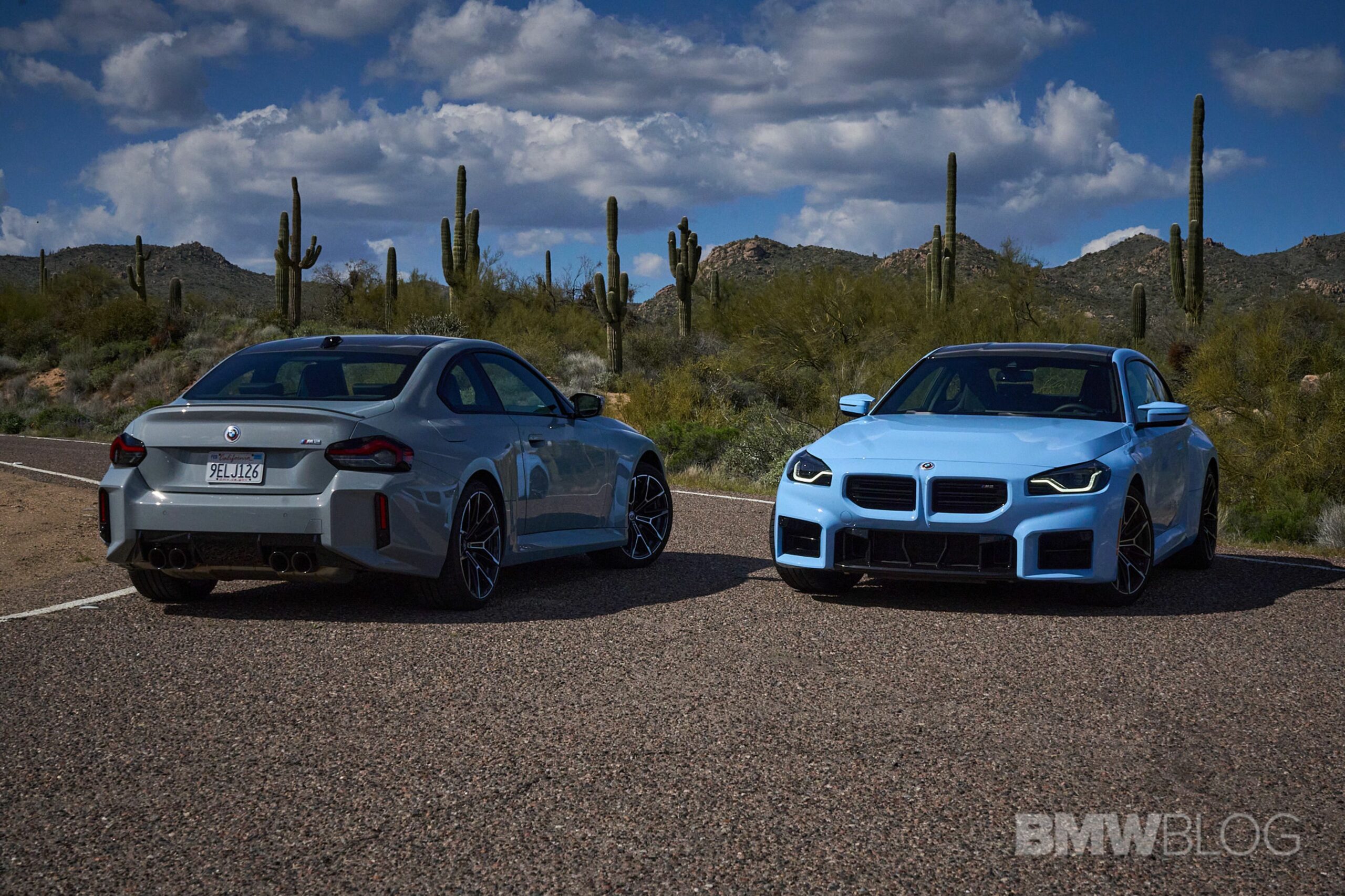 In the meantime, we spent quality time shooting an M2 duo in the familiar Brooklyn Grey shared with other BMWs and the Zandvoort Blue exclusive to the high-performance coupe. Both had the anniversary roundels marking 50 years of M and shared the two-tone (Style 930M) wheels measuring 19 inches at the front and 20 inches at the rear.