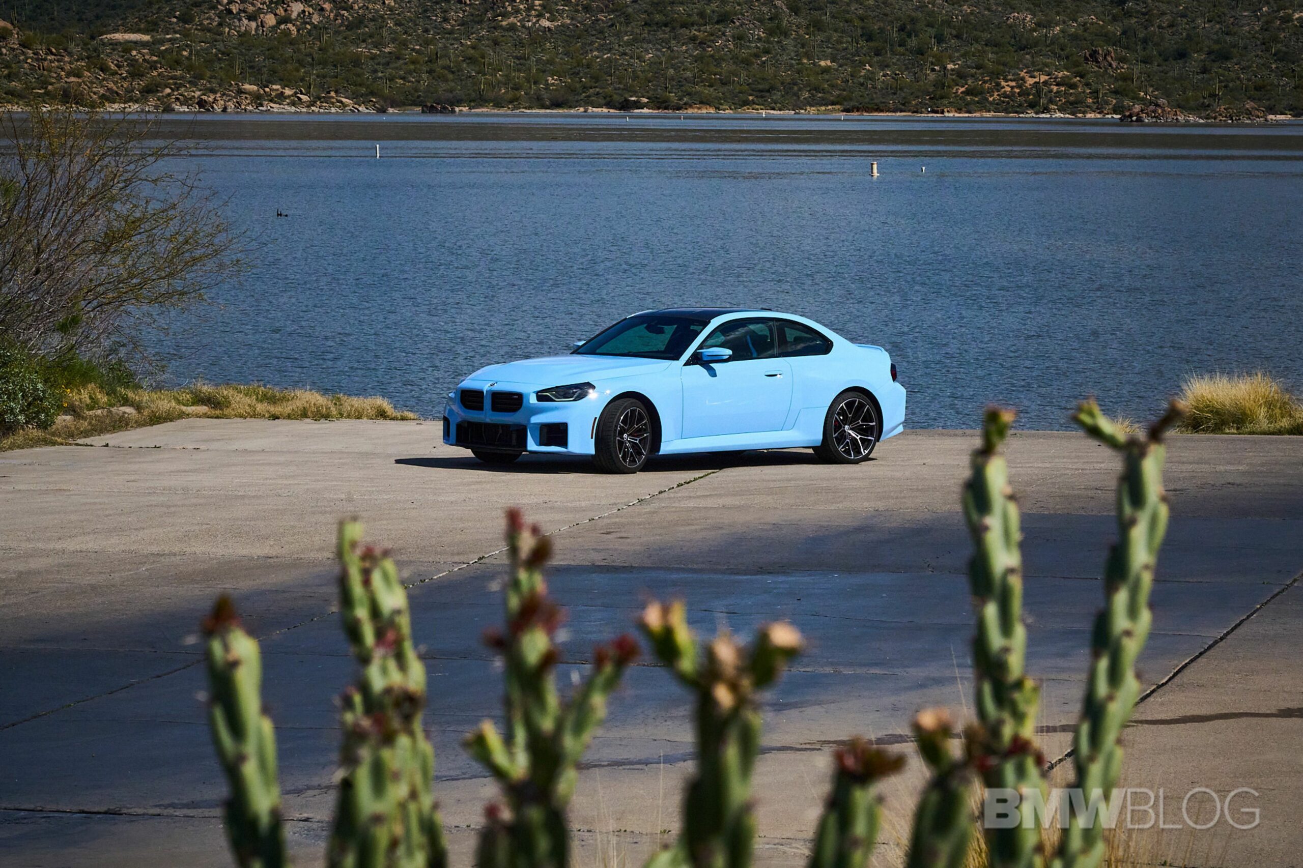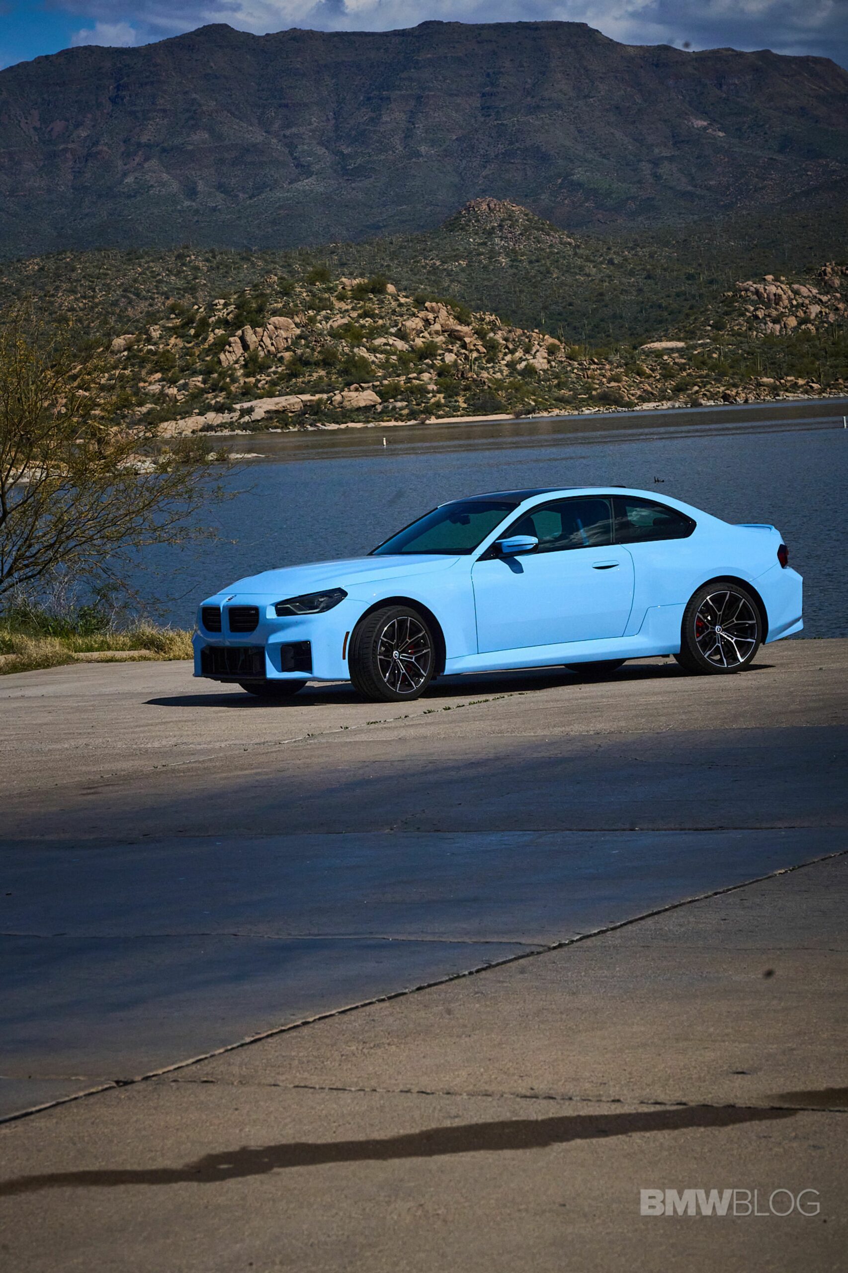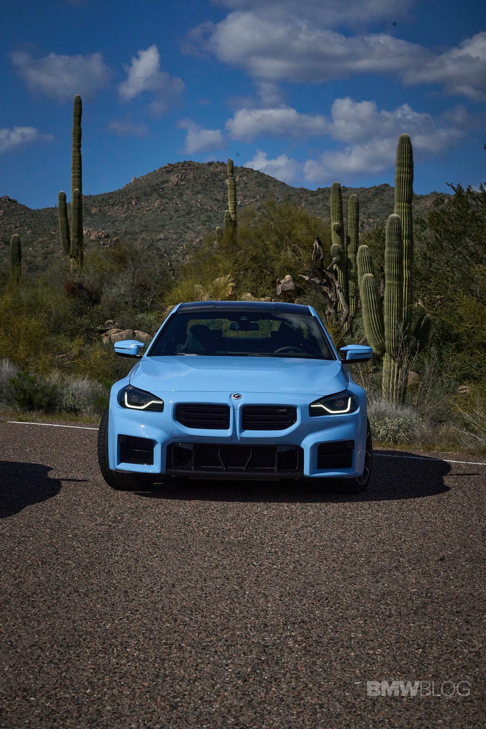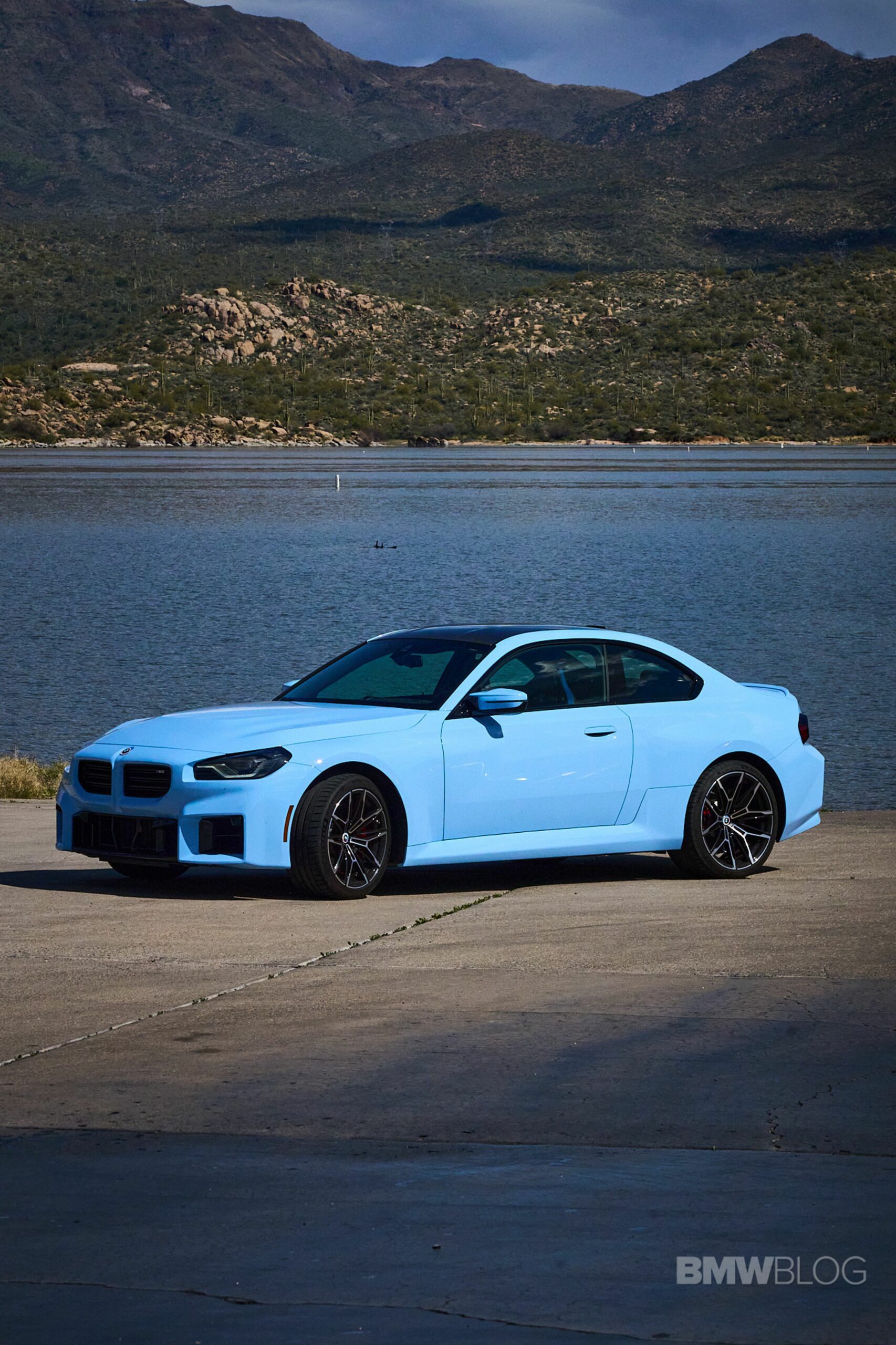 In the meantime, we spent quality time shooting an M2 duo in the familiar Brooklyn Grey shared with other BMWs and the Zandvoort Blue exclusive to the high-performance coupe. Both had the anniversary roundels marking 50 years of M and shared the two-tone (Style 930M) wheels measuring 19 inches at the front and 20 inches at the rear.