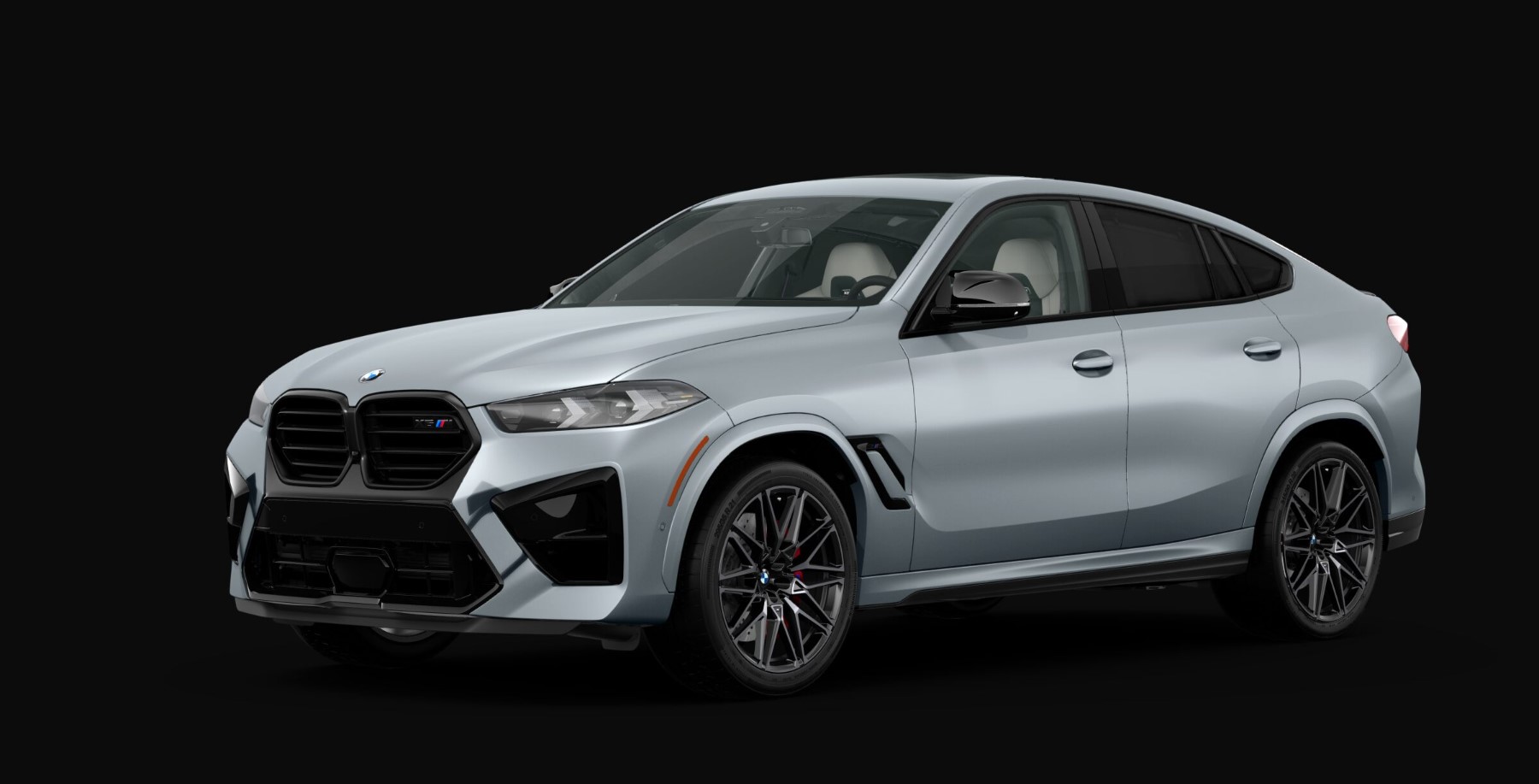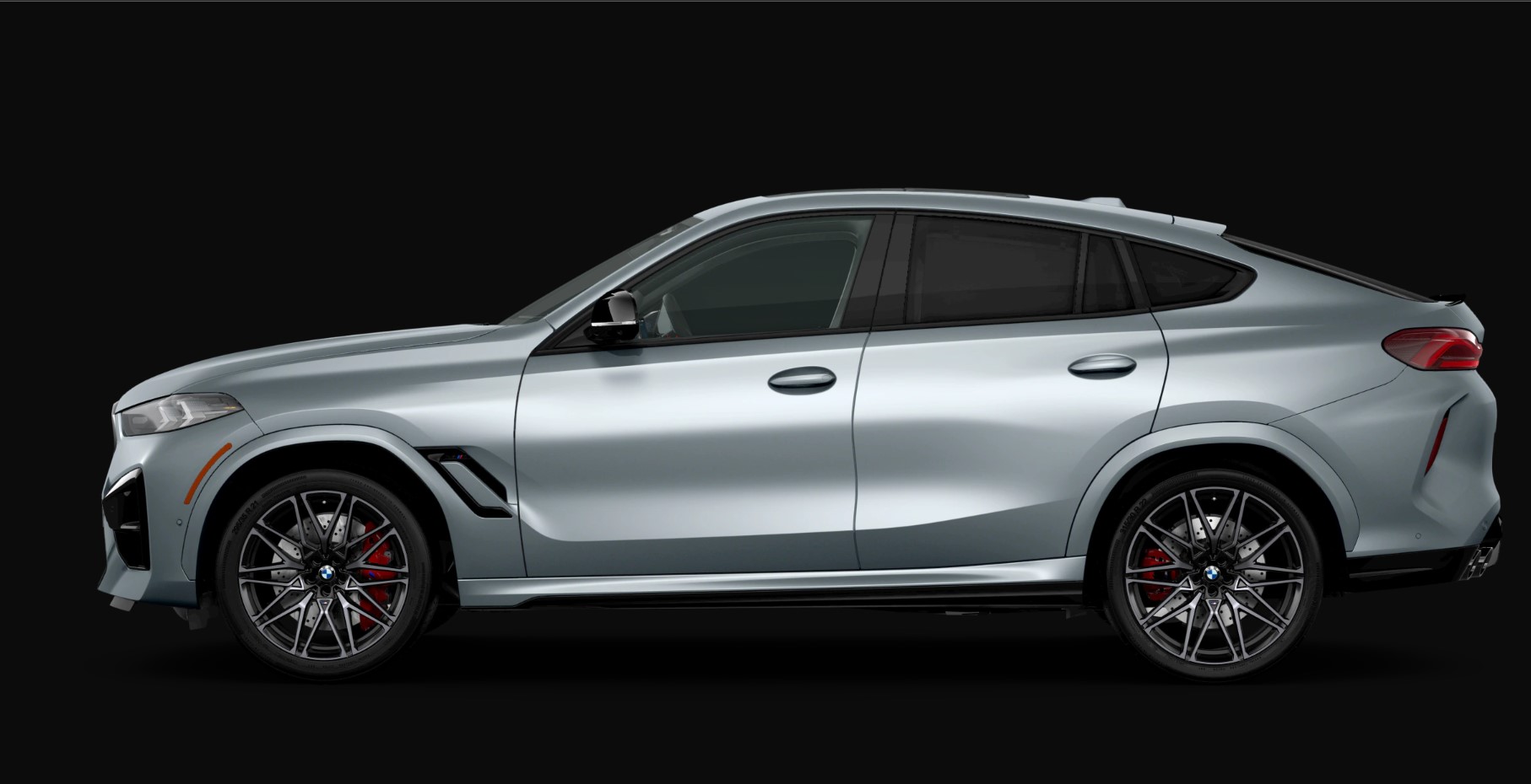 Pictured here is the fully loaded X6 M, which going forward is being sold exclusively as a Competition model. Without options, it begins from $127,200, and adding the Frozen Pure Grey Metallic paint from the Individual catalog will set you back an extra $3,600. There are four wheel designs available at no additional cost, with all featuring 21-inch front and 22-inch rear alloys. One of the available sets is finished in black while the remaining three have a two-tone look.