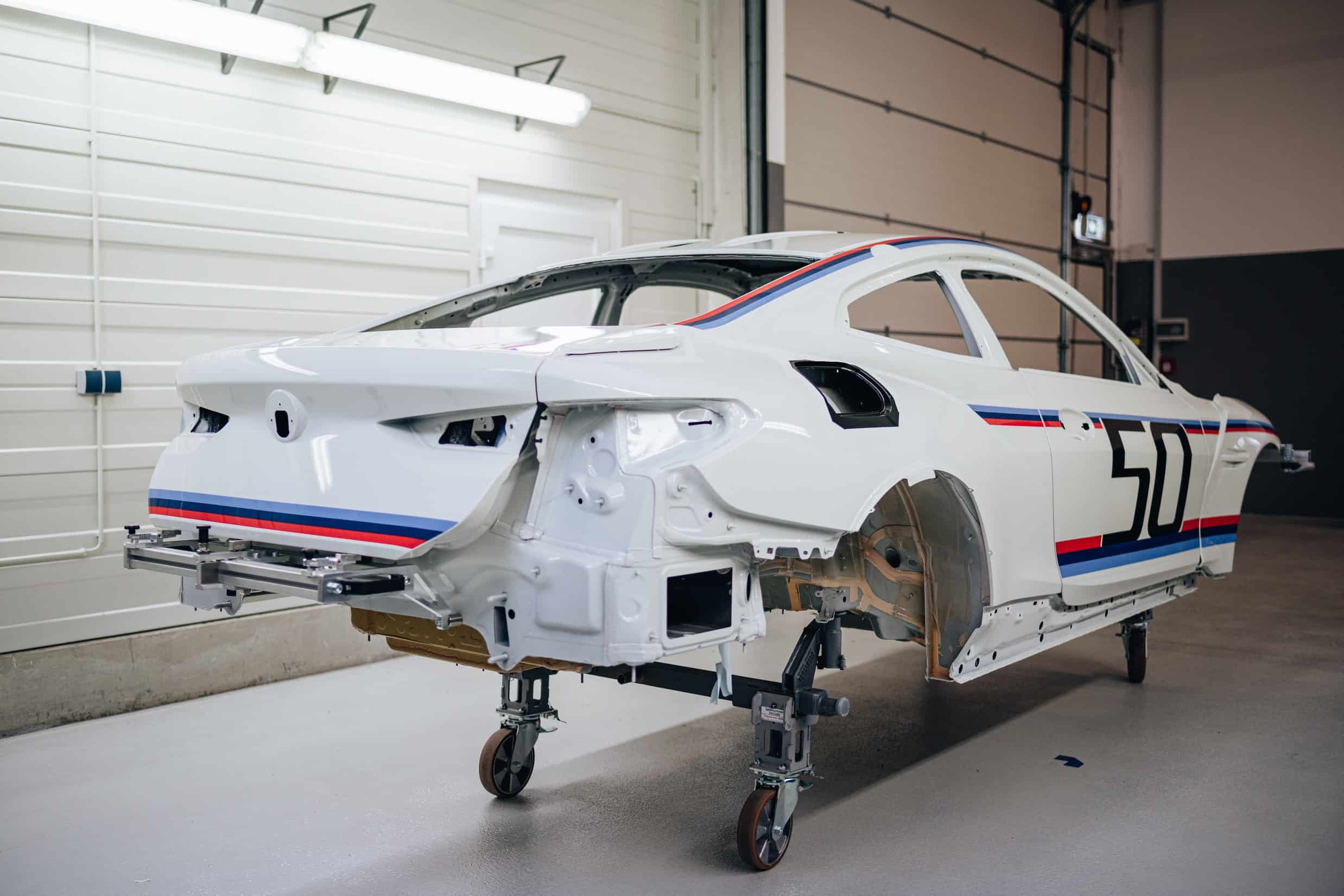 BMW has gone to great lengths to explain what makes the 3.0 CSL more special compared to the “regular” M4 CSL. Aside from the coach-built body, the exclusive coupe has a bit more power, a manual gearbox, and manually applied M colors on its Alpine White body. It takes almost two weeks to assemble a single car as each goes through eight major assembly cycles before a final inspection process and a test drive at the adjacent track. The vehicle is produced at a dedicated workshop outside the Dingolfing Plant.