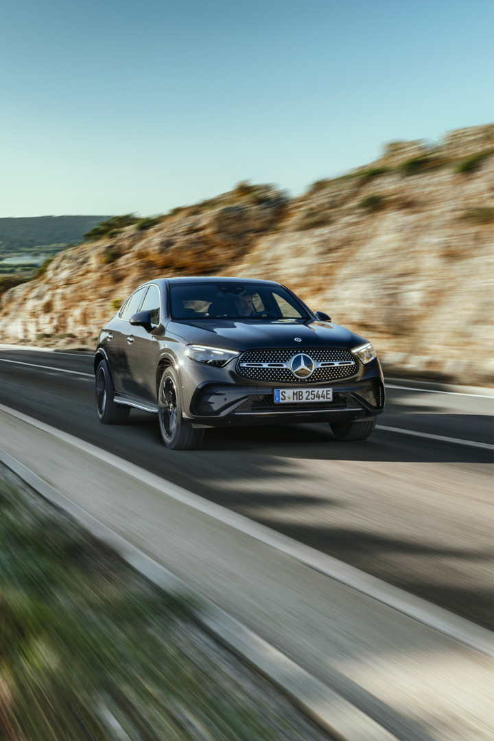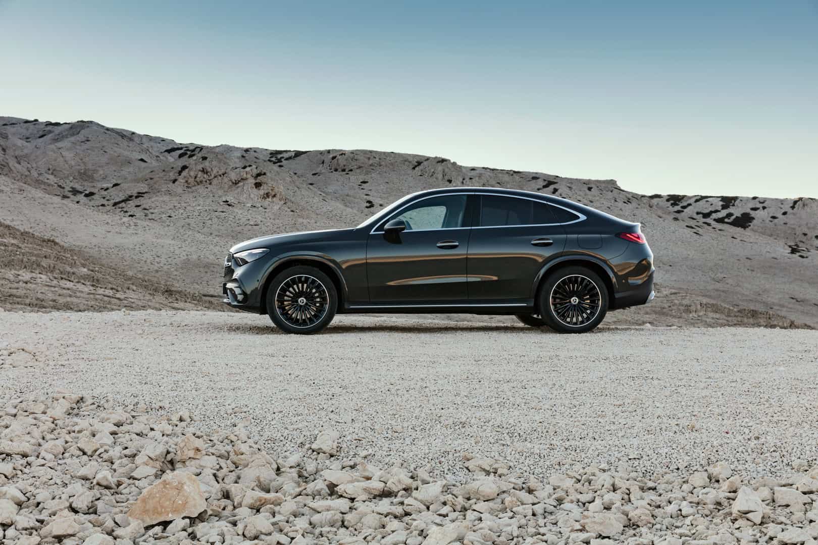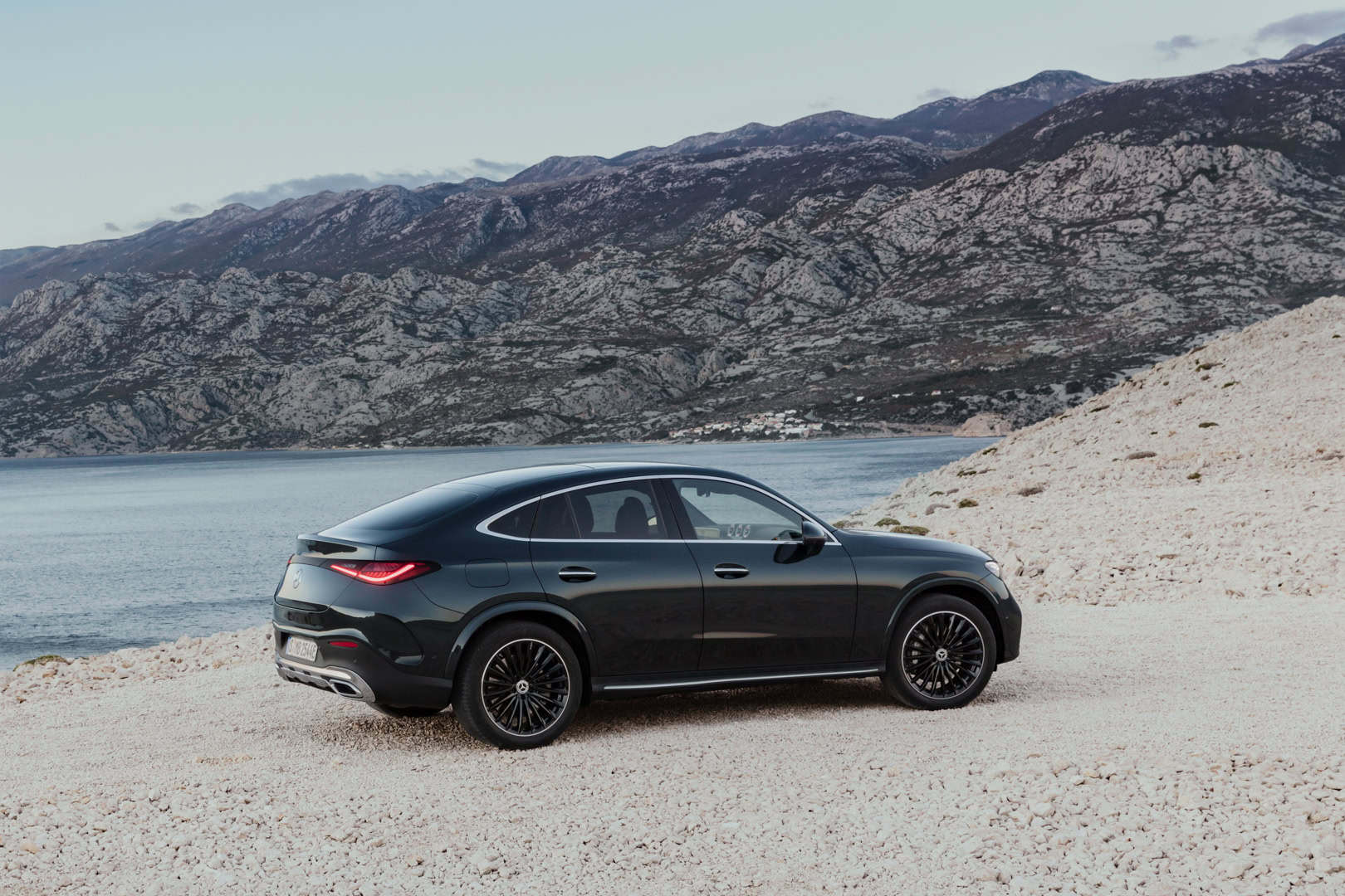 For now, only one engine is available in the U.S.: a 2.0-liter turbocharged four-cylinder making 255 horsepower and 295 lb-ft of torque. If that sounds familiar, that’s because those are the exact same engine and power specs as the BMW X4 xDrive30i. Unlike the X4, though, the GLC Coupe’s engine gets 48-volt mild-hybrid tech. According to Mercedes, 0-60 mph happens in 6.2 seconds, which is respectable for an SUV of its size and power.
