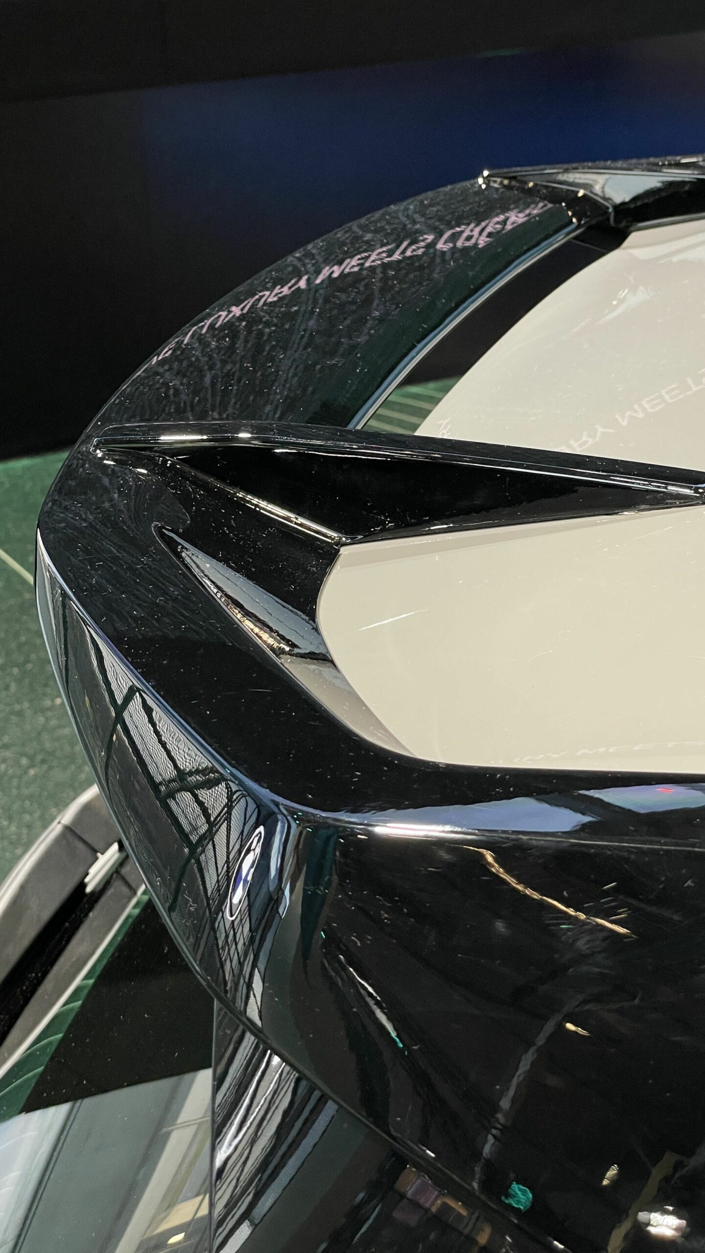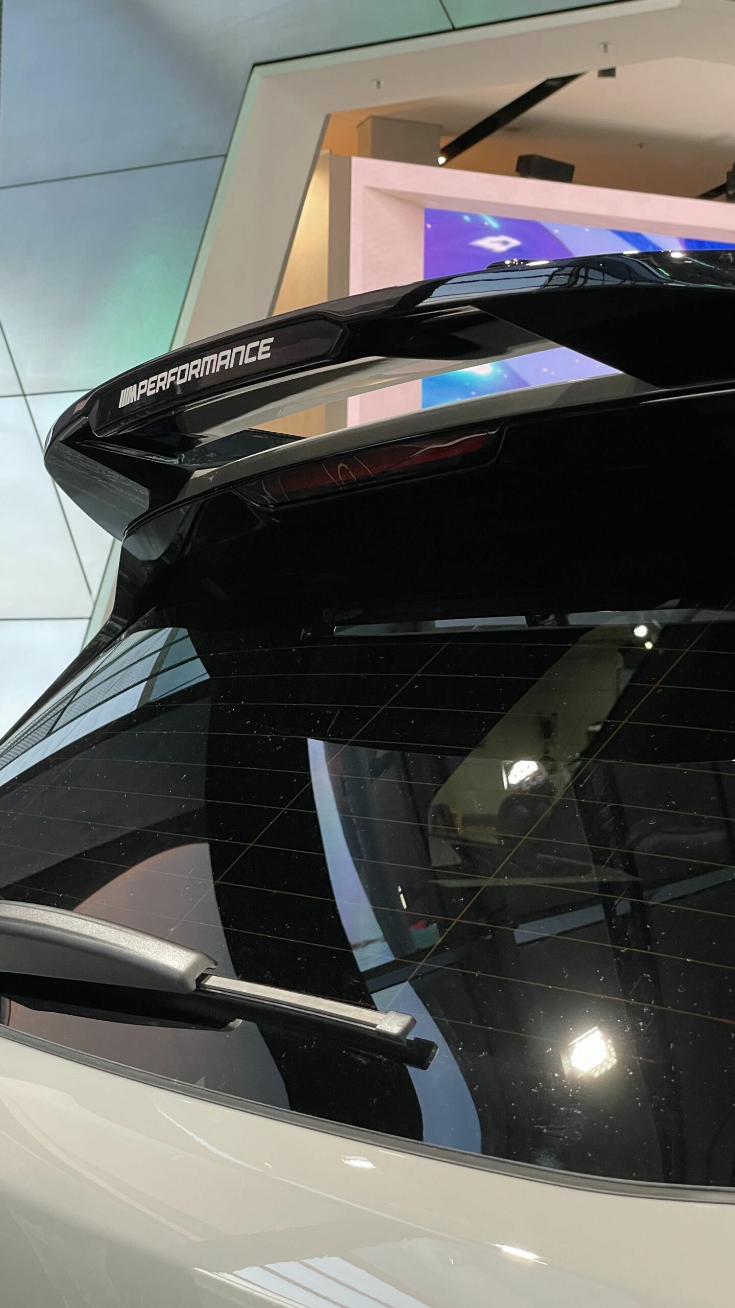 It’s easy to spot the lightweight pieces as the rectangular two-piece spoiler lip blends nicely with the carbon fiber surrounds of the air vents flanking the lower air intake. This 2024 X5 LCI also happens to have the optional Shadowline kidney grille, along with a carbon fiber rear diffuser available as an upgrade from the catalog with M Performance Parts. The roof-mounted rear spoiler in glossy black is also an MPP item.