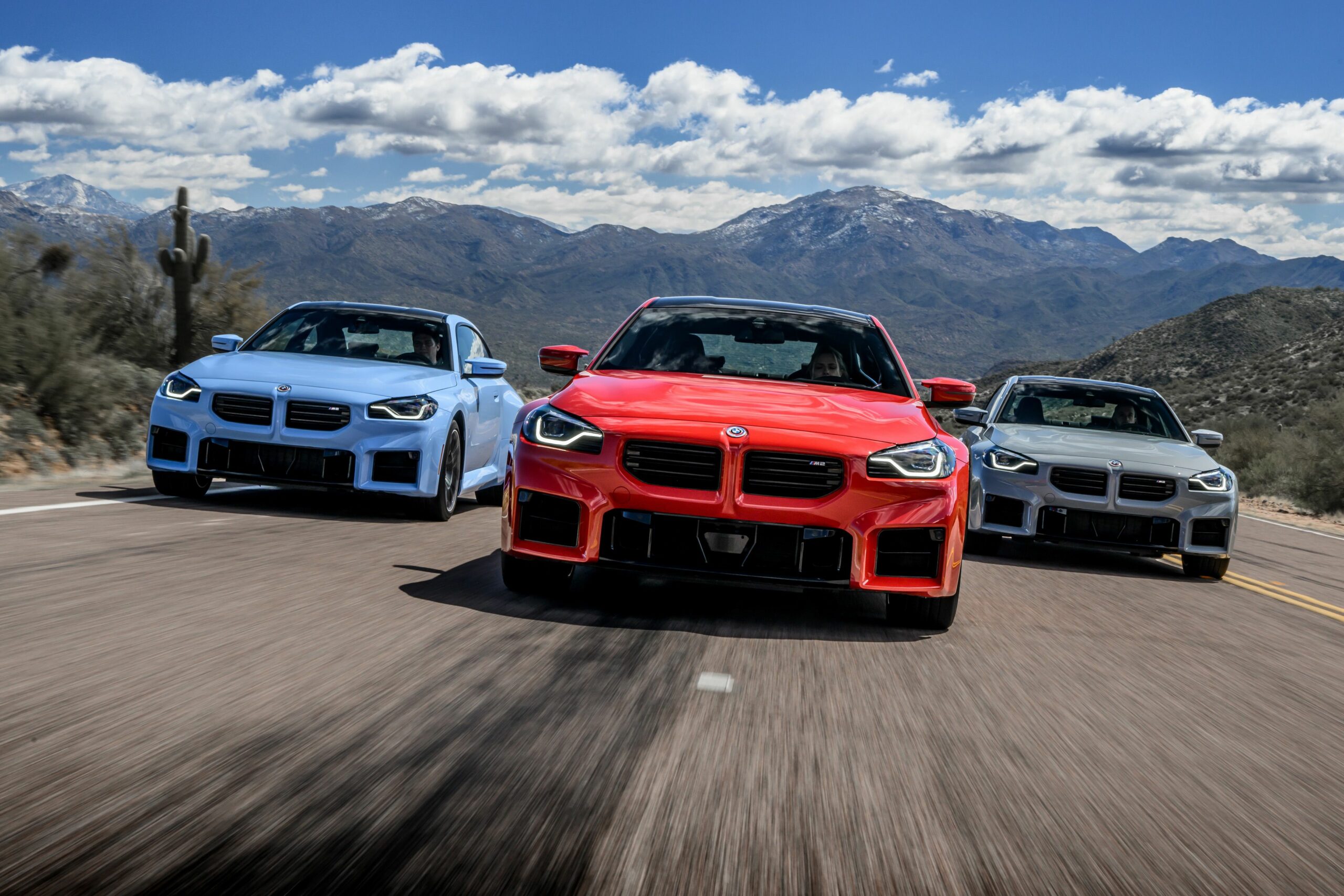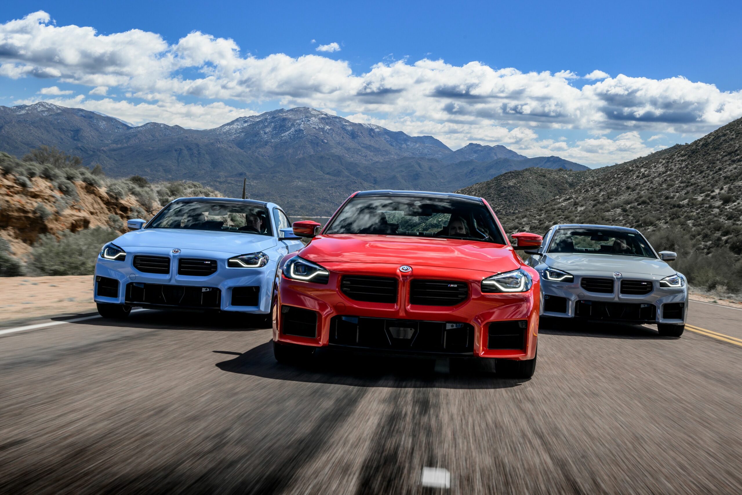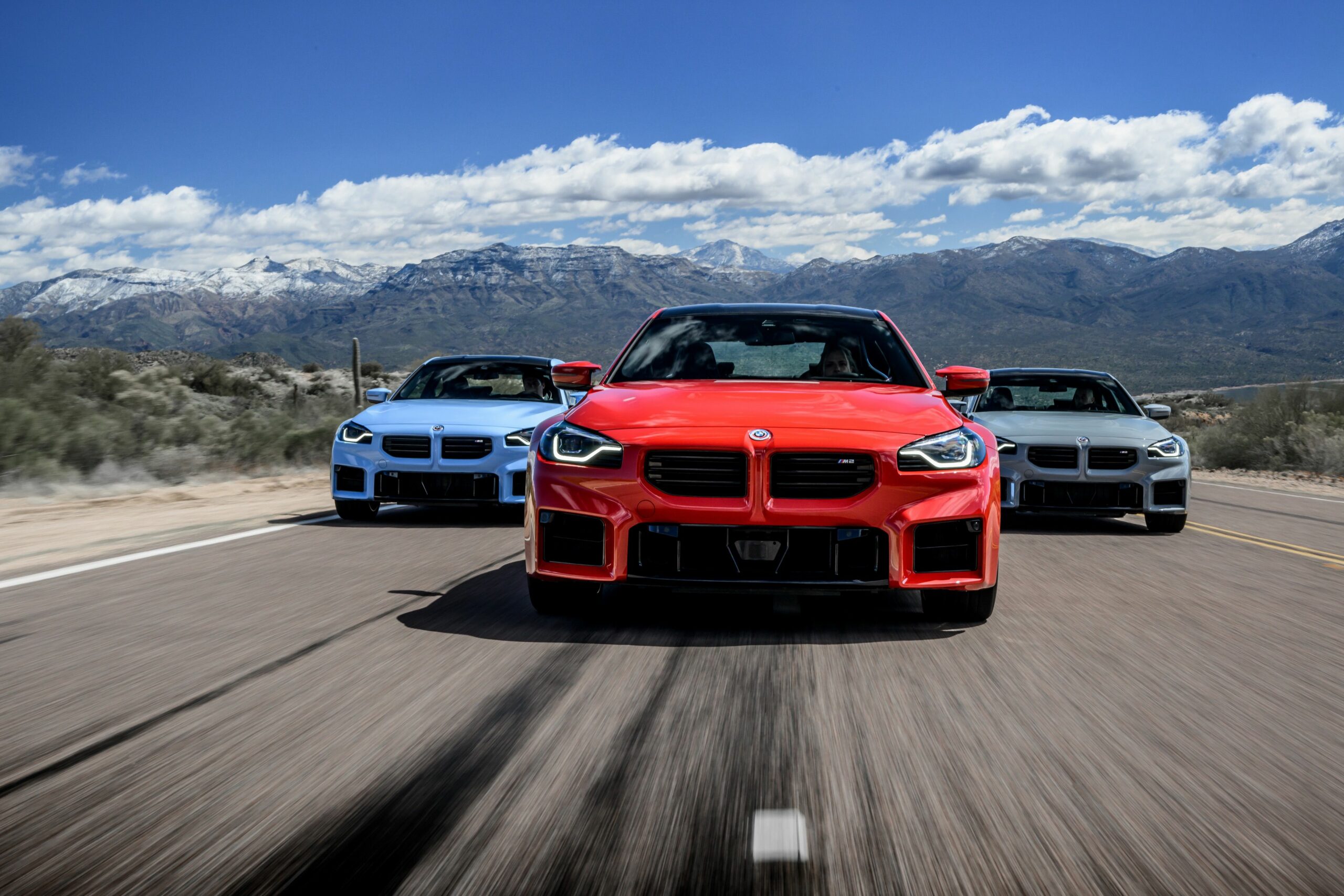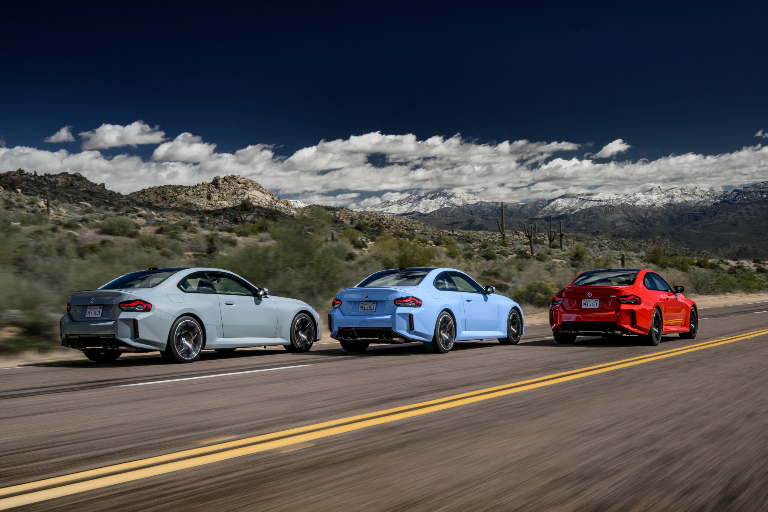 Sapphire Black and Alpine White are missing from the family portrait, but these three hues are arguably the more exciting ones available for the new M2. Sadly, the G87’s color palette is surprisingly limited at launch, with BMW promising to address the issue at some point after 2024. In the meantime, the exclusive Zandvoort Blue is flanked here by the familiar Toronto Red and Brooklyn Grey metallic colors.