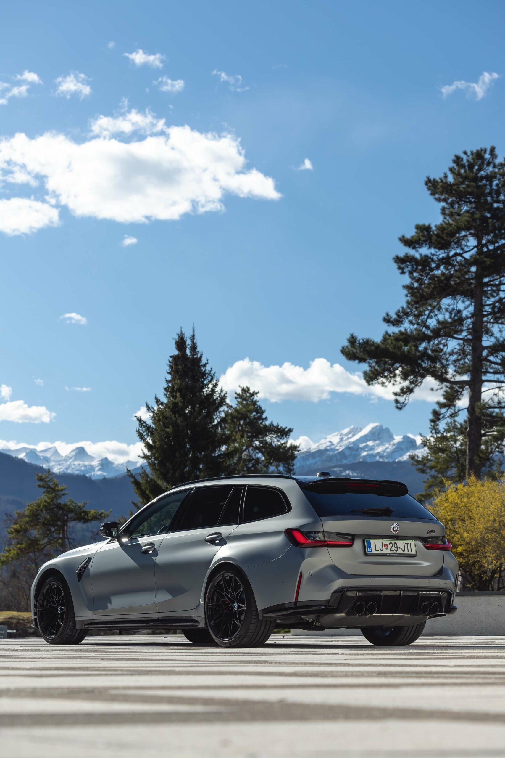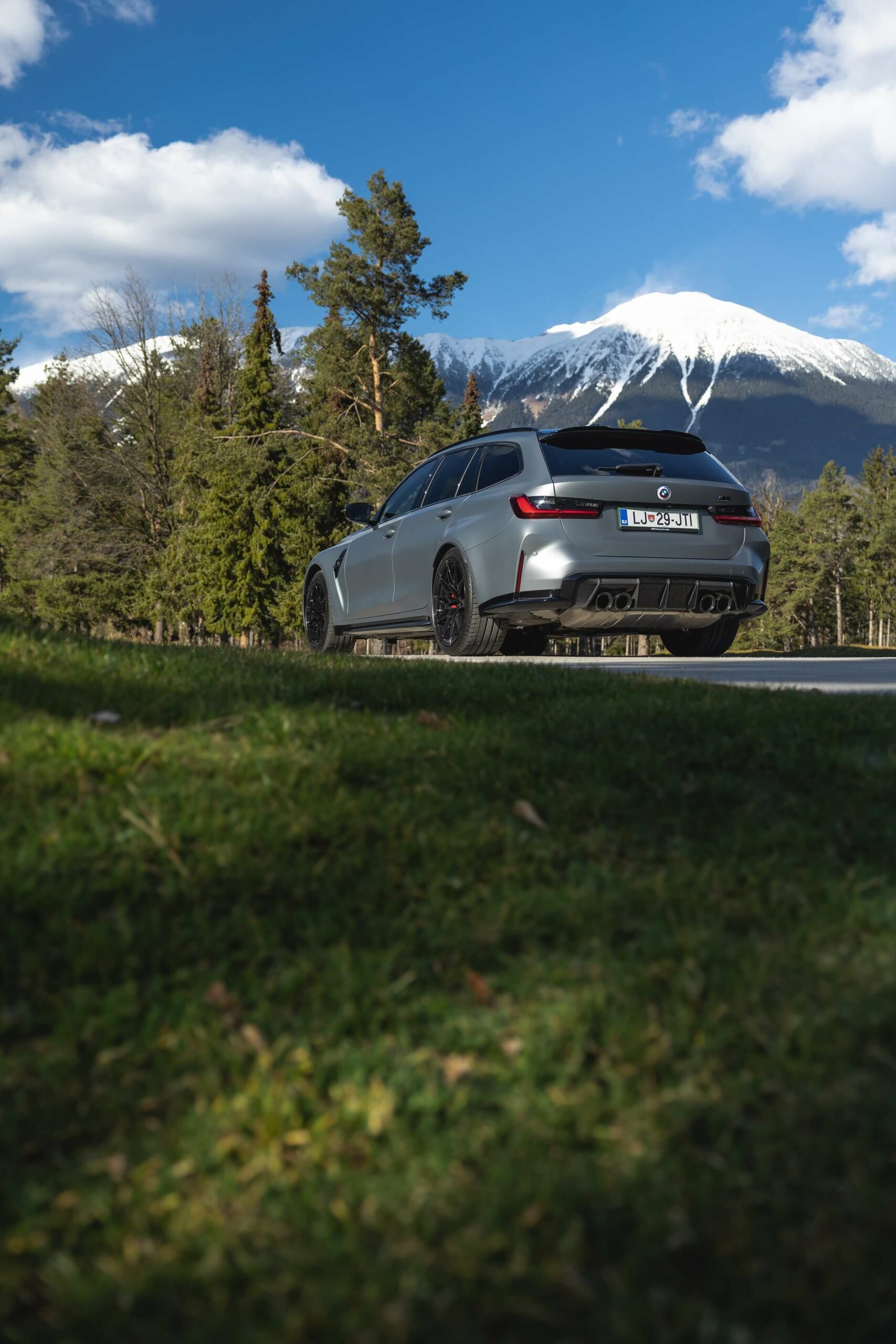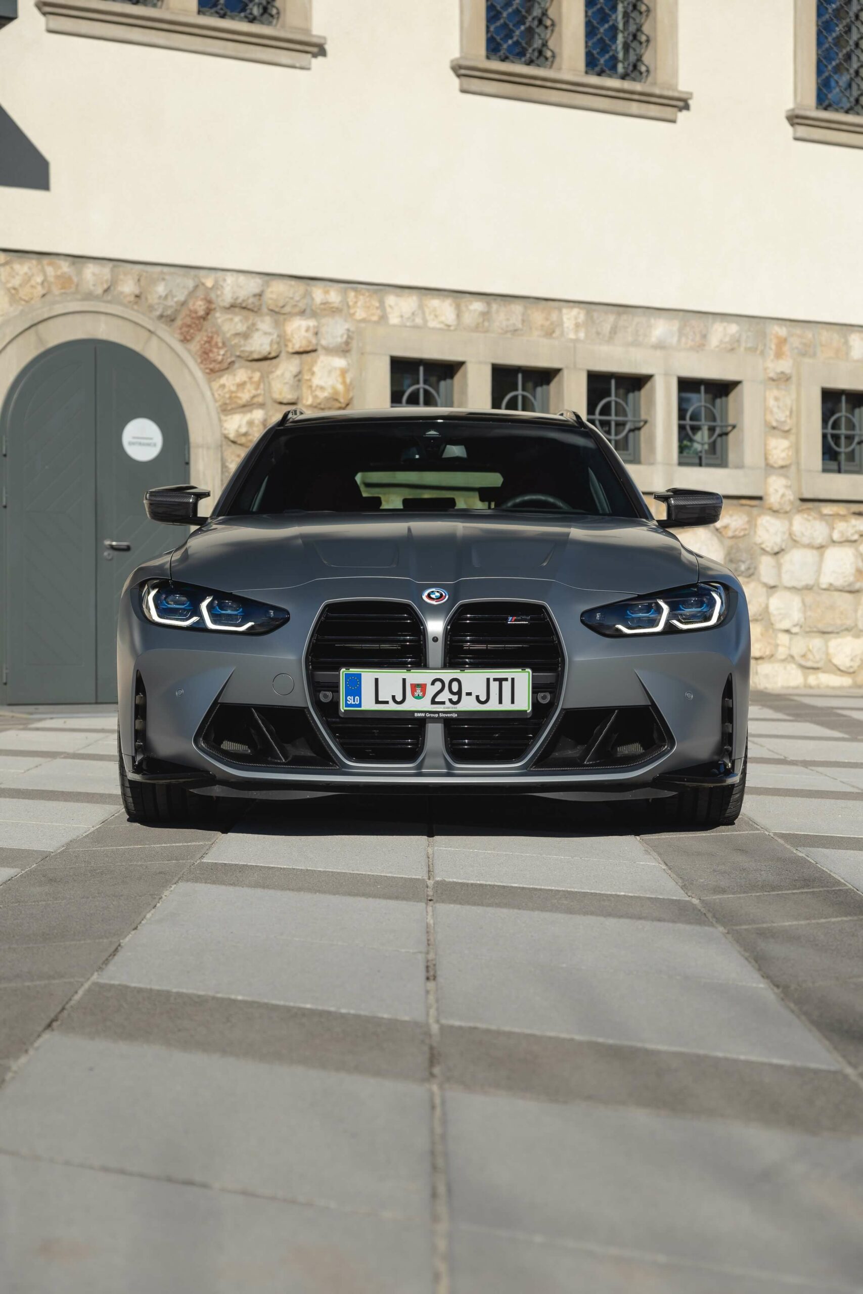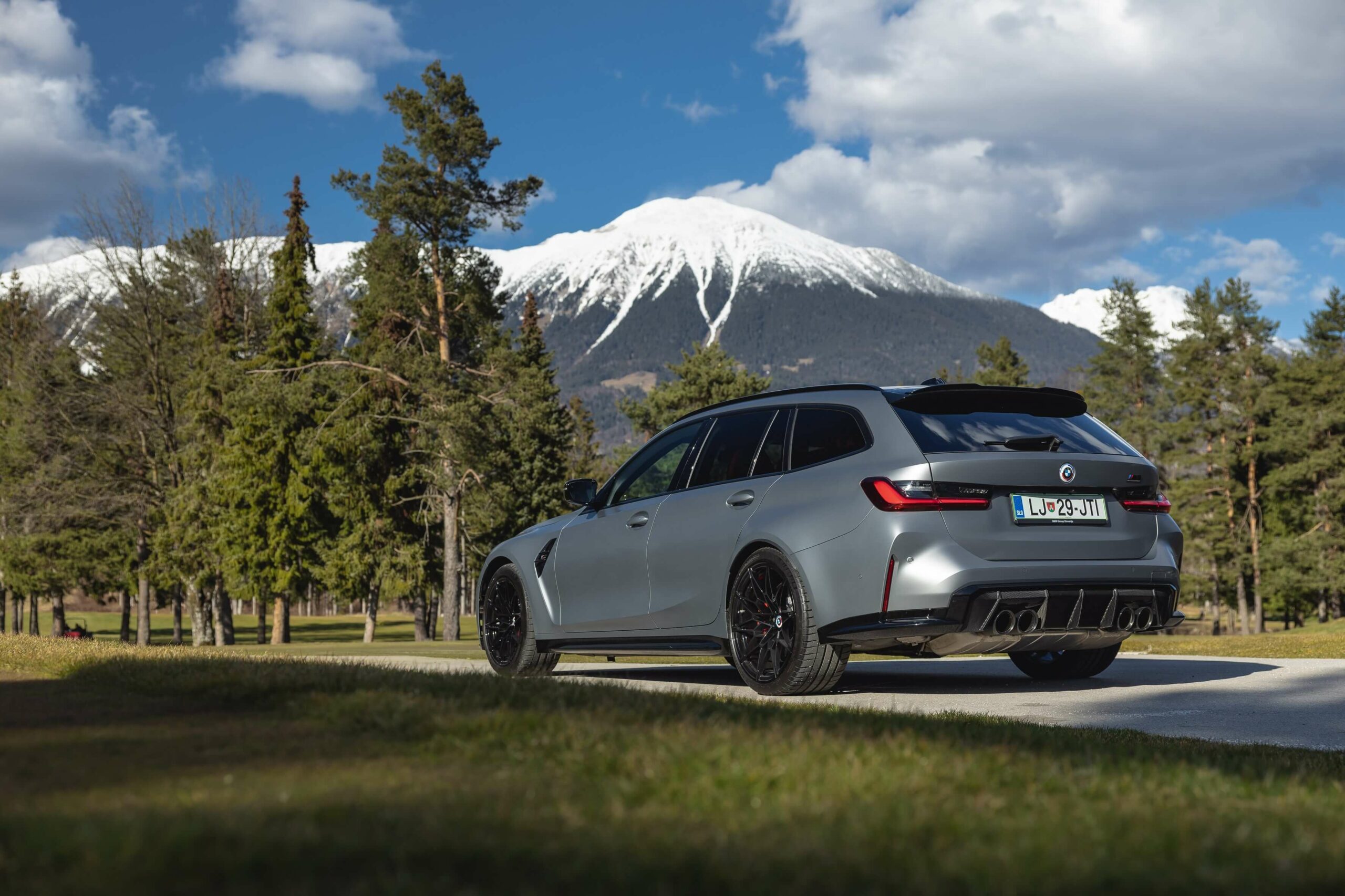 The boldly colored M3 Touring wasn’t the only specimen as BMW Slovenia also had a different version finished in Frozen Pure Grey Metallic – another color from the Individual catalog. The more subdued specification swapped out the two-tone alloy wheels for an all-black set. Both had the anniversary roundel introduced in 2022 to celebrate 50 years of M.