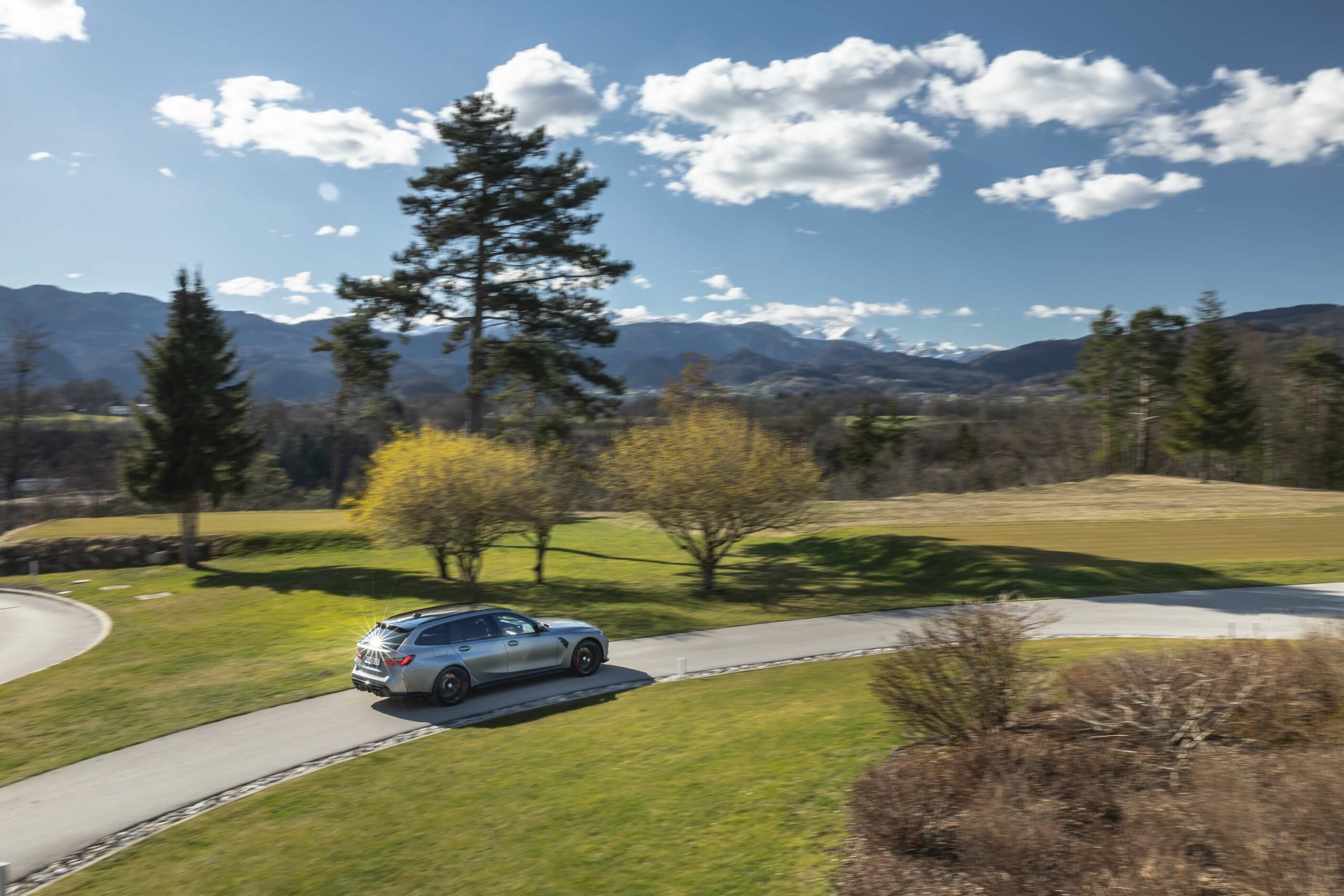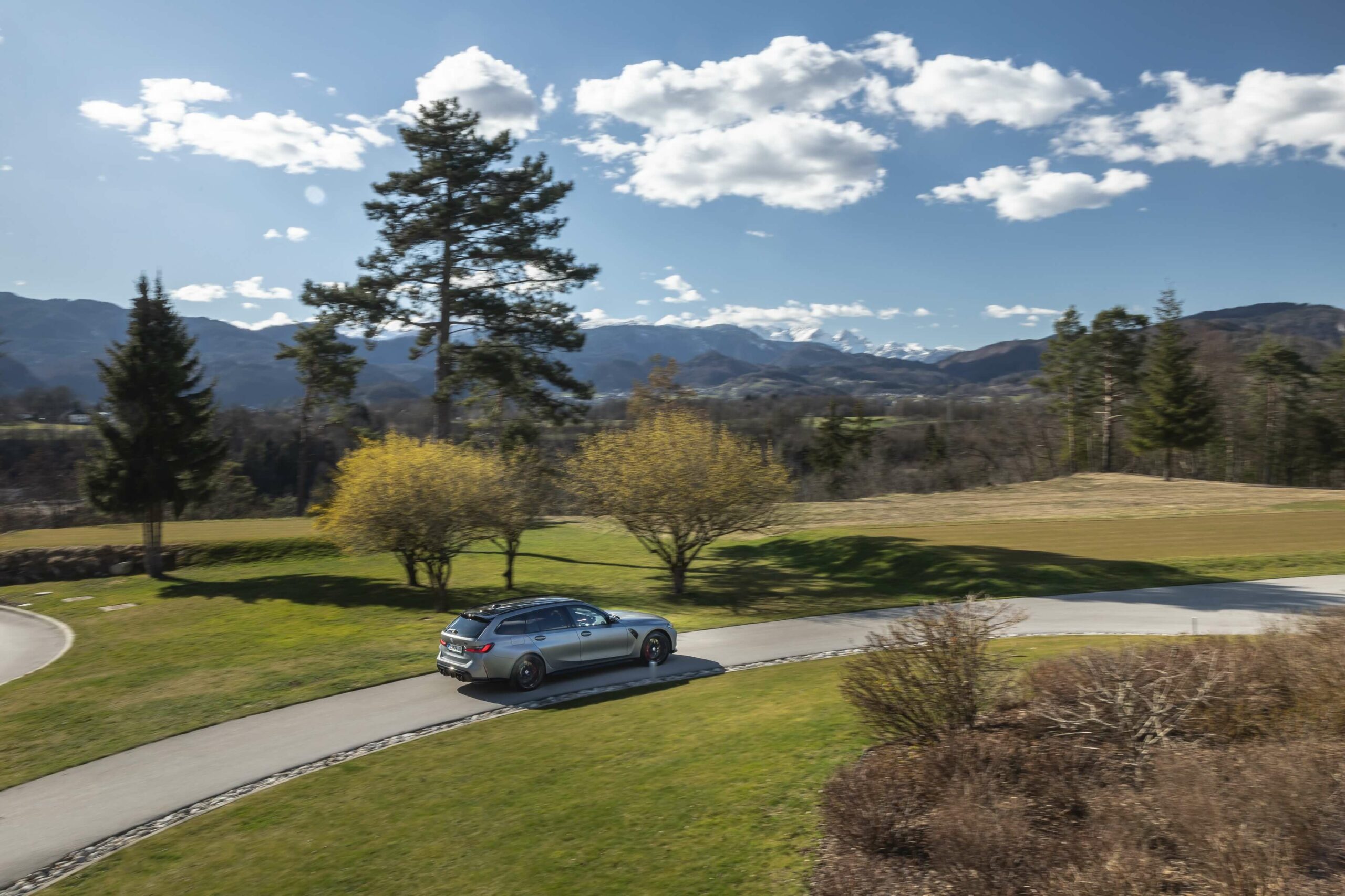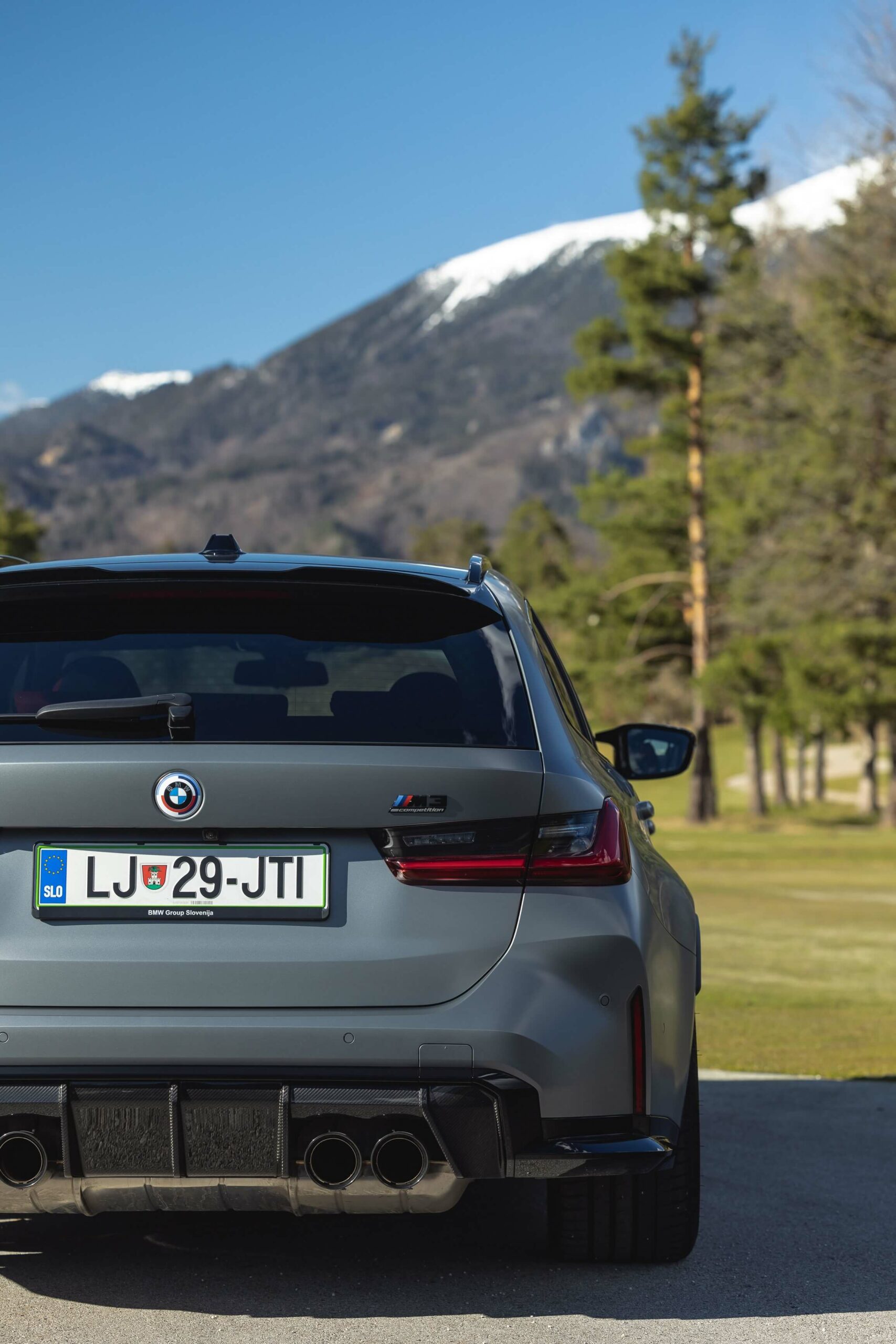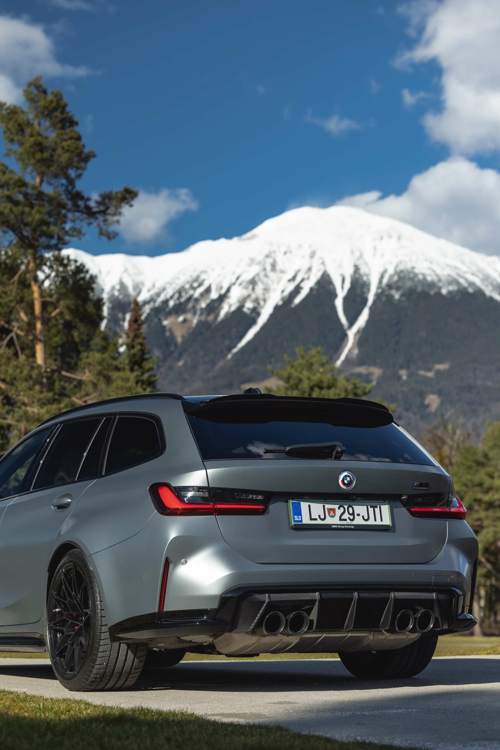 The boldly colored M3 Touring wasn’t the only specimen as BMW Slovenia also had a different version finished in Frozen Pure Grey Metallic – another color from the Individual catalog. The more subdued specification swapped out the two-tone alloy wheels for an all-black set. Both had the anniversary roundel introduced in 2022 to celebrate 50 years of M.