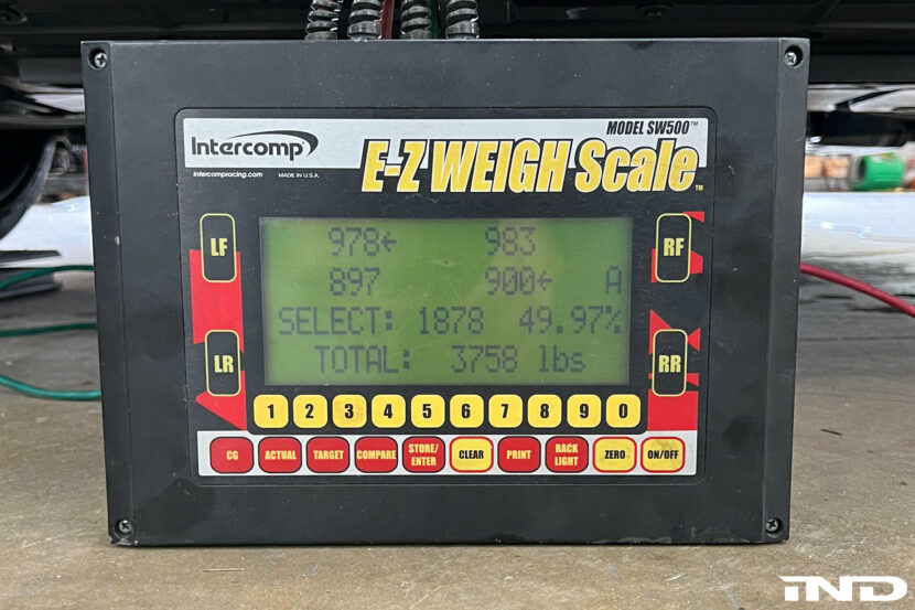 The next task on their agenda was to weigh the new BMW M2. According to IND’s report, our G87 M2 had a carbon roof and standard seats and weighed 3,758lbs with an empty car and a 75% tank of gas. This weight was well-distributed, and it was slightly below BMW’s specified 3,814lb curb weight. This is likely one of the many dyno tests to come so we’re wondering what the numbers will show, especially after the factory break-in period.